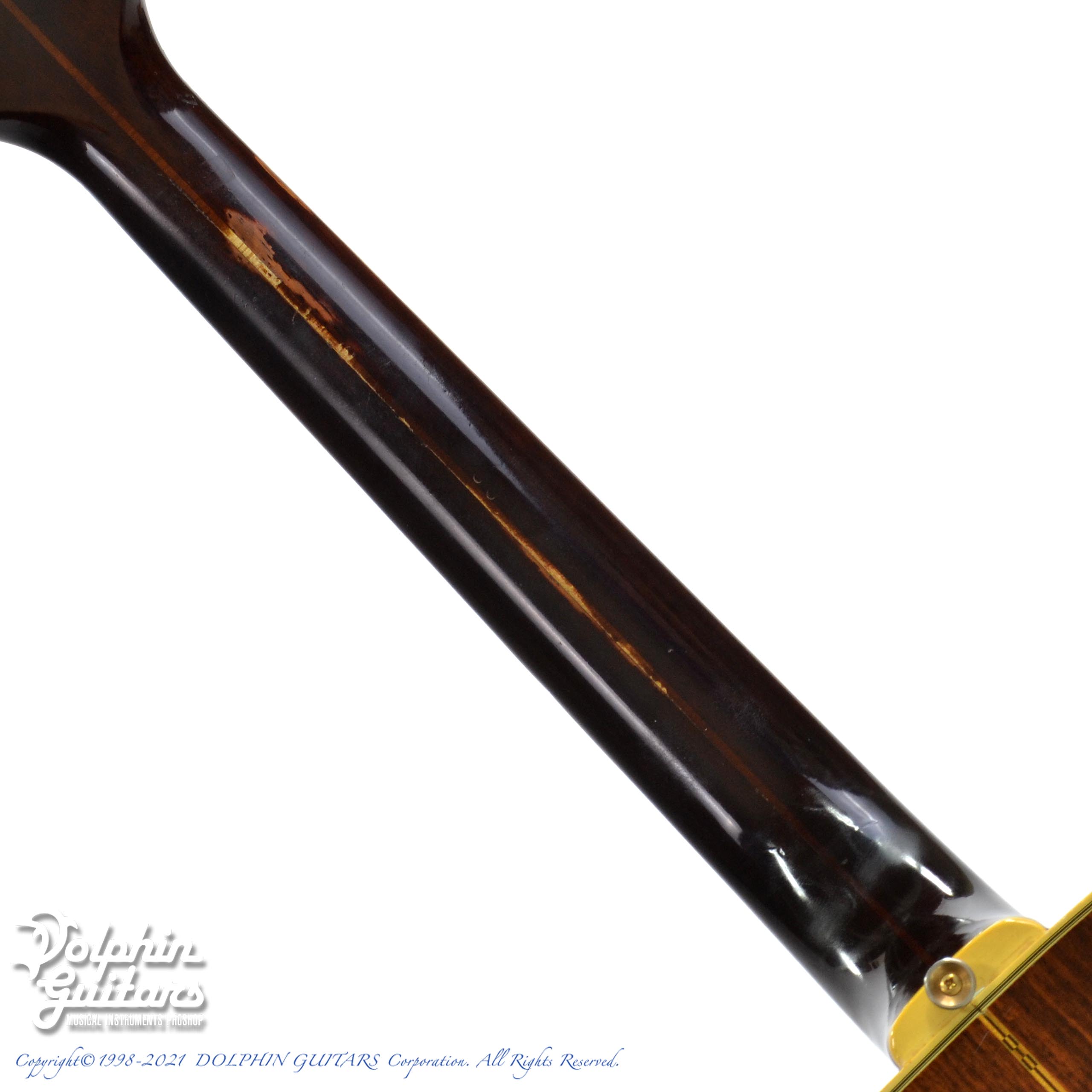 ボディクラック補修跡やブリッジサドル両端のドットの埋め込み、ネック裏の塗装剥がれなど、使い込まれた形跡がありますが、これもこれでヴィンテージの魅力と言えるでしょう。