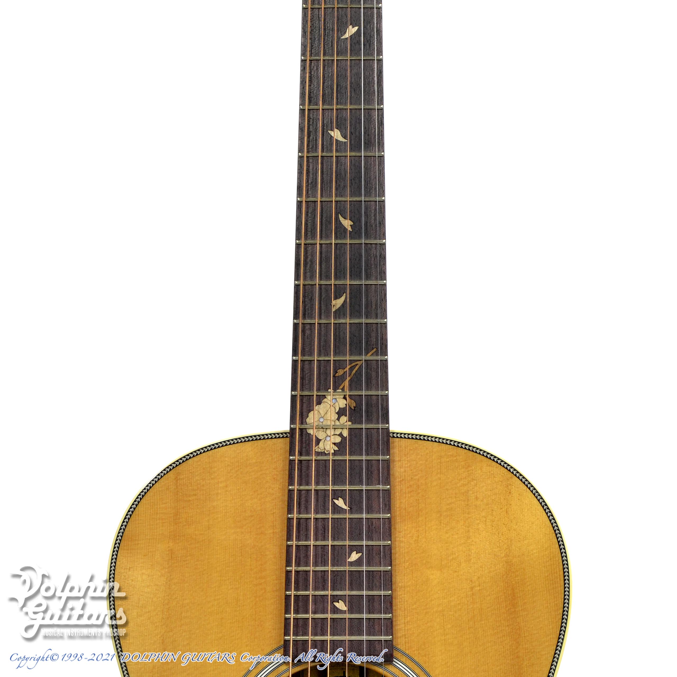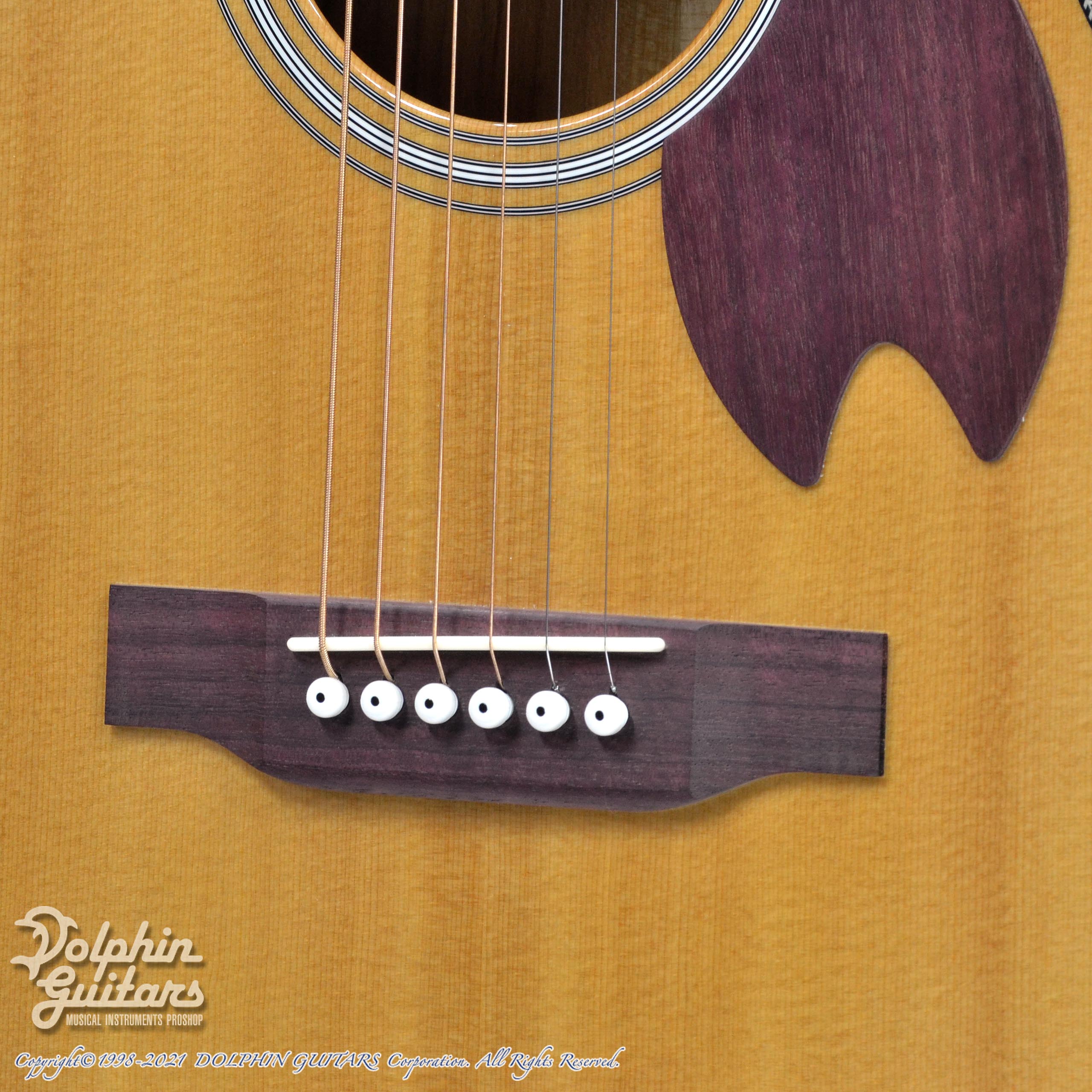 シトカ・スプルース・トップ、サクラ・サイド&バック、アフリカンマホガニー・ネック、パープルハート・フィンガーボード&ブリッジ&ピックガード、オリジナル・ゴールド・ペグ。