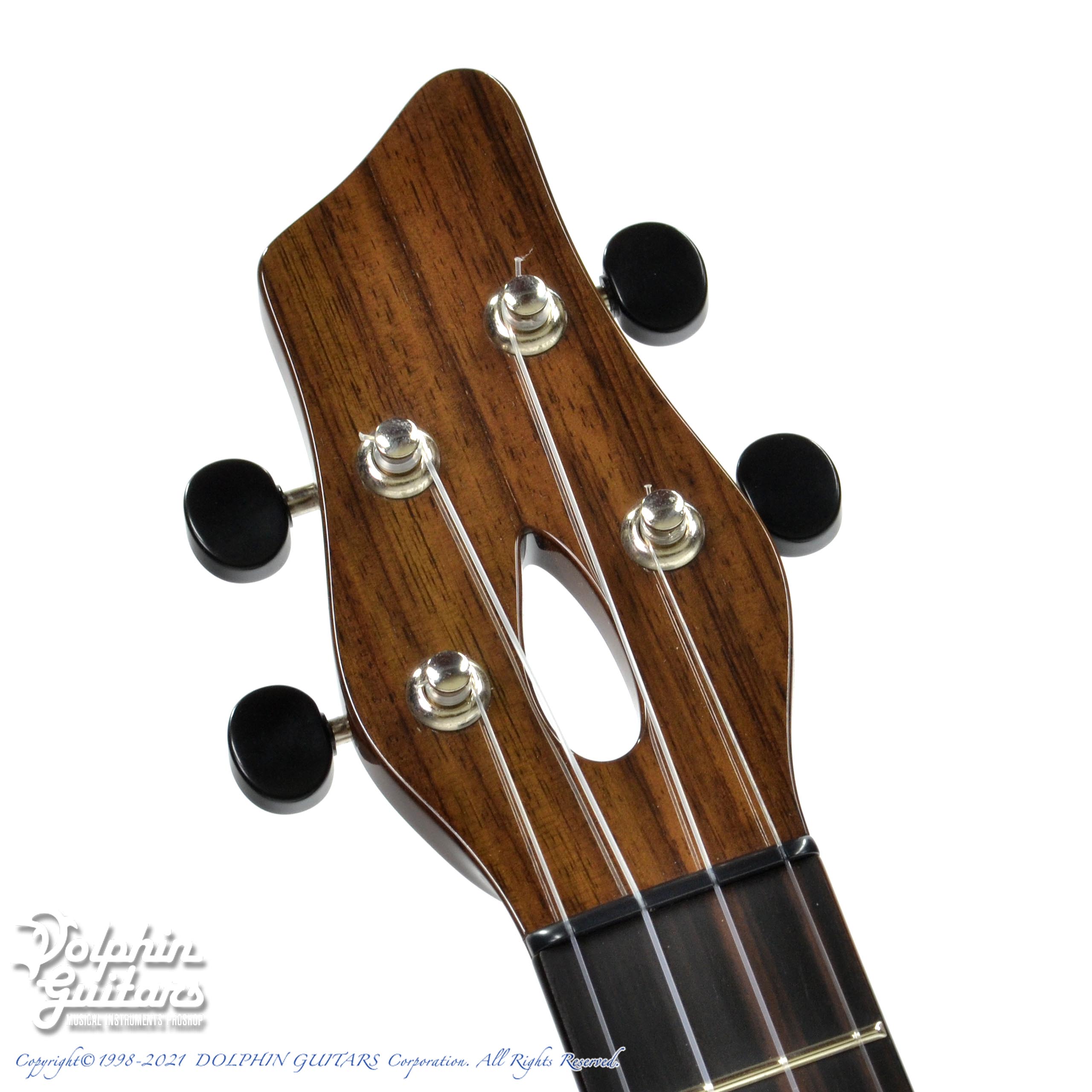 オールウォルナットボディから生み出される、しっとりとしたダークな響き、、、ウクレレらしい軽快さは皆無、ある意味ギター的とも言えます。ジプシースウィングよろしくぶ厚めのピックで弾いても楽しいかも知れません。
