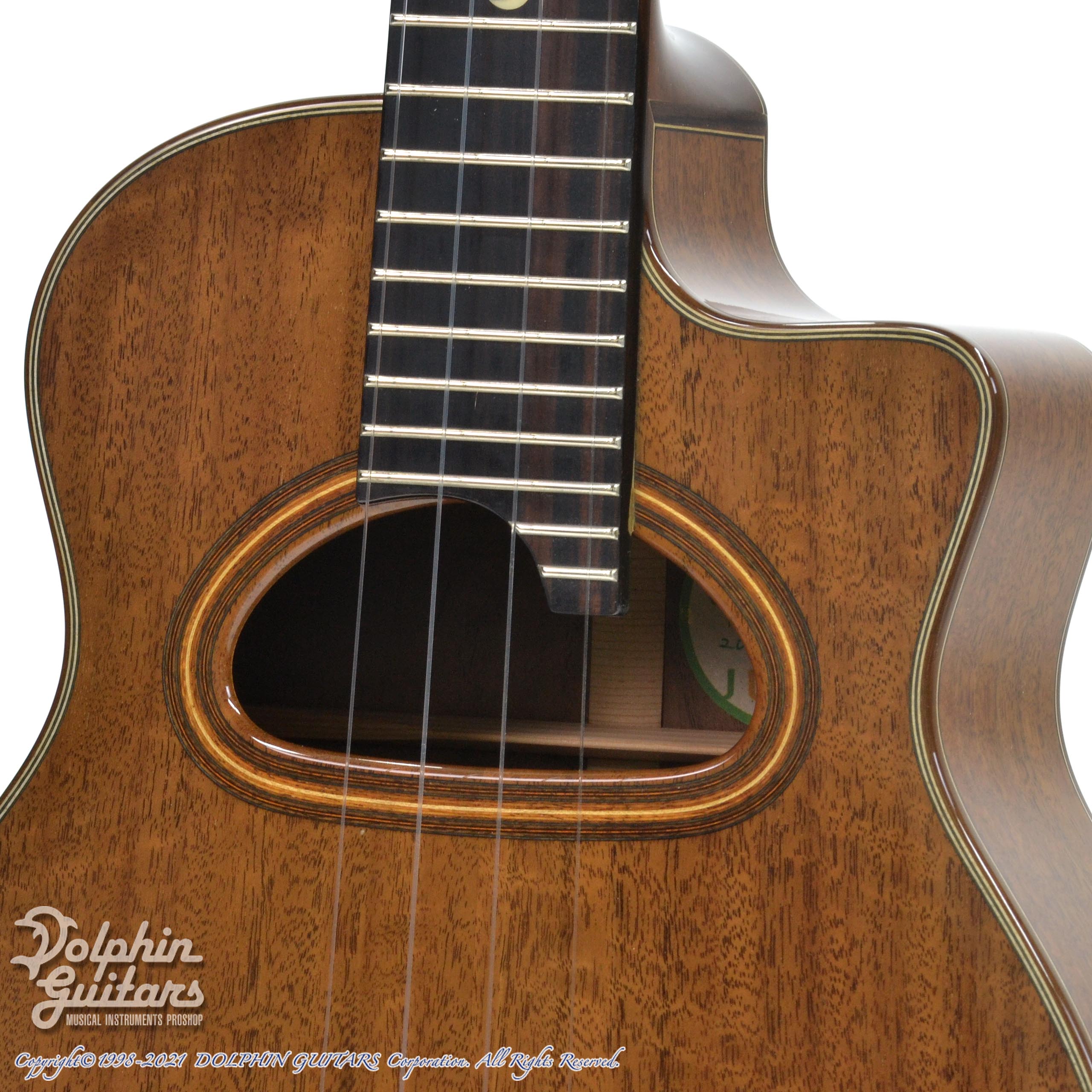 本器は、かなり珍しいウォルナット・ボディを持つマカフェリタイプのテナーウクレレ、MU-WWのUSED品。