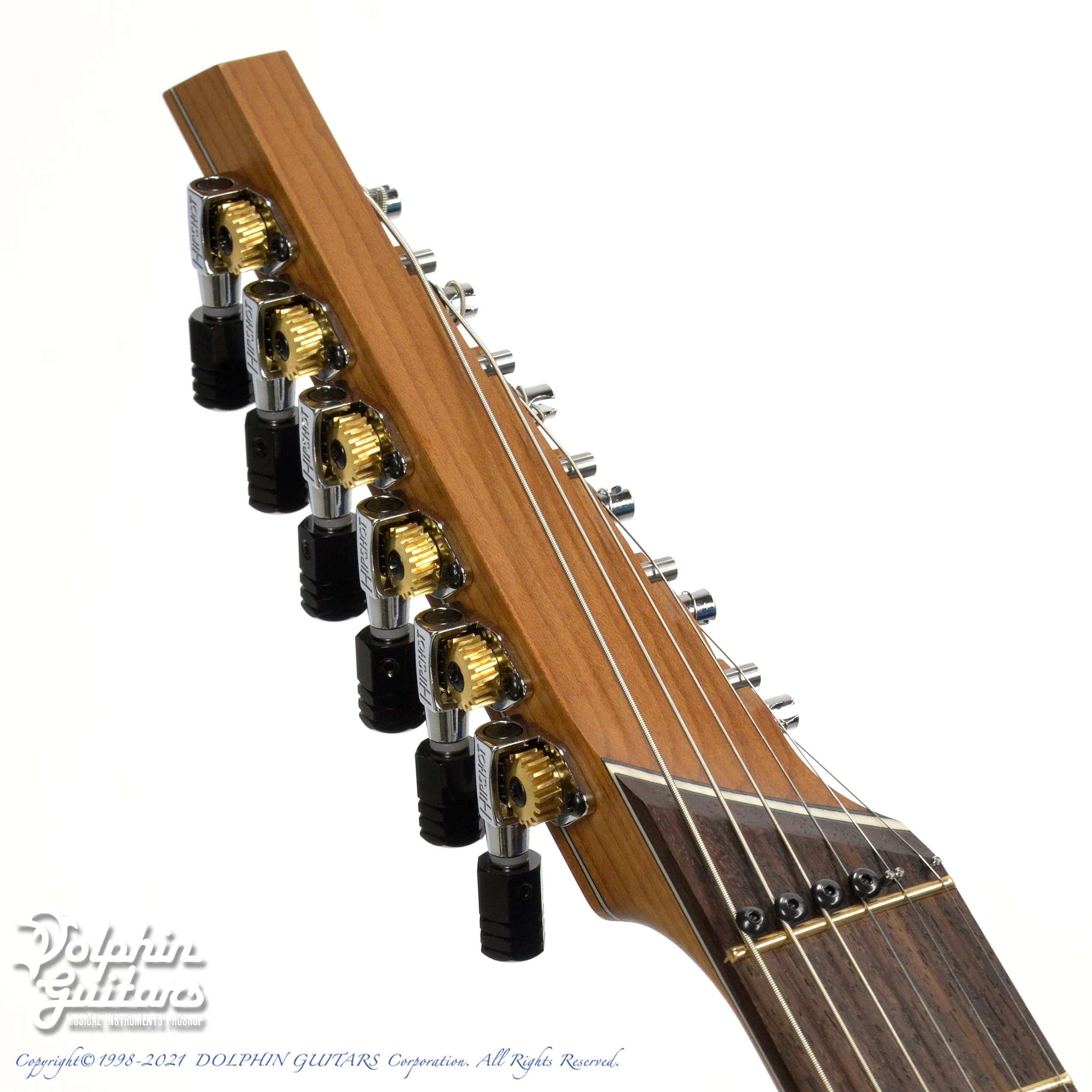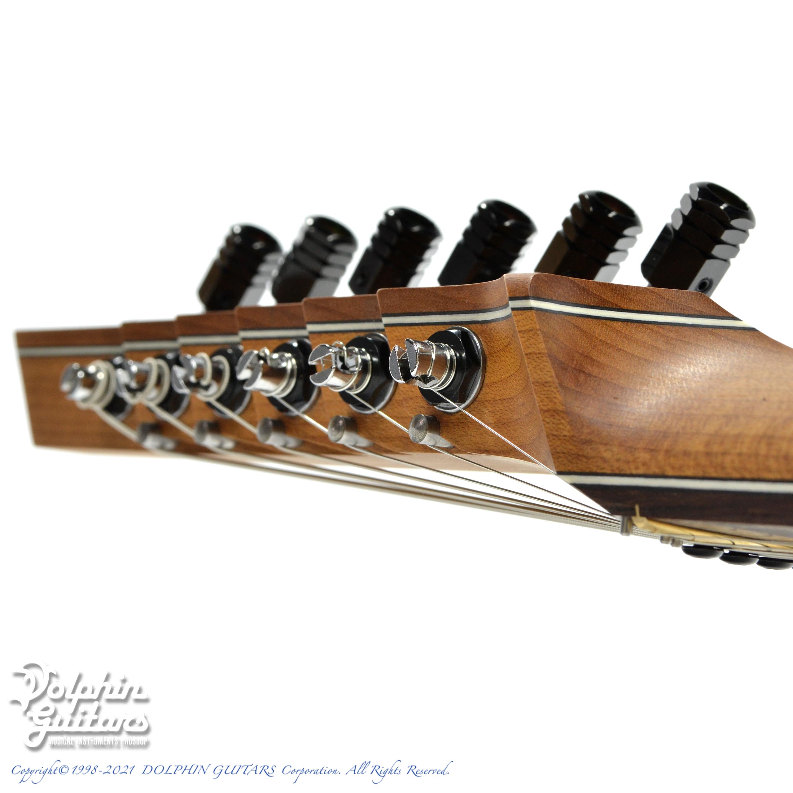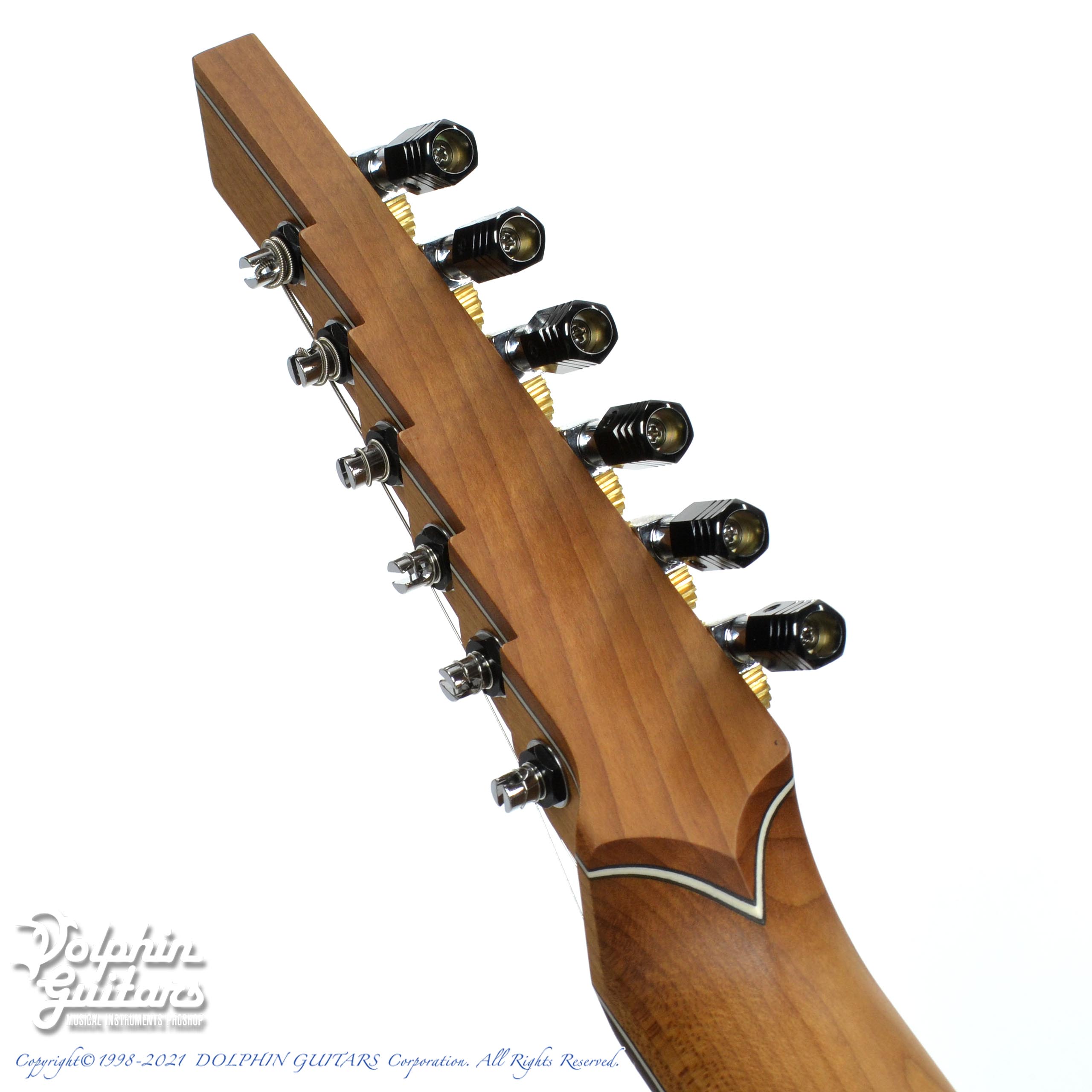 ネックのメイプルは人工的に長時間、高音加熱処理することで、長い年月を経た木材のような乾燥状態を創り出すトリファイド加工を施したマテリアルを使用。大変軽量で秀逸なボディバランスを生みます。デザインと共存する精密な設計による抱えやすさは流石です。