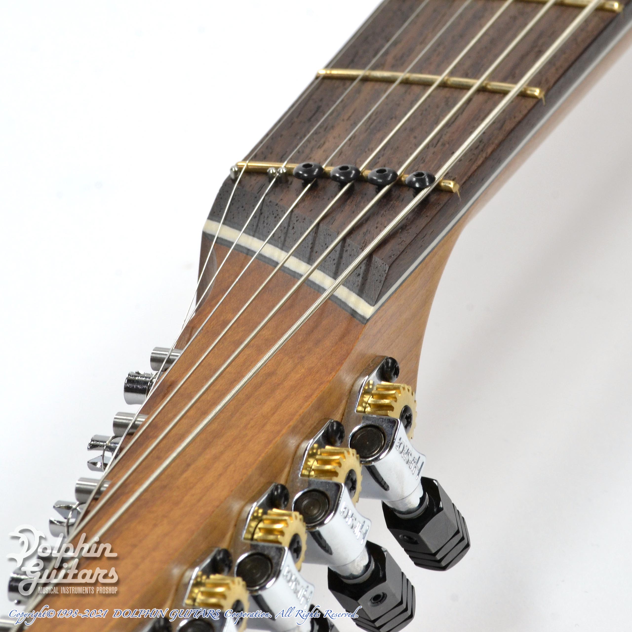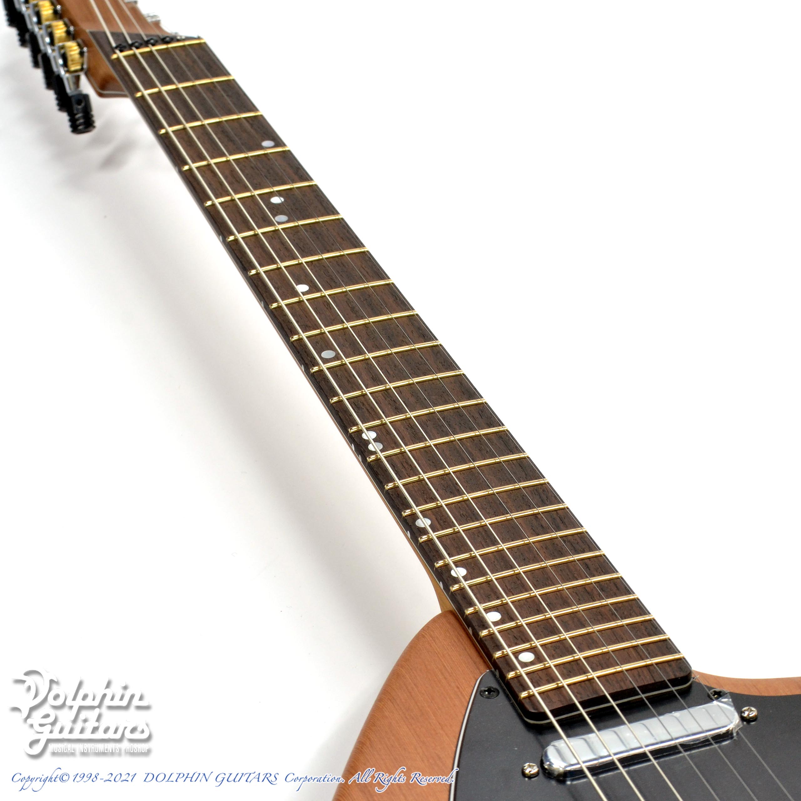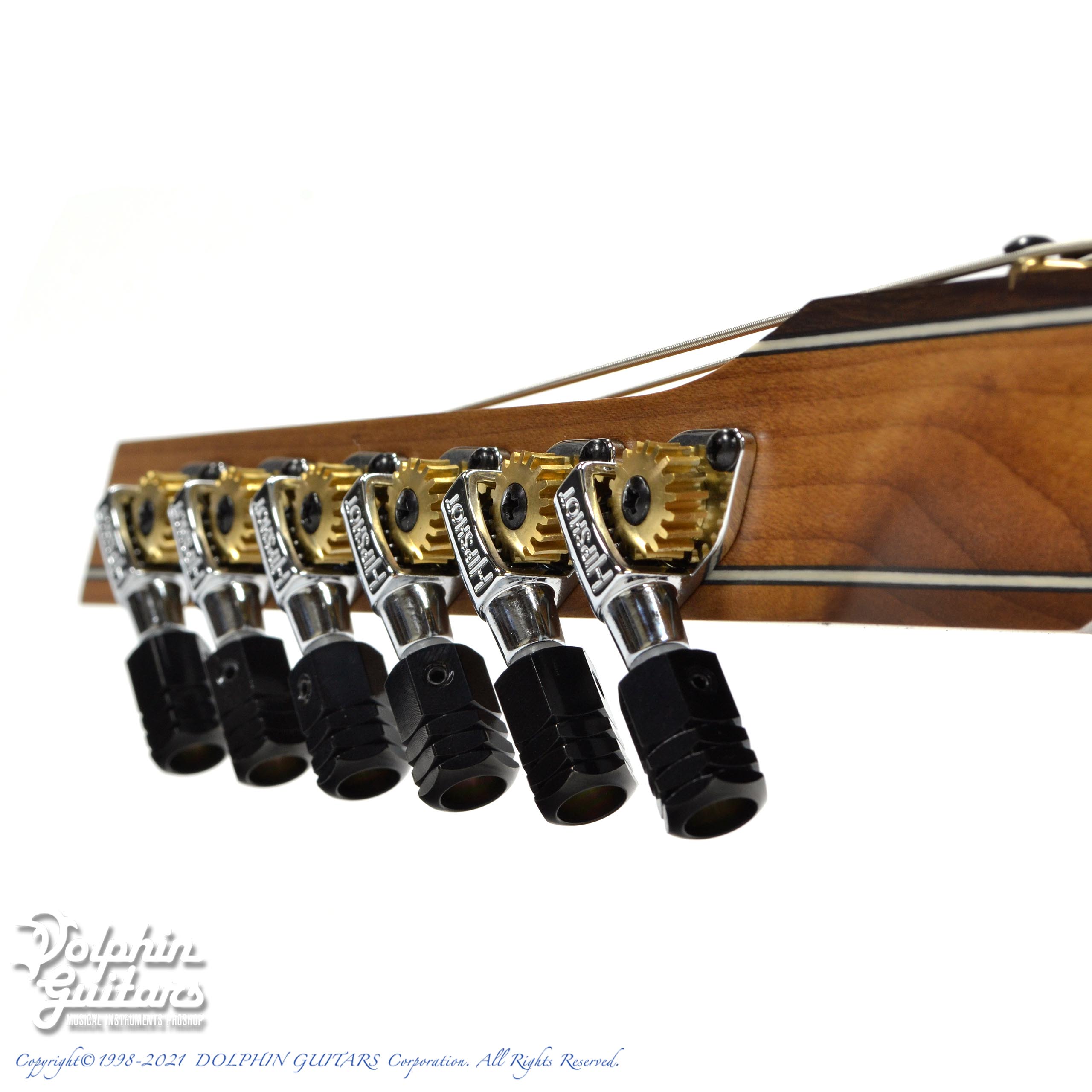 ネックのメイプルは人工的に長時間、高音加熱処理することで、長い年月を経た木材のような乾燥状態を創り出すトリファイド加工を施したマテリアルを使用。大変軽量で秀逸なボディバランスを生みます。デザインと共存する精密な設計による抱えやすさは流石です。