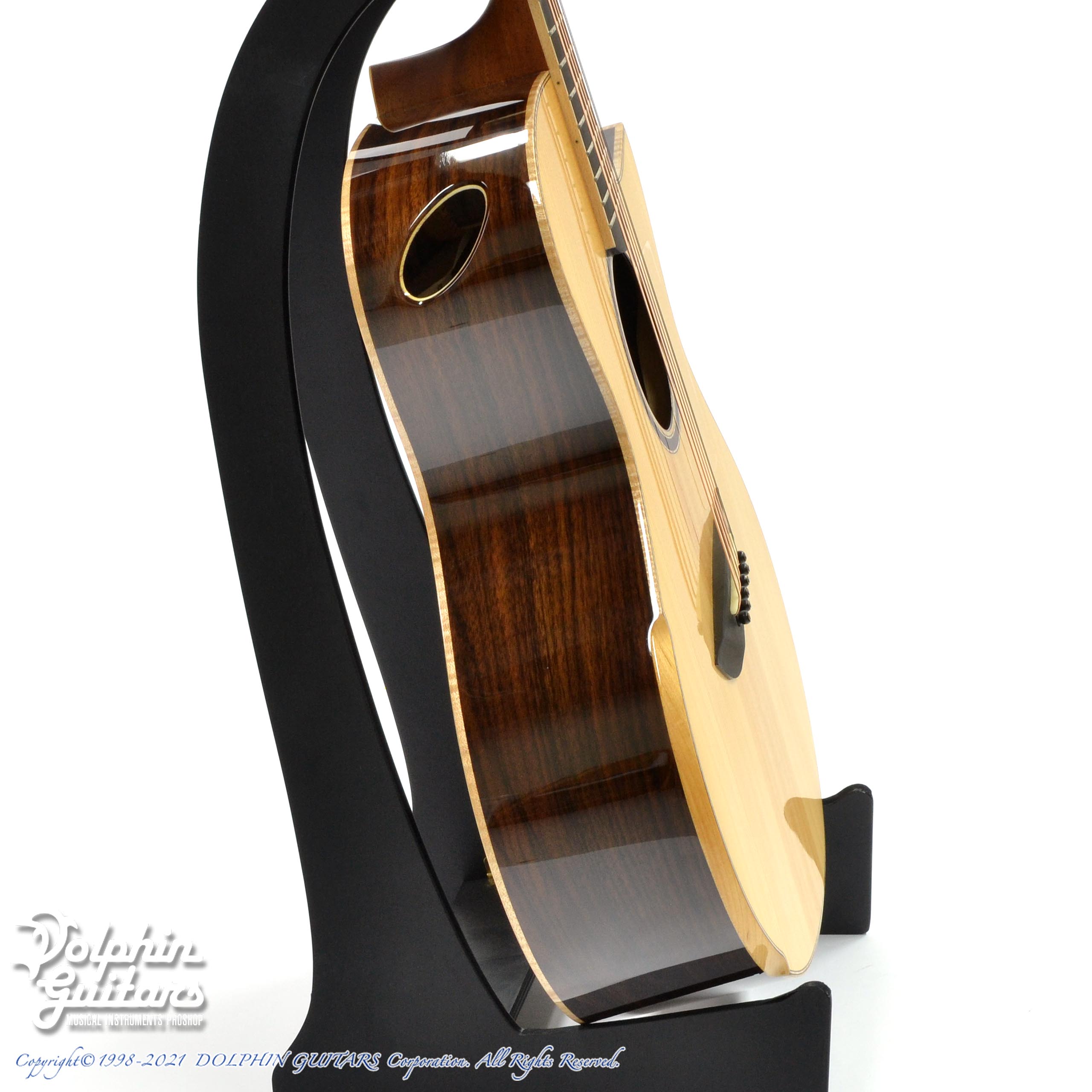 "Singa"はマエストロのラインナップの中で最大サイズを誇るミディアムジャンボボディ。とは言え16インチ強のボディはウェストがタイトに絞られ、抱えたときのボディバランスは秀逸です。ピアノのような深い低音とクリスタルのようにクリアな高音域が特徴です。