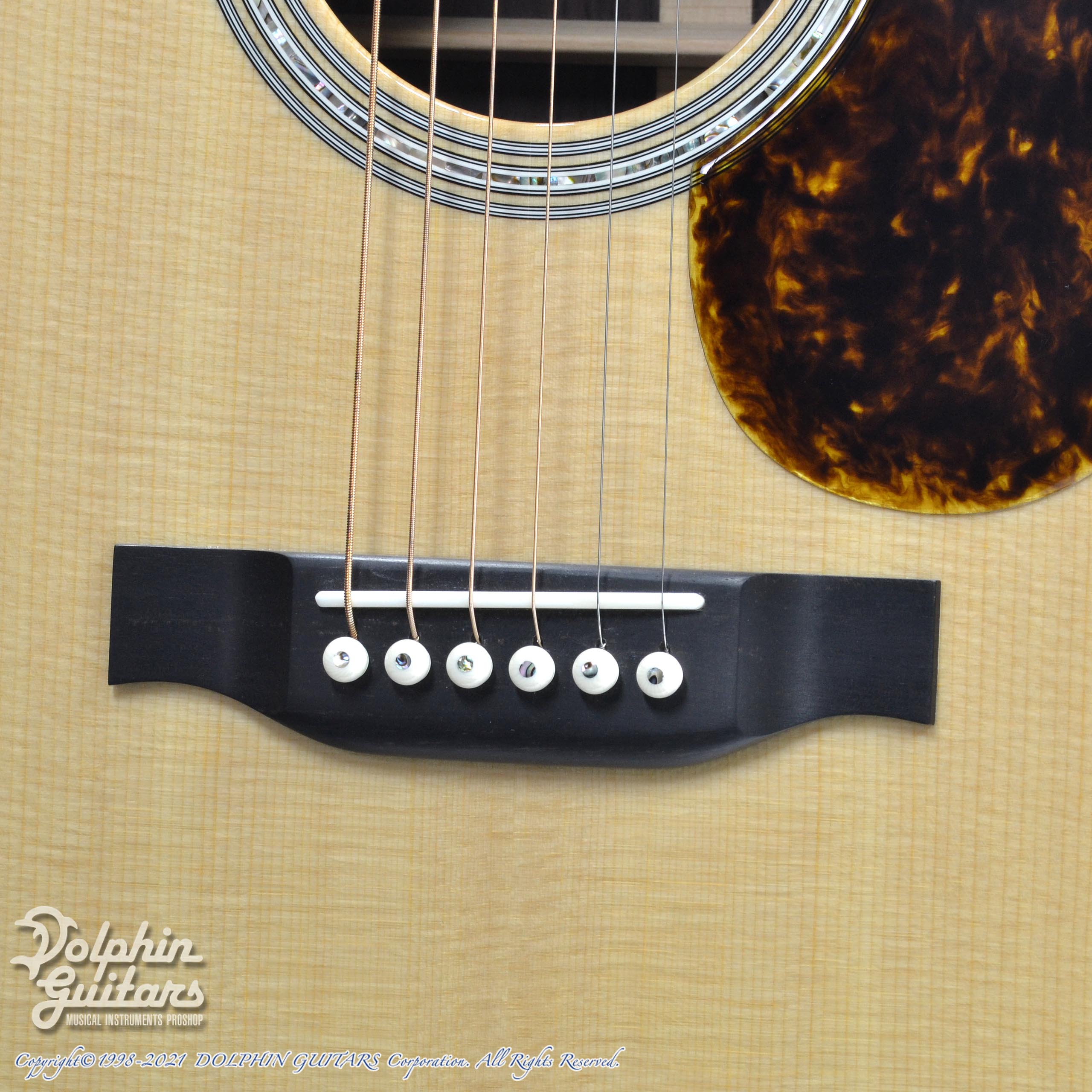 ルッツスプルースとは、イングルマンスプルースとシトカスプルースの混合種であり、木目や色合いも美しく、上質なサウンドを持つトーンウッドです。サイド&バックのインディアンローズウッドは深くどっしりとした弾力と煌びやかな高音を併せ持つ良質材で、ソロギターに於いて重要視される低音の迫力や明瞭なメロディを演出します。