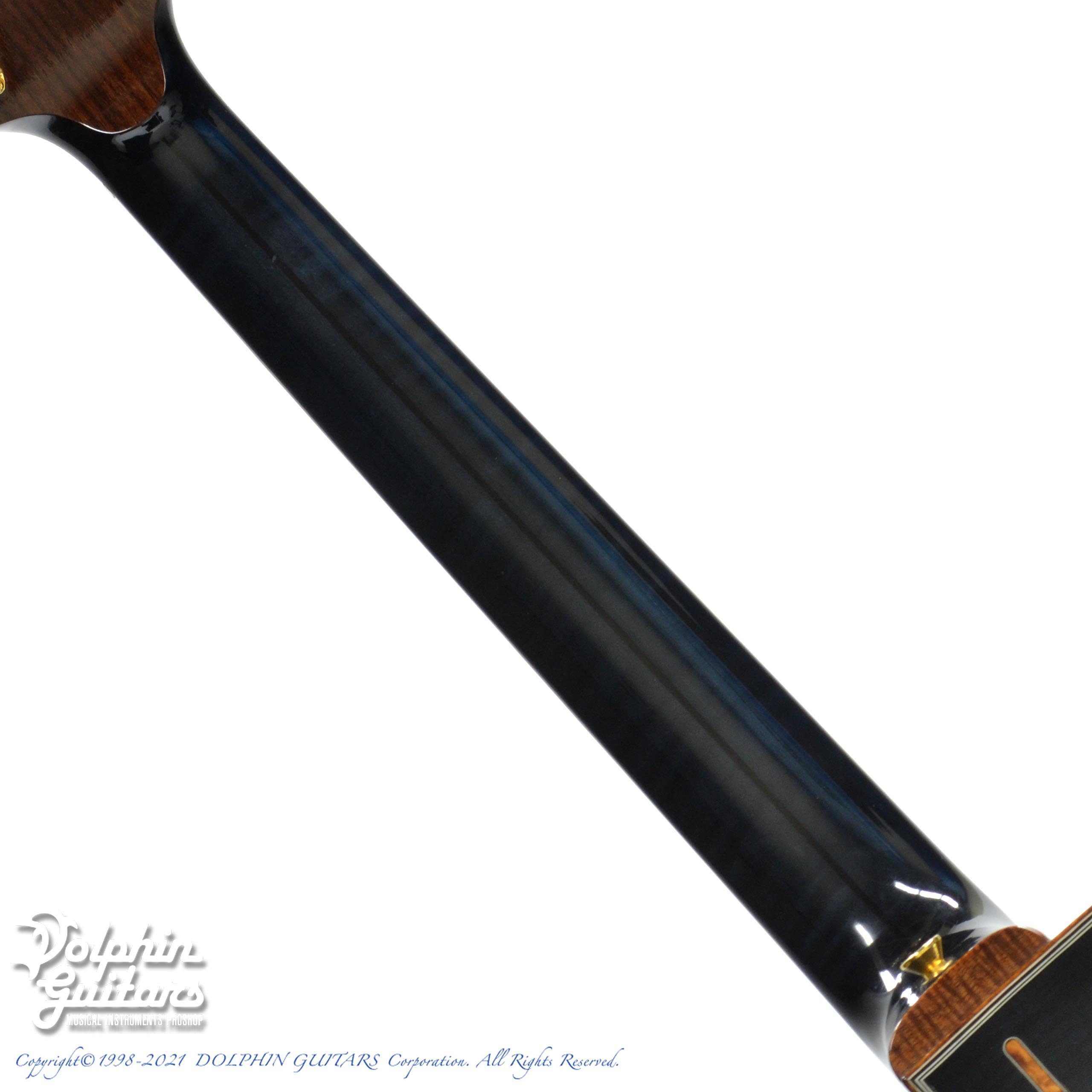 カスタムカラーのシースルーブラックはなんとも深みがあり、不意に濃紺にも見えます。コアバインディングとのコンビネーションもとても美しく、巻かれたアバロンとのコントラストも華麗です。