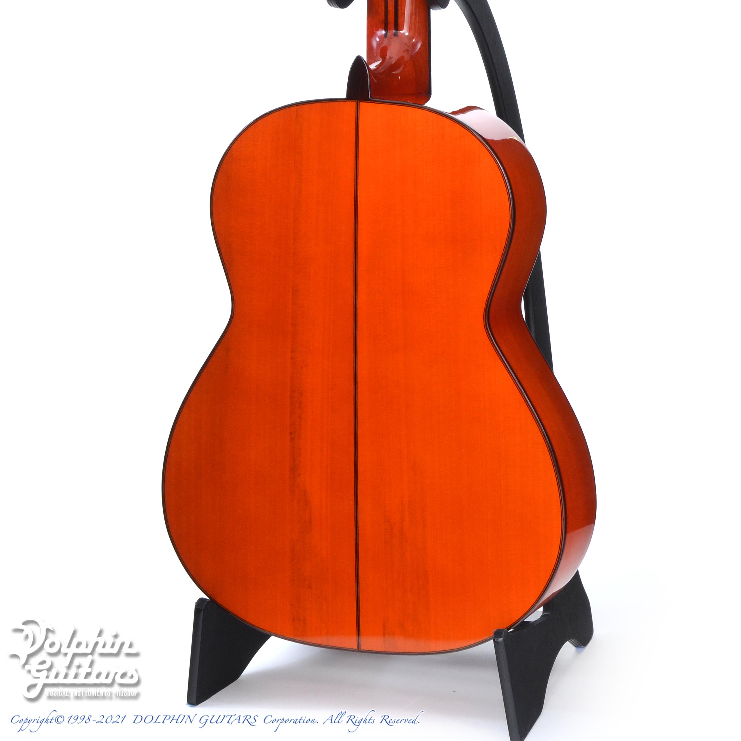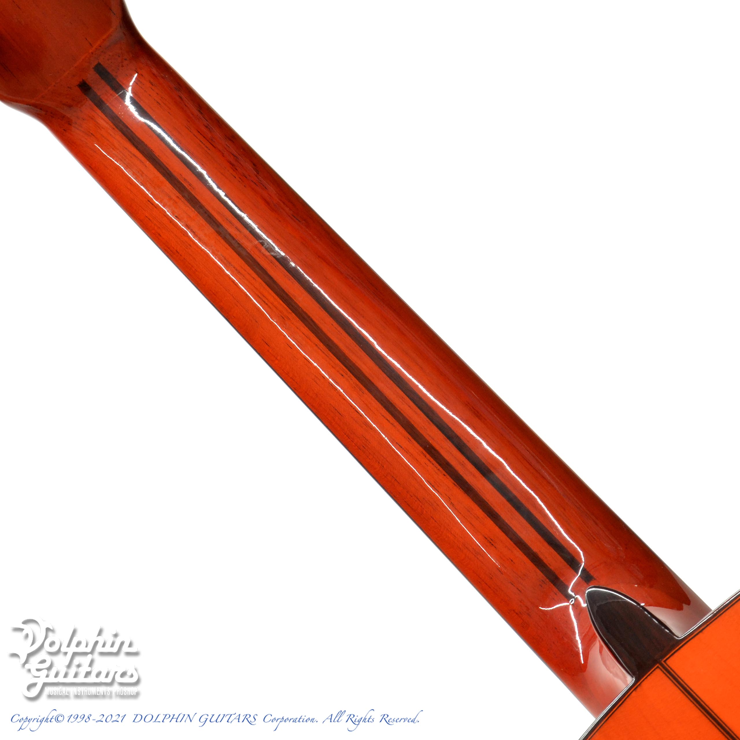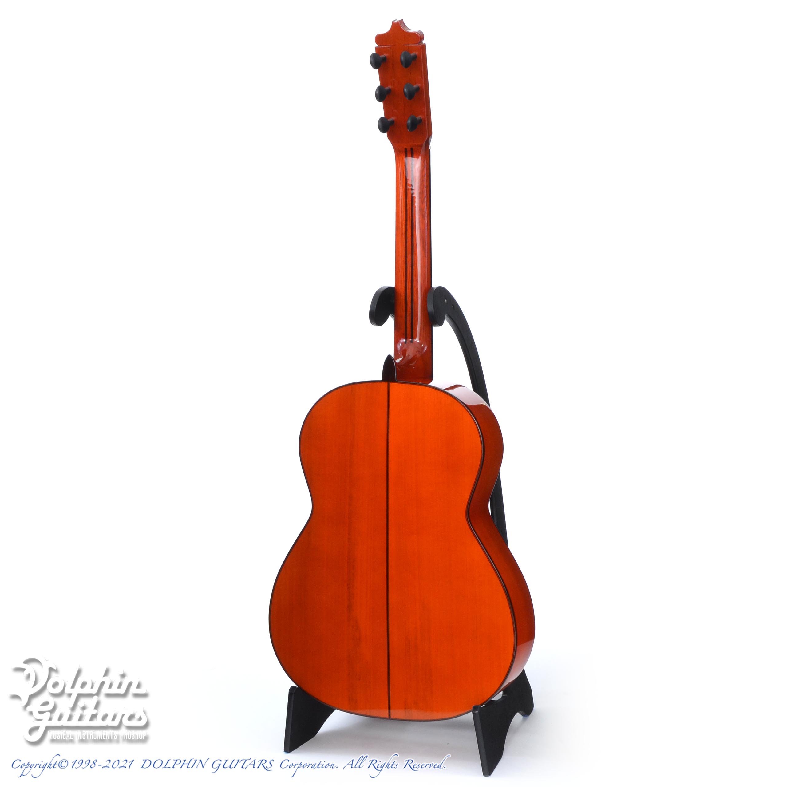 バラのサウンドホールロゼッタと情熱的なボディのカラーリングは、伝統的なフラメンコデザインを感じる一方で、木ペグの外観を持つギア式ペグや華やかな形状を持つブリッジ下弦飛び保護用クリアガードなど、随所に現代的なデティールが盛り込まれております。