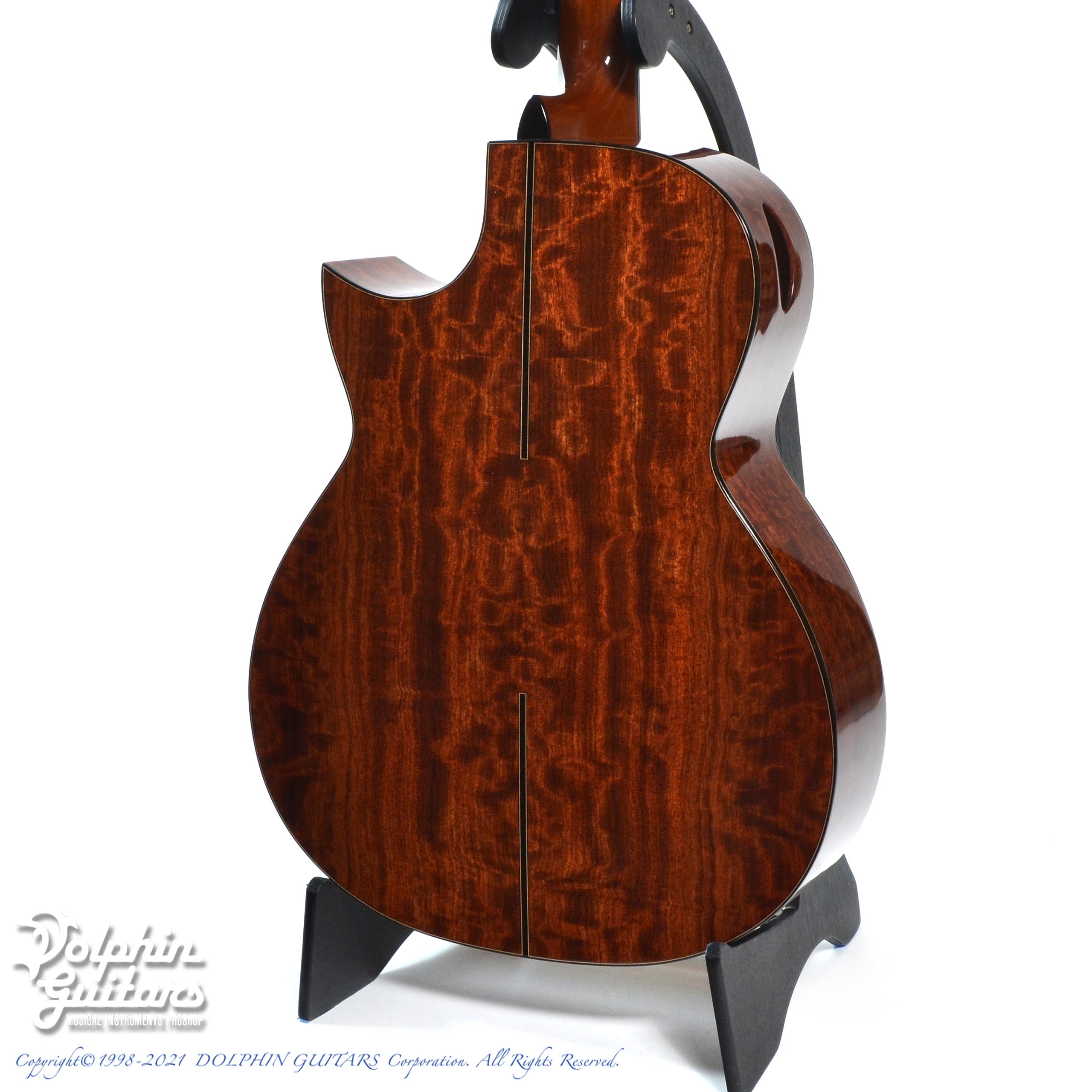 本器はニューヨークはウッドストックにて開催される、ルシアーの祭典"Woodstock Invitational Luthiers Showcase 2018"に出展された作品。珍しいブビンガ仕様のSJ Cutaway Woodstock SP (Bubinga)の極上USED品。