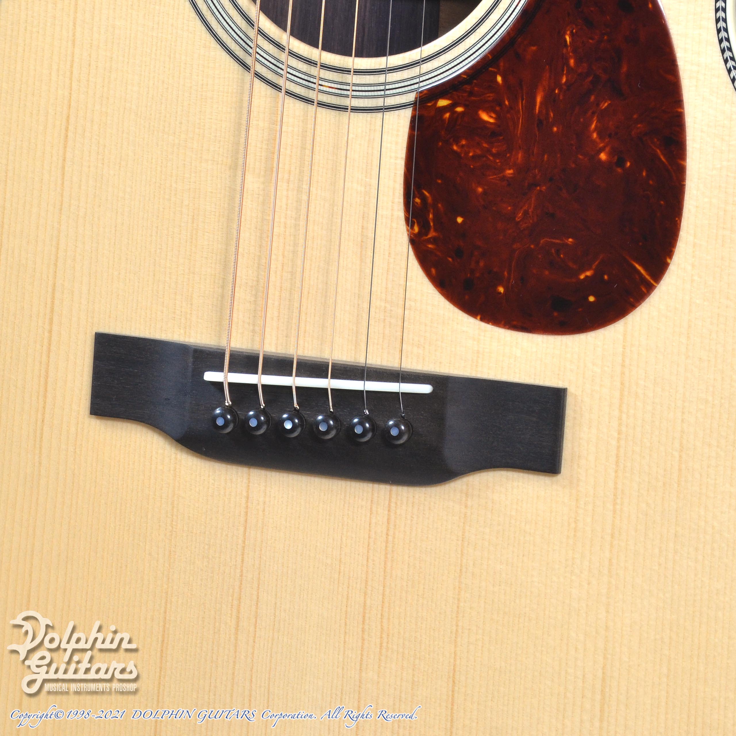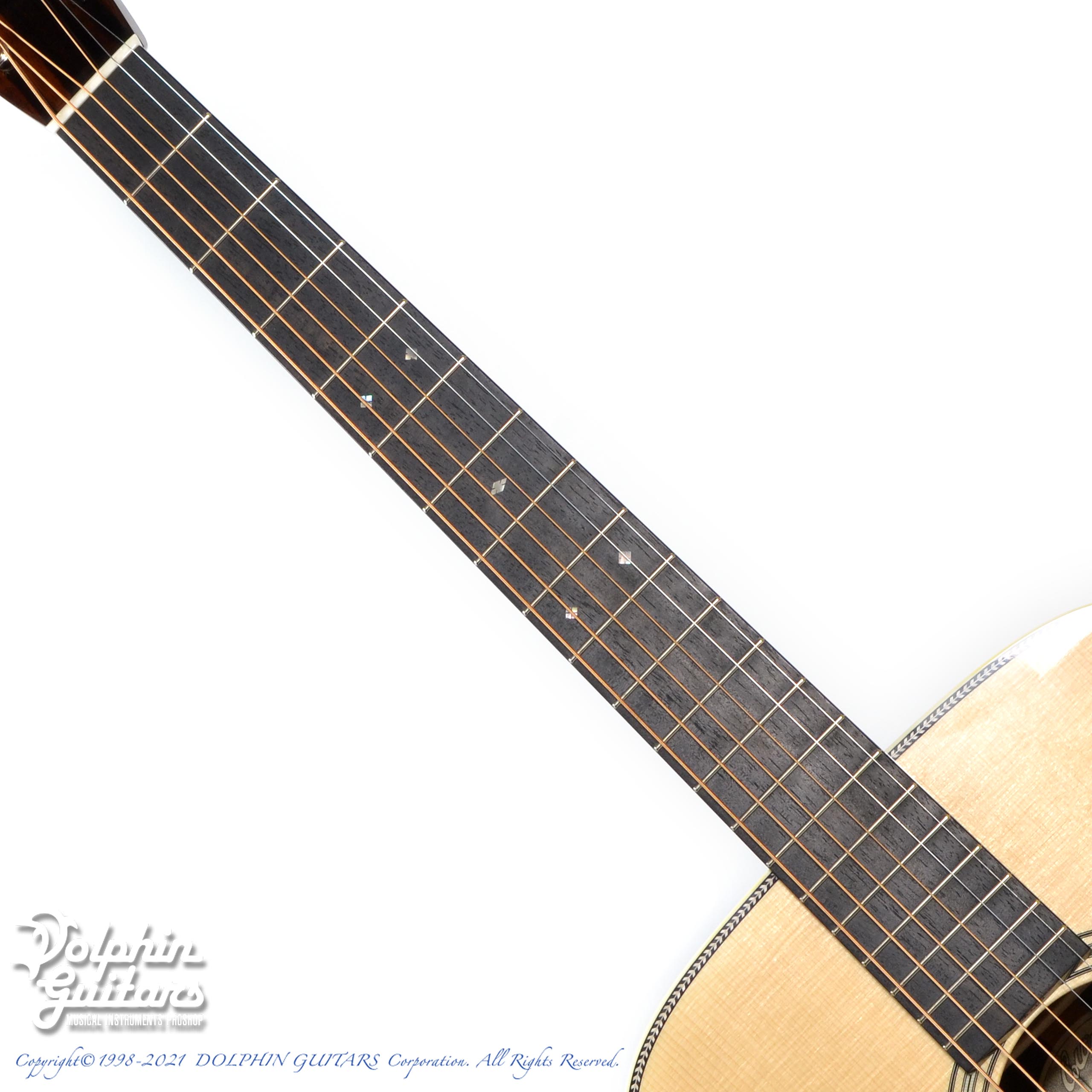 全ポジションにおいてスムーズなフィンガリング、そしてストレスを感じさせない鳴りと抜群なレスポンスは最高の弾き心地を味わえ、OMボディサイズですが規格外のボリュームとローミッドの出音は圧巻。
