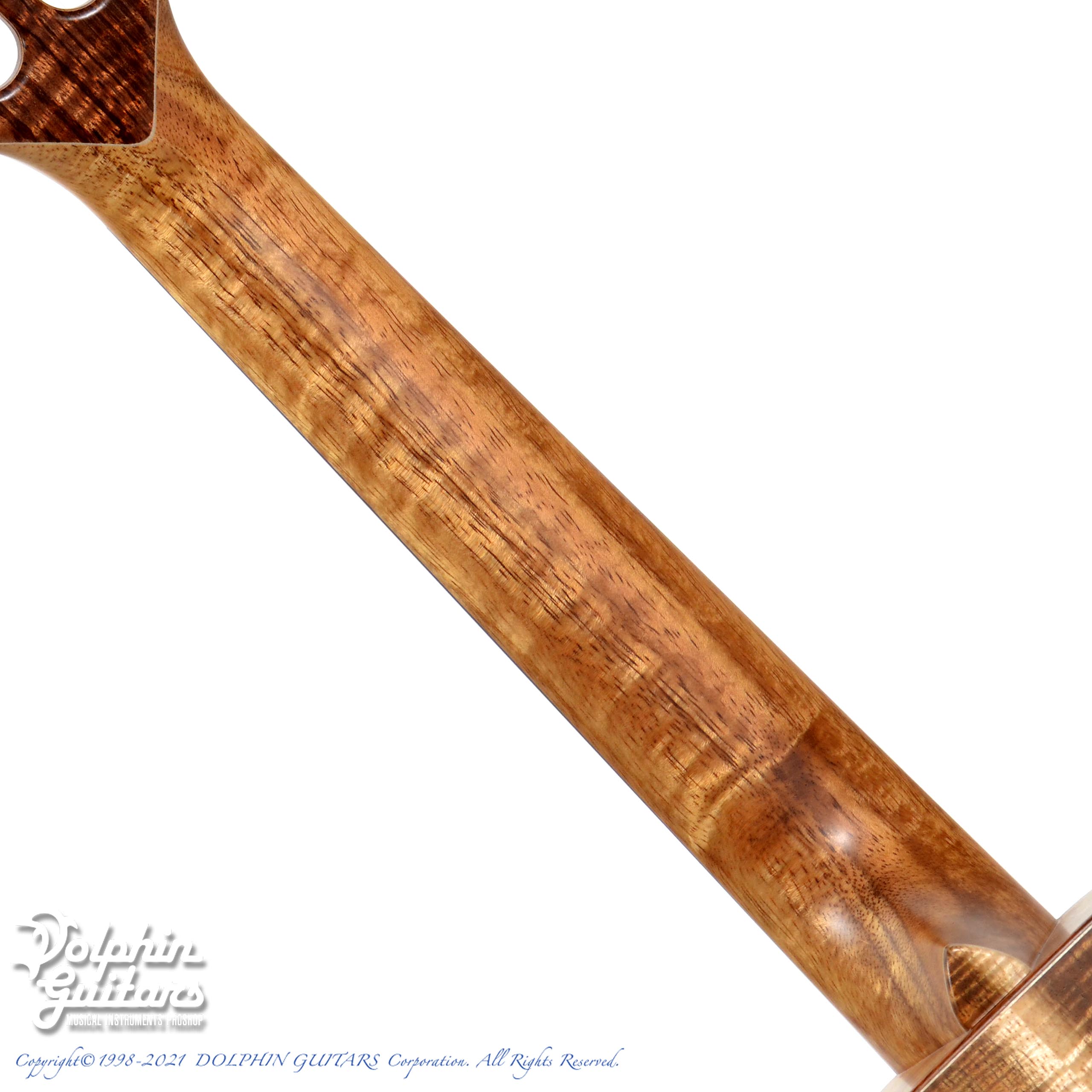 指板、ブリッジのエボニー以外を構成する材は全てハワイアンコアというスペシャルモデルです。ボディは今や大変貴重な5Aグレードをサップ入りで贅沢に使用しており、戸田氏のオールコアモデルの中でもネックまでコアのモデルはさらに希少です。