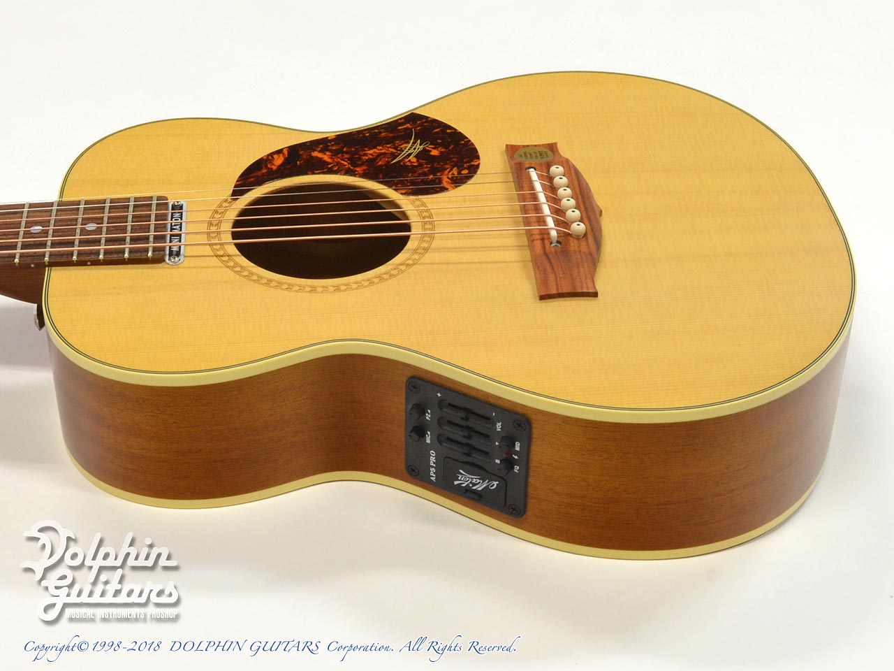 "AA"シトカ・スプルーストップ、クィーンズランド・メイプルS&B、クィーンズランド・メイプルネック(アジャスタブルロッド)、パーフェロー指板&ブリッジ、44mmナット、580mmスケール、グローヴァー糸巻き、AP5Proピックアップ・システム。