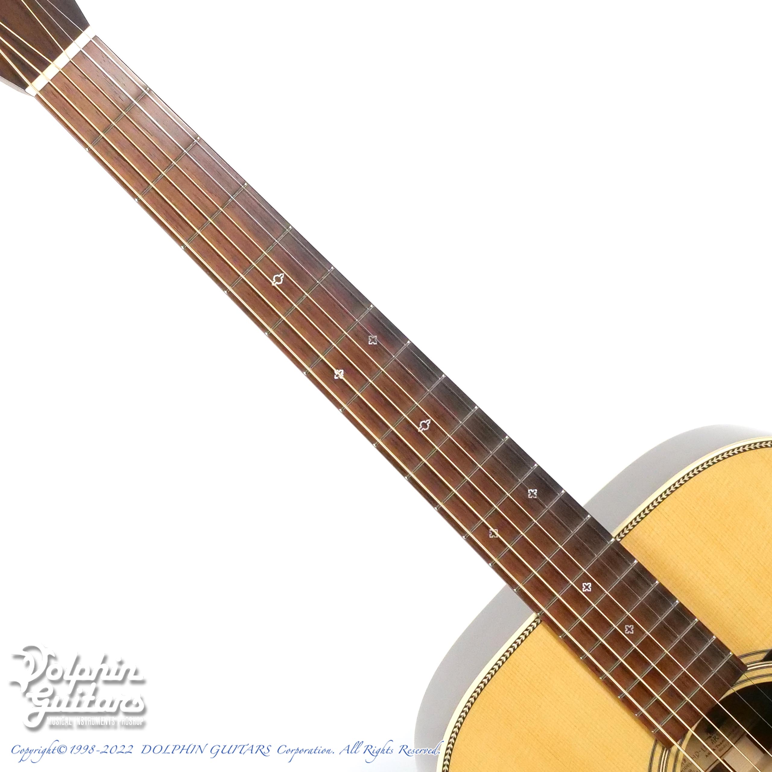 トップはその名の通り色白できめ細かく大変美しいホワイト・スプルースを採用。このホワイトスプルースはヨーロピアンスプルースにも似た性質を持ち、シトカ・スプルースなど他のものに比べて柔らかめな質感を持ちます。サウンド面でもこれが影響し、インディアンローズウッドとの相性も非常に良く、 幅があり空間に広がるような音色を得られます。