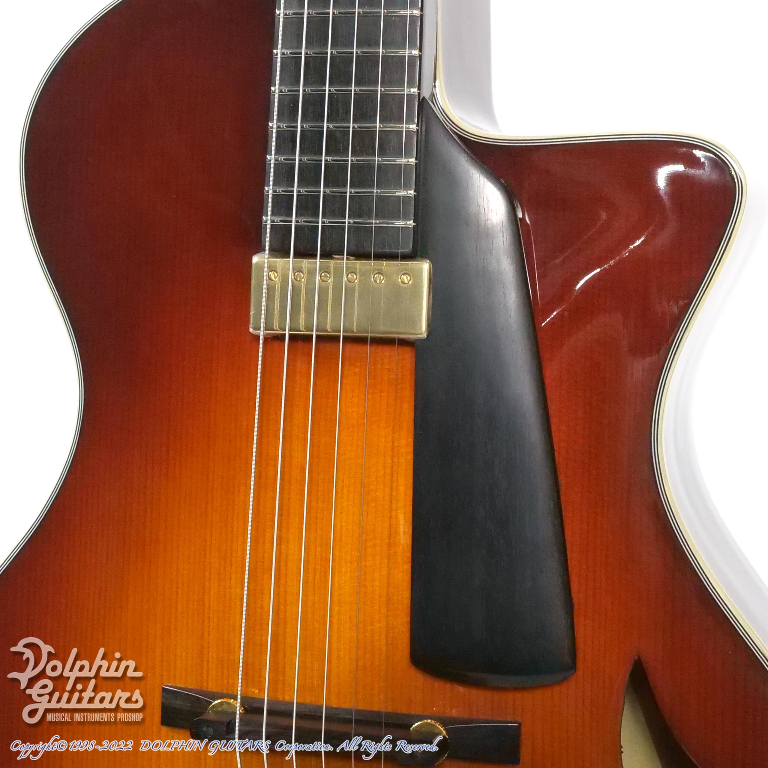 サイドサウンドホールや片側のみに配置されたFホールなど、ギブソン系の伝統的なアーチトップとは一線を画すデザイン。トップは厳選されたAAA Tight Grained Spruceと呼ばれる極上のスプルースを使用、Lollar Johnny Smithピックアップと相まったソフト&メロウなトーンは、まさにジャンルレスなサウンド、様々な用途にお使いいただけそうです。
