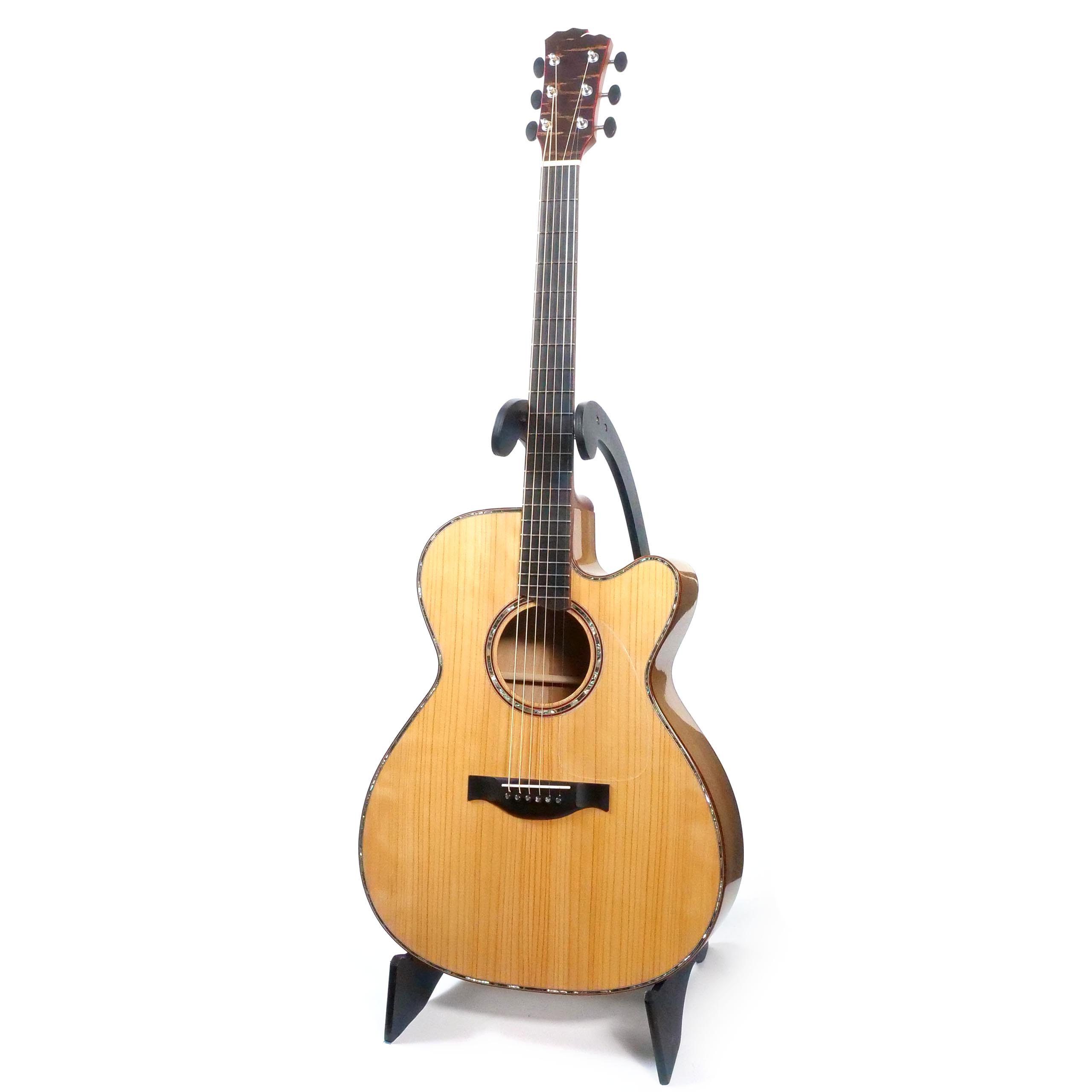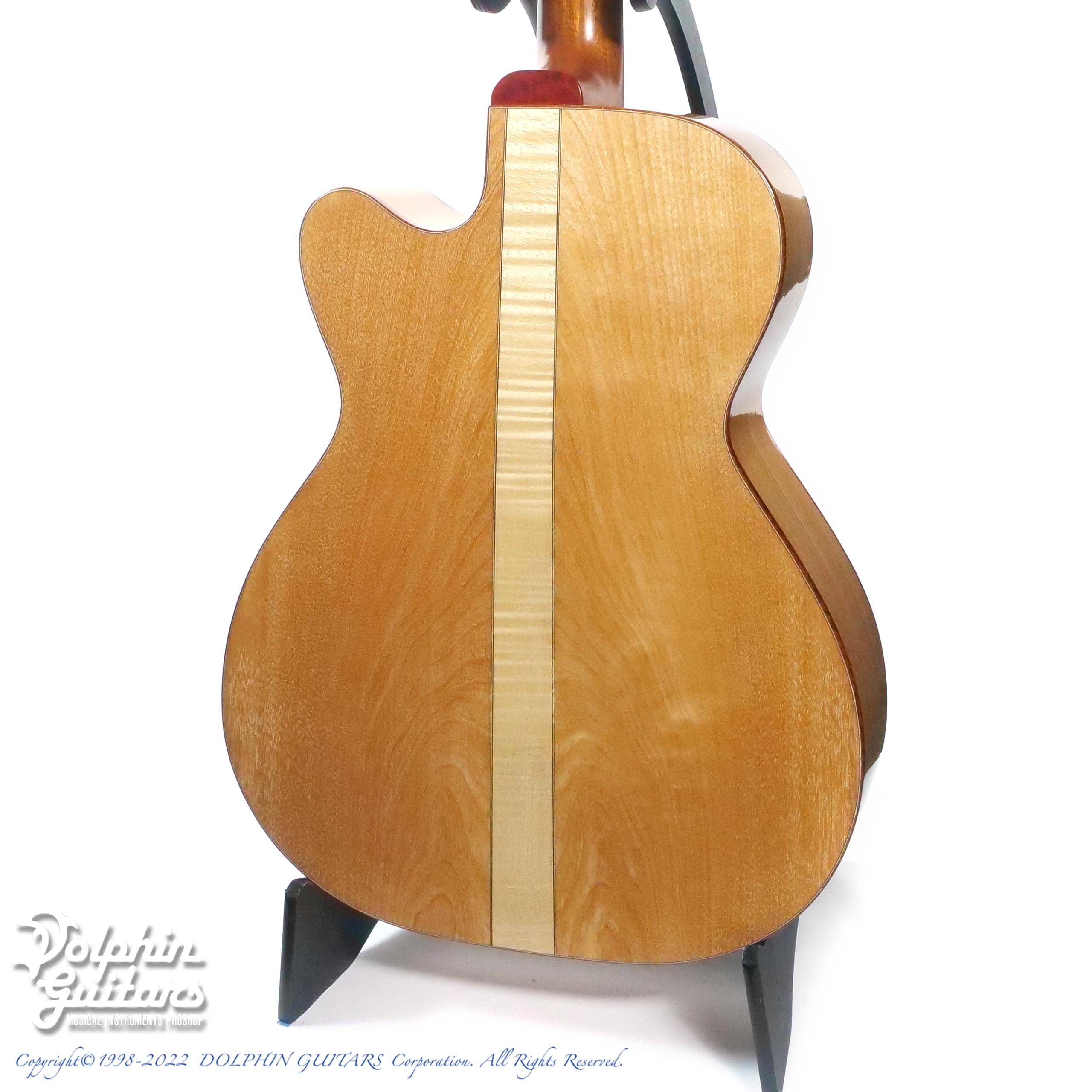 ワイルドな杢目のメタセコイアは杉の仲間ですが、鳴らすと一瞬アディロンダックスプルースのような弾力のあるパワーを感じます。ボリュームや広がりもたっぷりあり、迫力のあるサウンドで奏でるフィンガースタイルを理想とする方にはピッタリかもしれません。山桜の軽やかさもフィンガーでの鳴らしやすさに貢献しているでしょう。