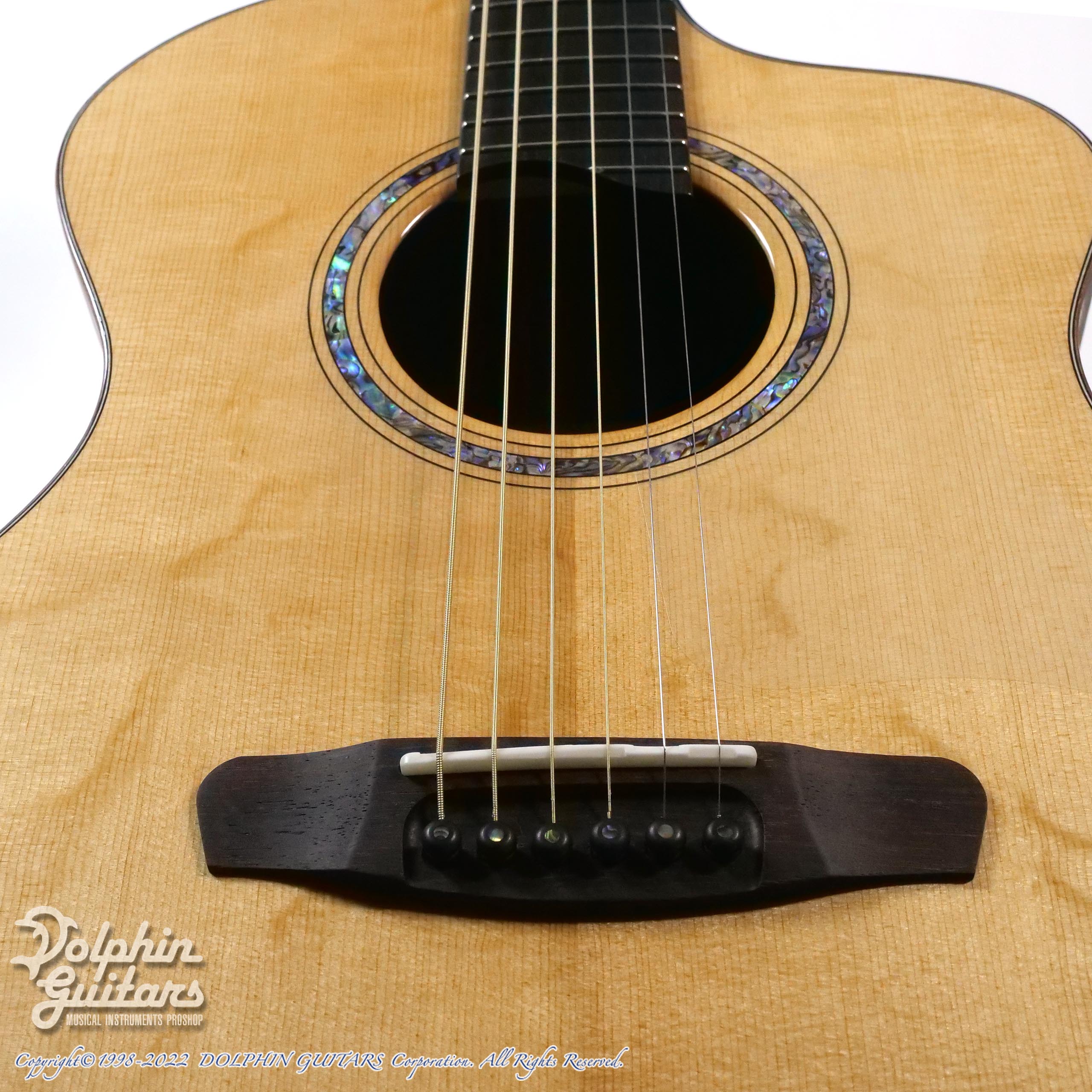 本器はDowinaのトップルシアーが全てを手掛けるフラッグシップ、MASTER SERIESのアンバーロードモデル、AMBRD-GAC-DSのトップにトリファイド加工を施したベアクロウドロミテスプルースを採用した限定品、AMBRD-GAC-TDS LTD (Torrefied & Bear Claw Top)。【2本限定】