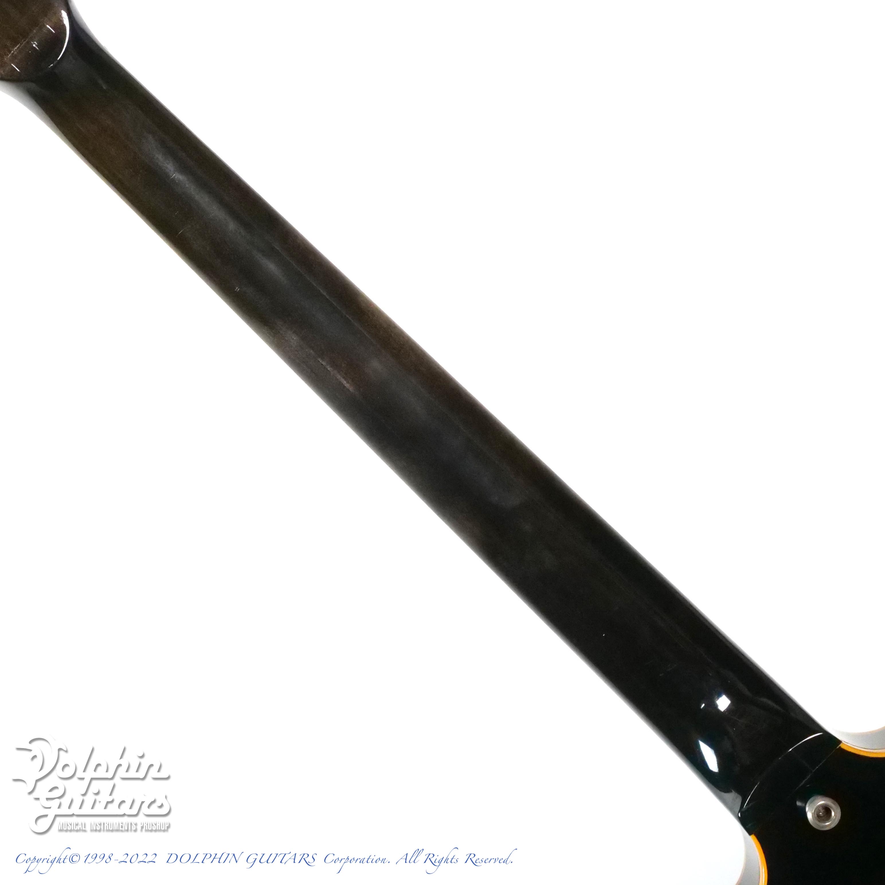 テールピースはこの時代のお約束とも言えるカスタマイズで、ストップバーに交換されております。また、ペグはシャーラー製に、ポットノブはハットタイプに交換されております。使い込まれ塗装の痩せたネックは非常に馴染む質感です。全体的に年式相応のキズや使用感はございますが演奏面のコンディションは良好です。