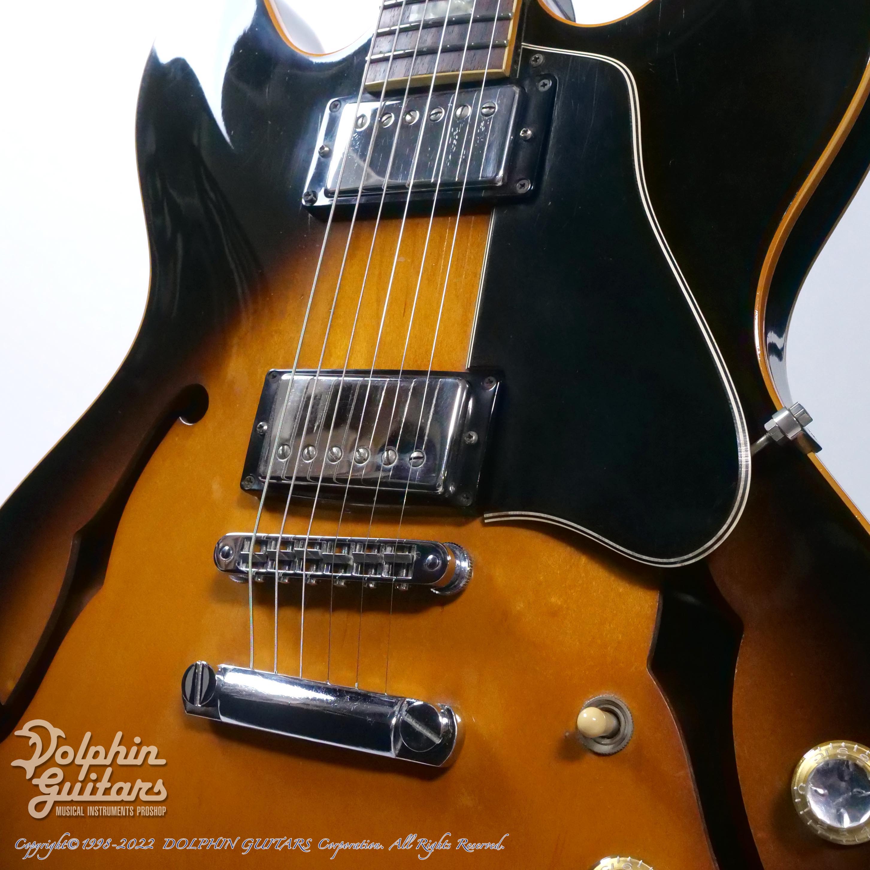 ボディに空洞部が多いこの年代はエアー感あるサウンドが特徴です。柔らかく弾き手に伝わるアコースティックな弾きごたえが癖になりそうな335サウンドです。