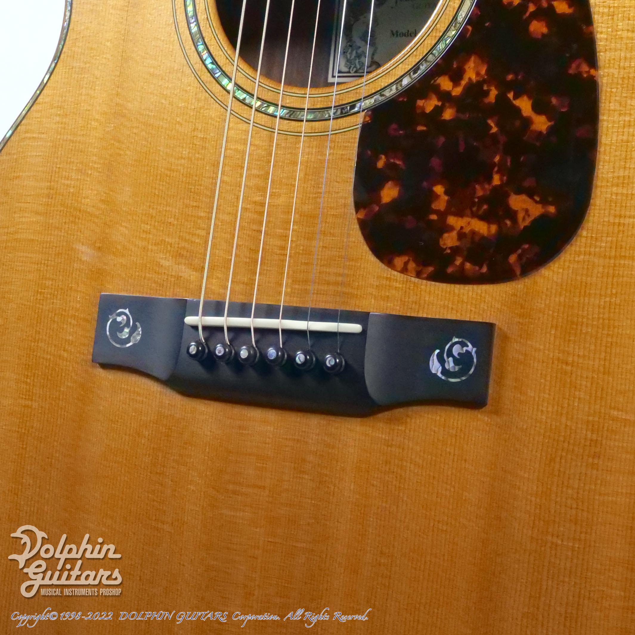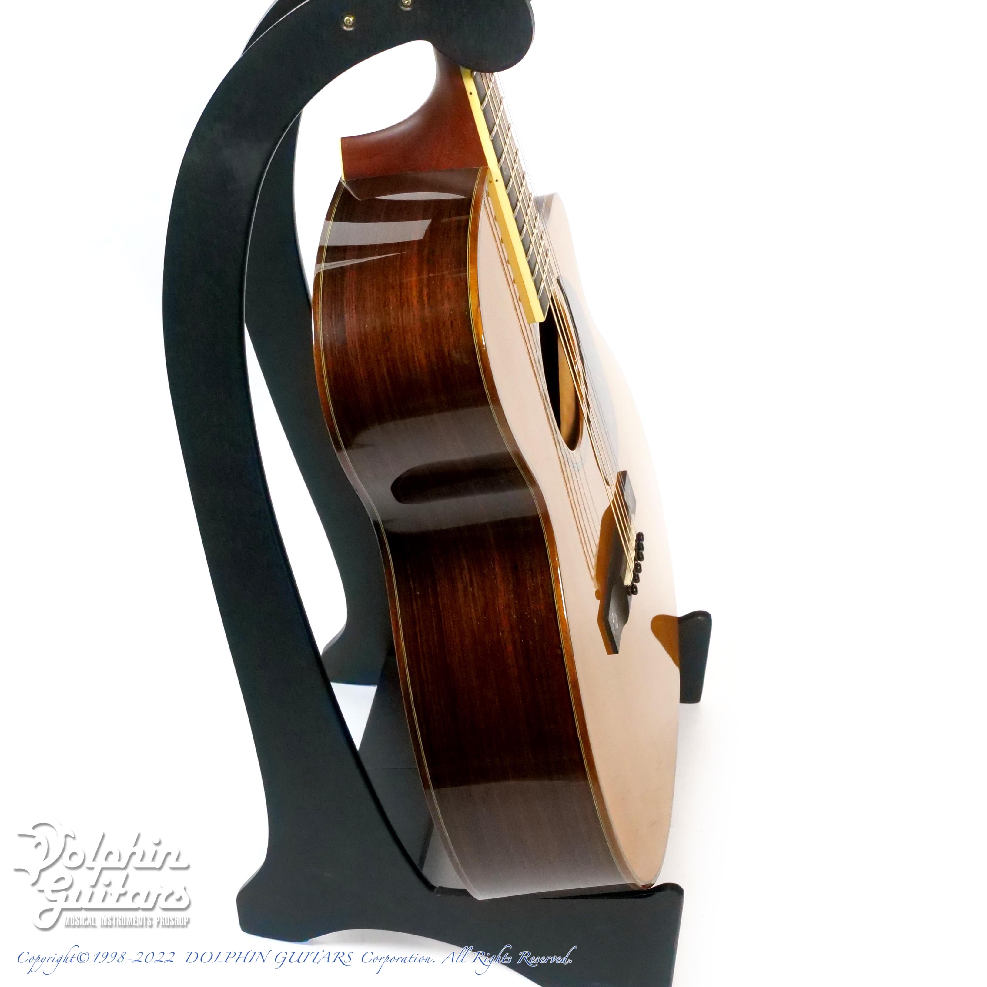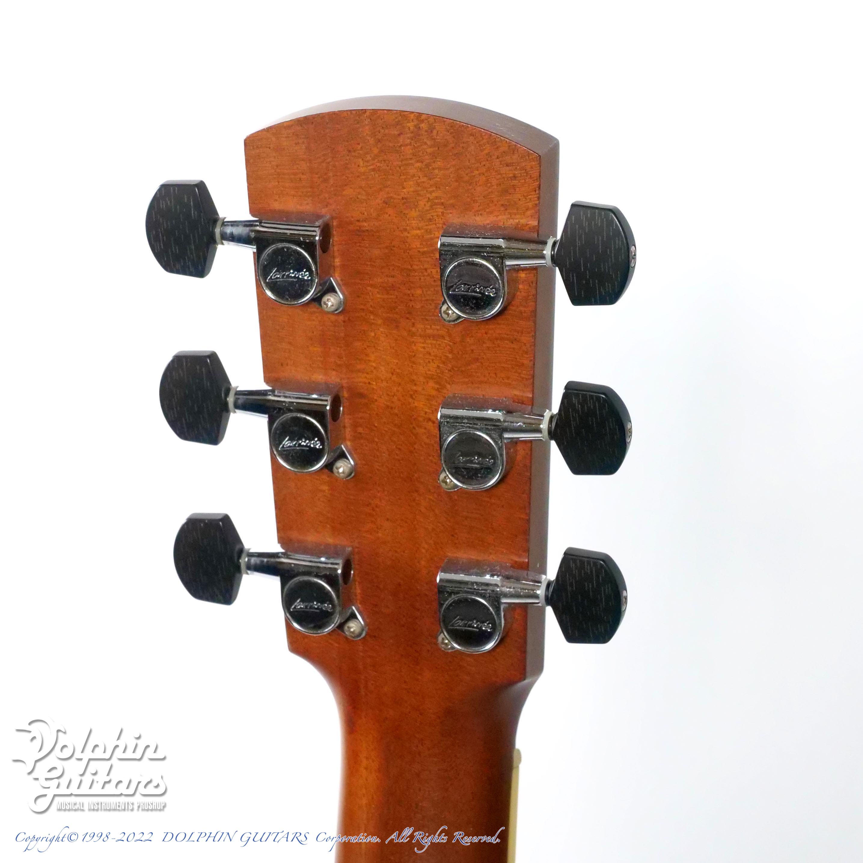 2001年には上位機種の生産をカリフォルニアに移しておりますので、本器もUSA製です。ラリビーお得意の美しく気品あるインレイワークは目を奪われます。ヘッドインレイは"Genie Female"、指板インレイは"DELUXE"。ボディもアバロンで囲われ、ブリッジにもワンポイントが入り見所満載です。見た目の美しさもさることながら、音色もとても上質。ギラつきの少ない高音域、どっしりと構える低音も魅力的。OMはバランスの良さとスムーズに鳴らせる良好なレスポンスが気持ち良いモデルです。