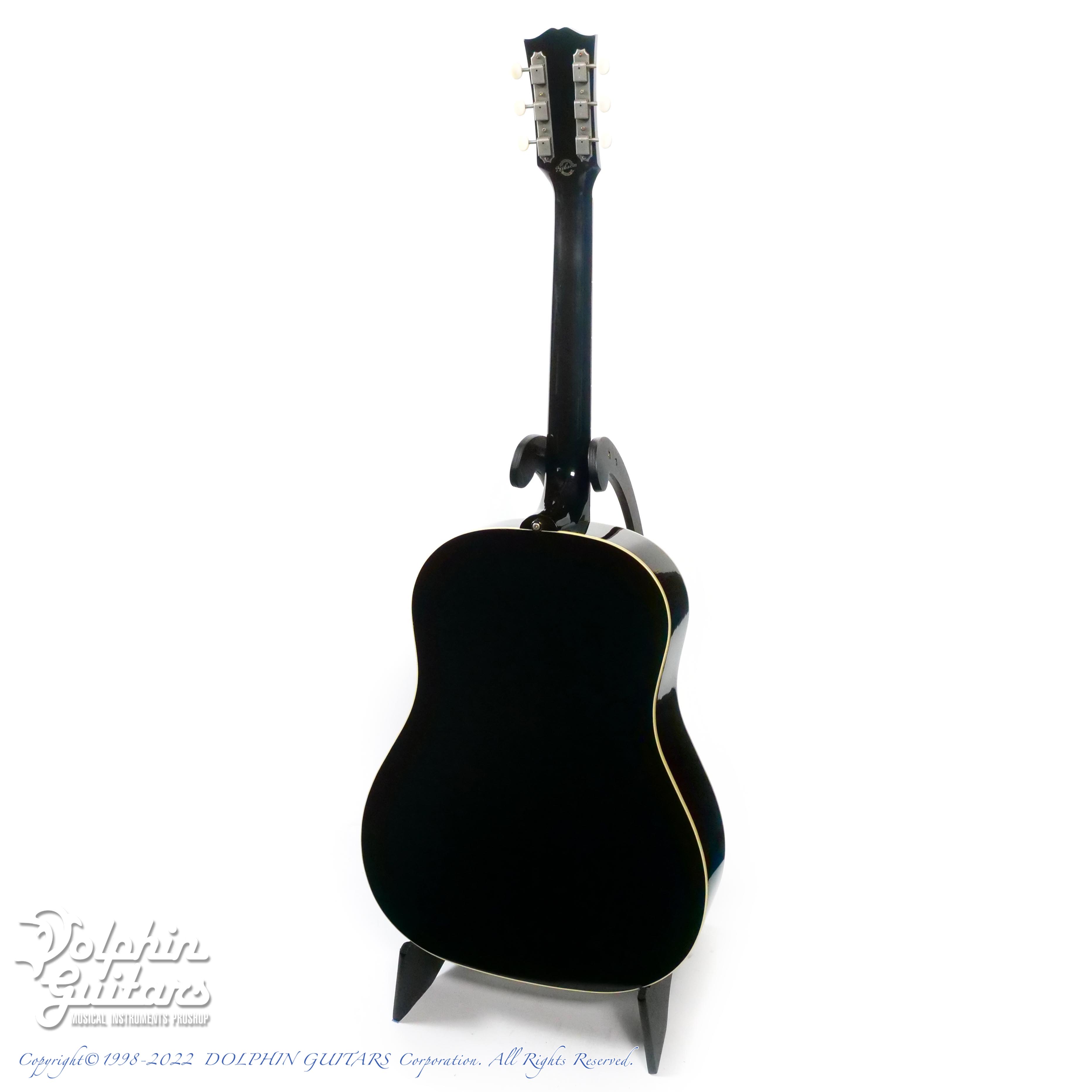 本器は、1960年代後半のわずかな期間しか生産されなかったブラックフィニッシュの復刻版、J-45 ADJ Ebonyの2011年製USED品。