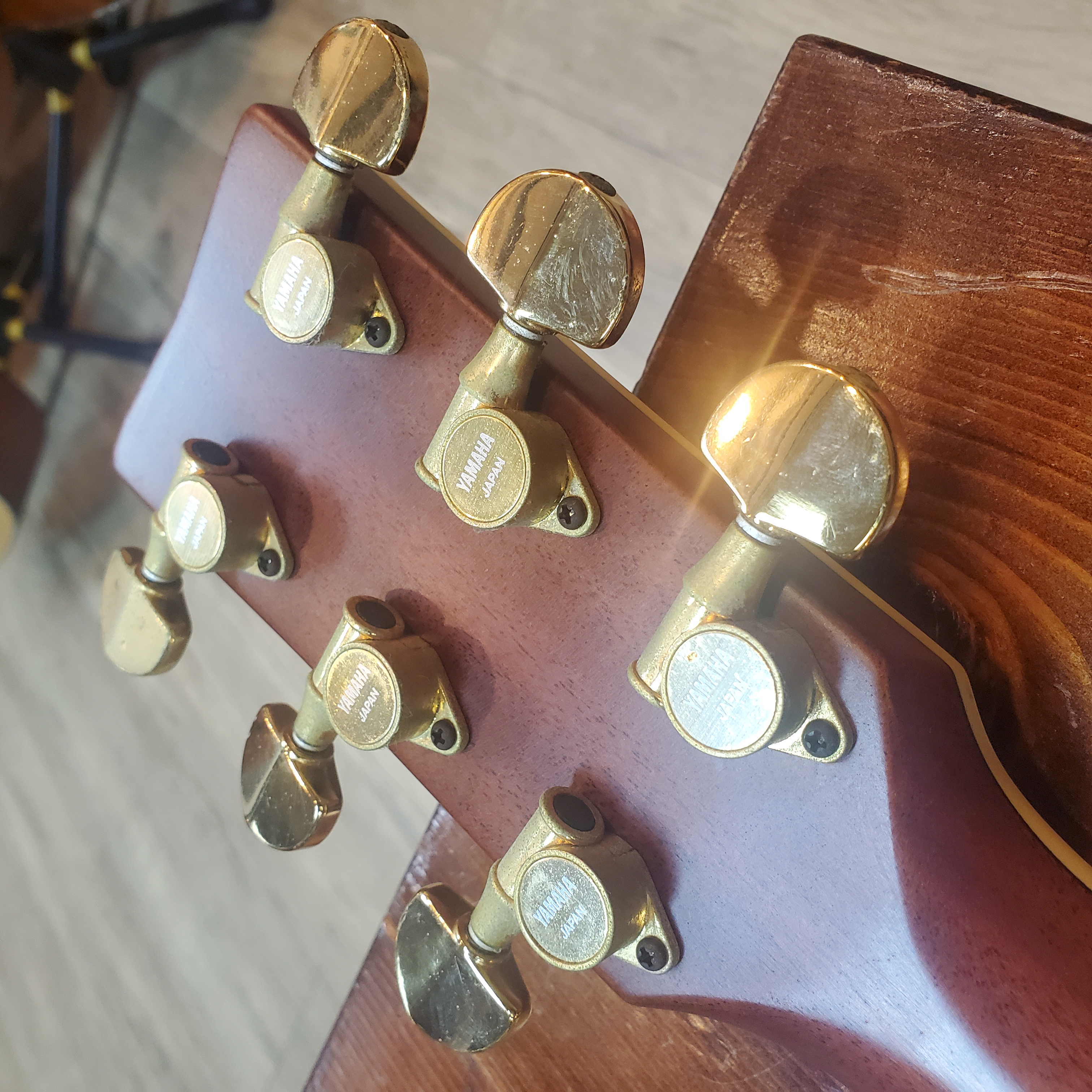 ヤマハ伝統のボディシェイプにアバロントリムが美しく品のあるルックスが目を惹くモデルです。