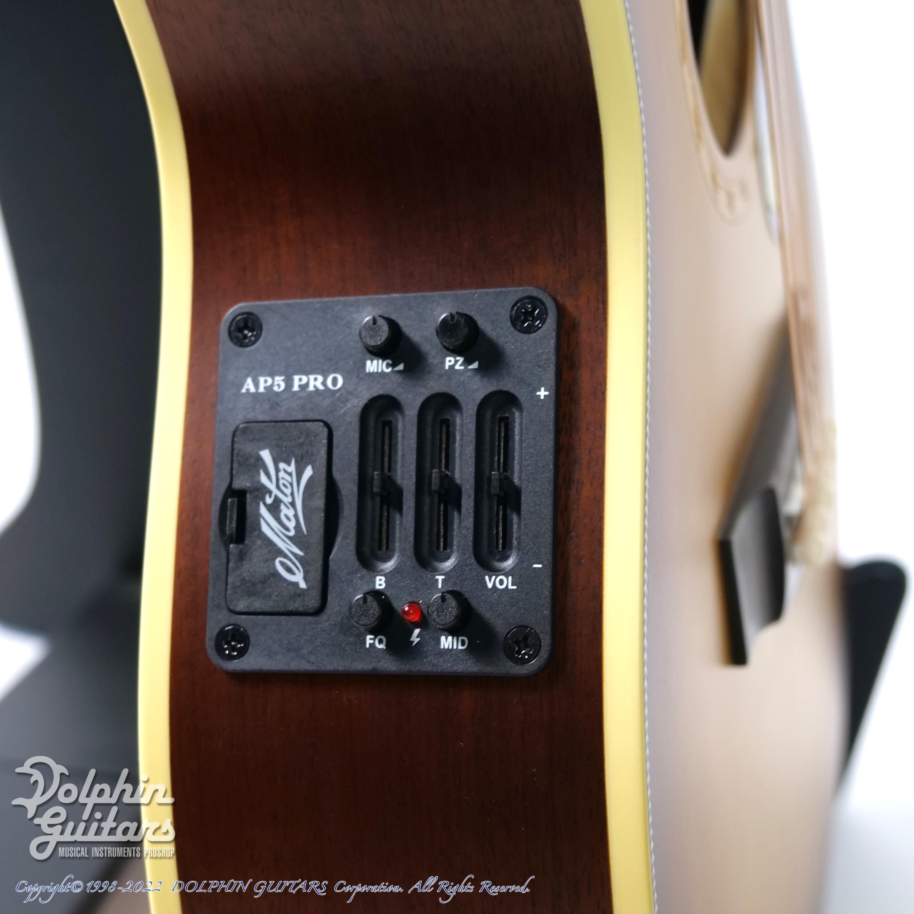 メイトンの魅力の一つでもあるピックアップシステムはメイトン社オリジナルのAP5-Proは特殊構造のアンダーサドルPUとコンデンサーMicをMixし、リアルなアコースティックサウンドをアウトプットできます。サイズはミニであってもラージボディにも引けをとらないこの大迫力のサウンドに、初めて弾かれる方は驚きを隠せないでしょう。
