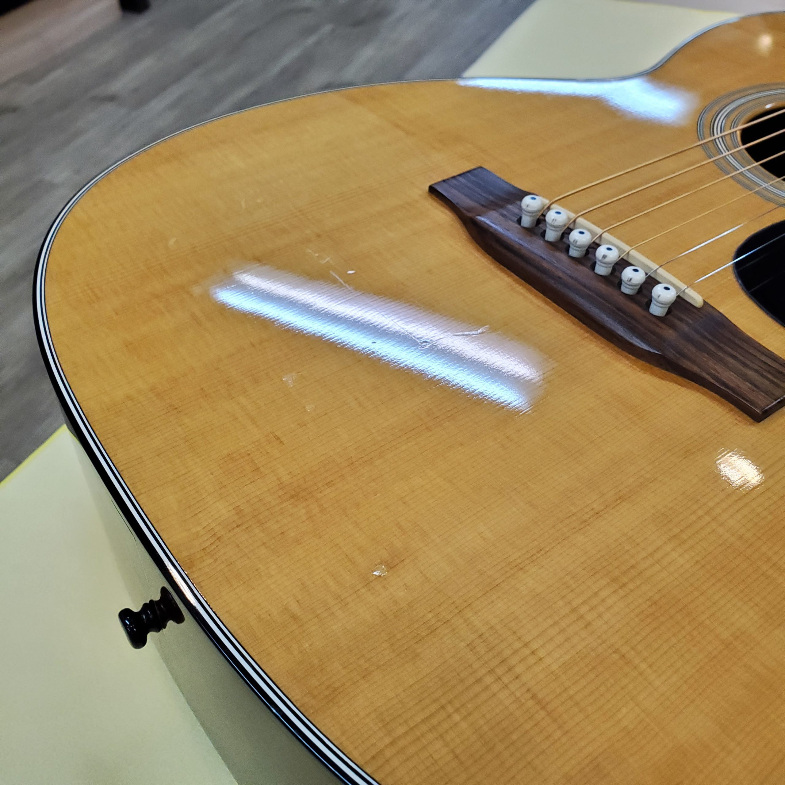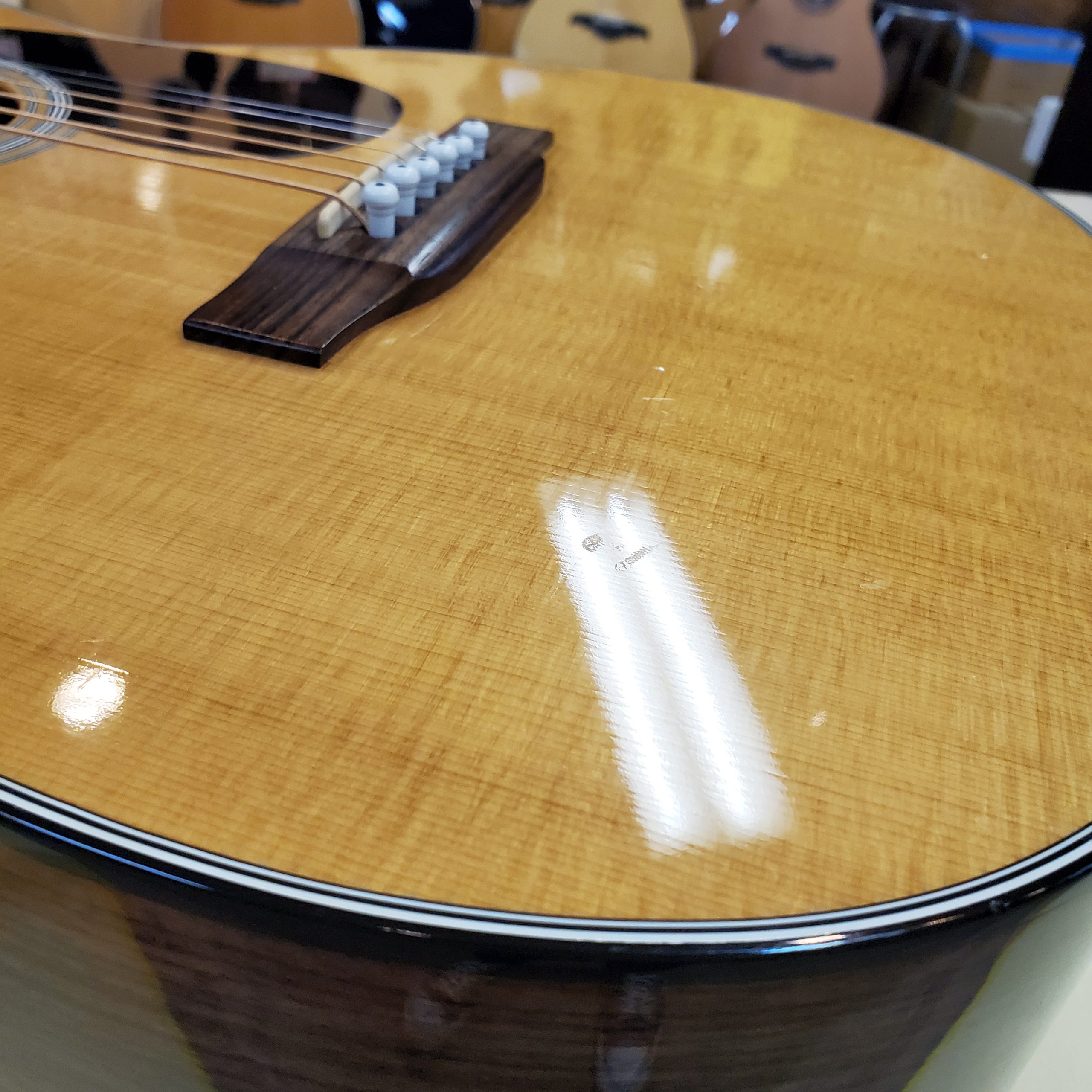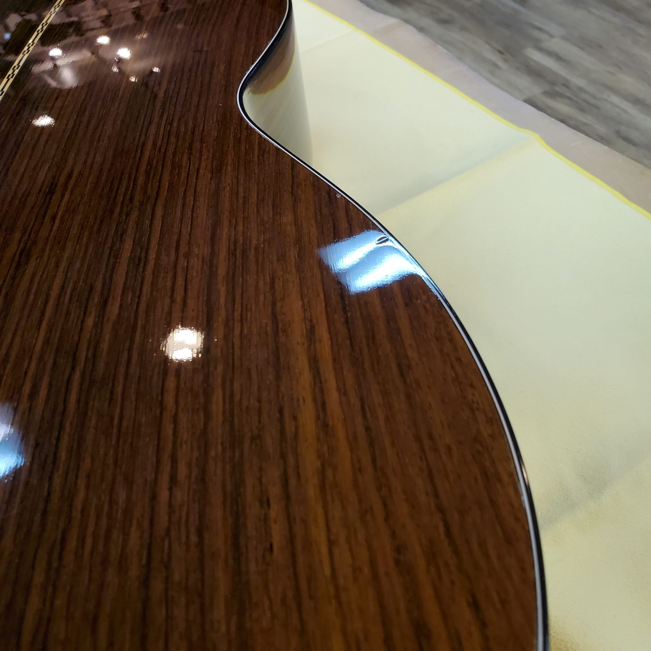 12ジョイント特有のゆったりとした低域と伸びやかな高音、どこかクラシックギターを彷彿とさせる品のあるサウンド、特にローポジション時の開放感は格別です。