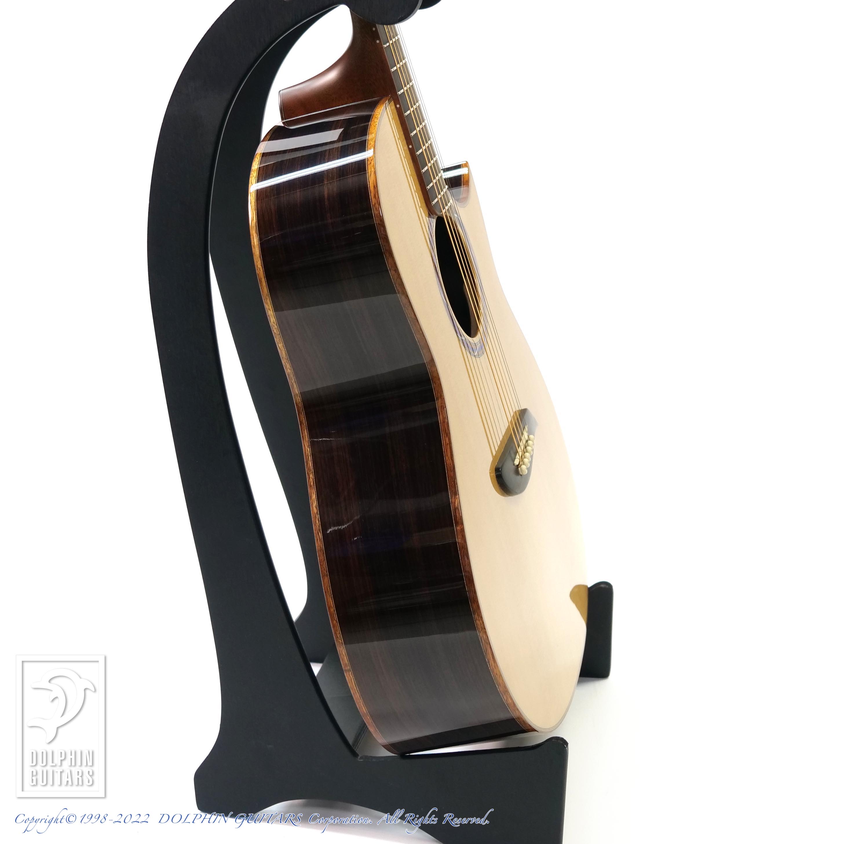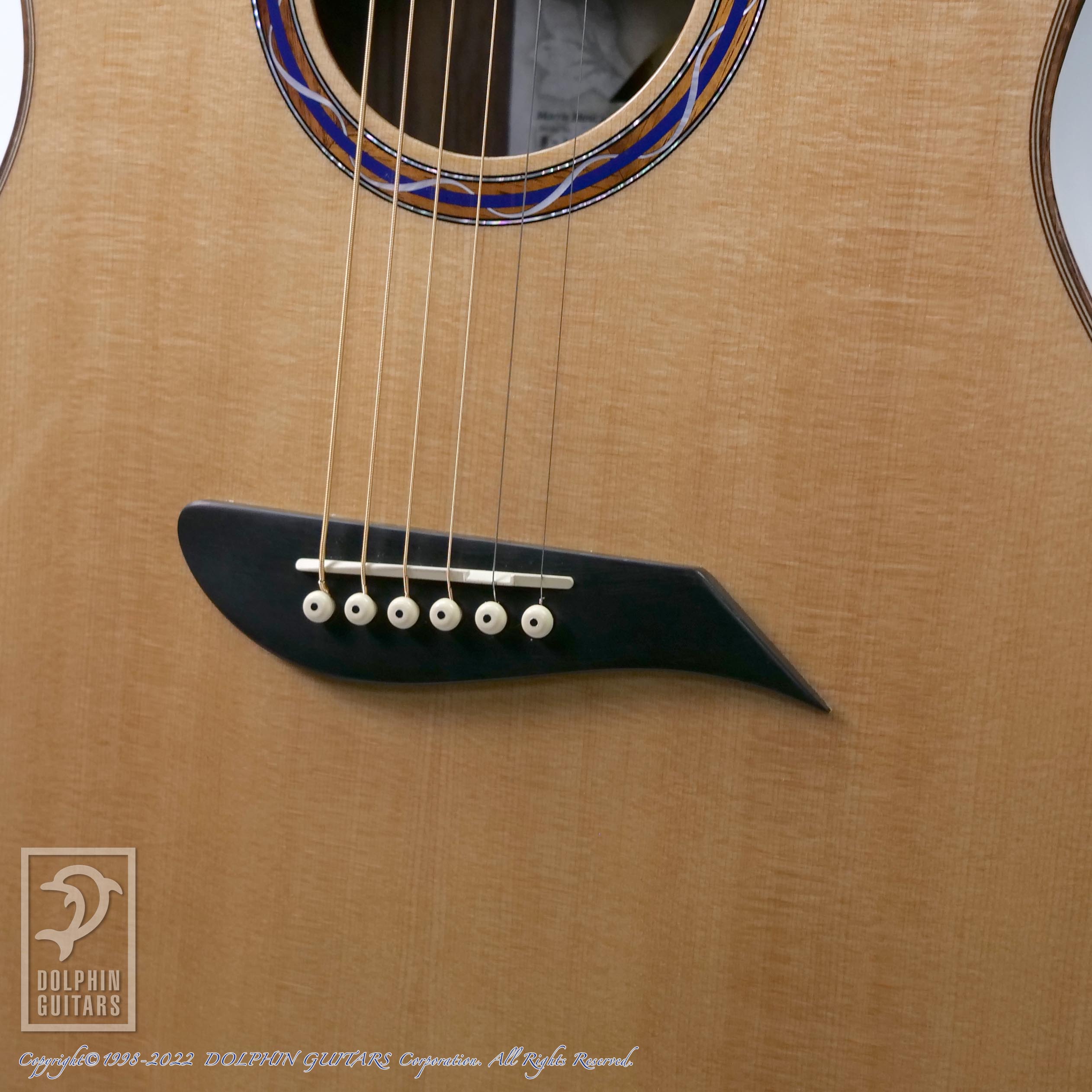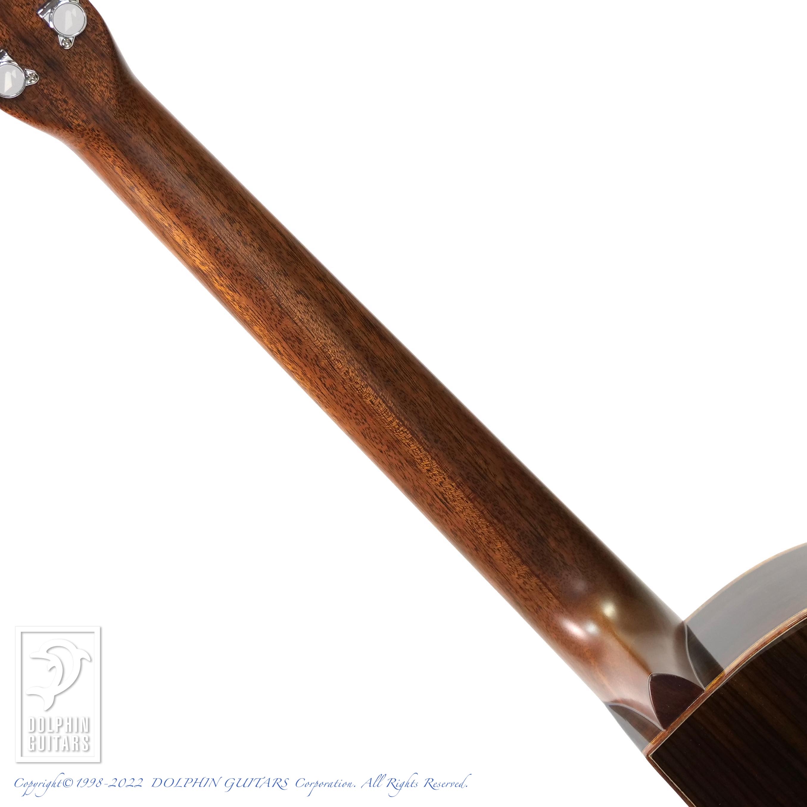また個性的なサウンドホール・ロゼッタ、ブリッジ形状、カーリーコア・ウッド・バインディングは優雅さを強調します。