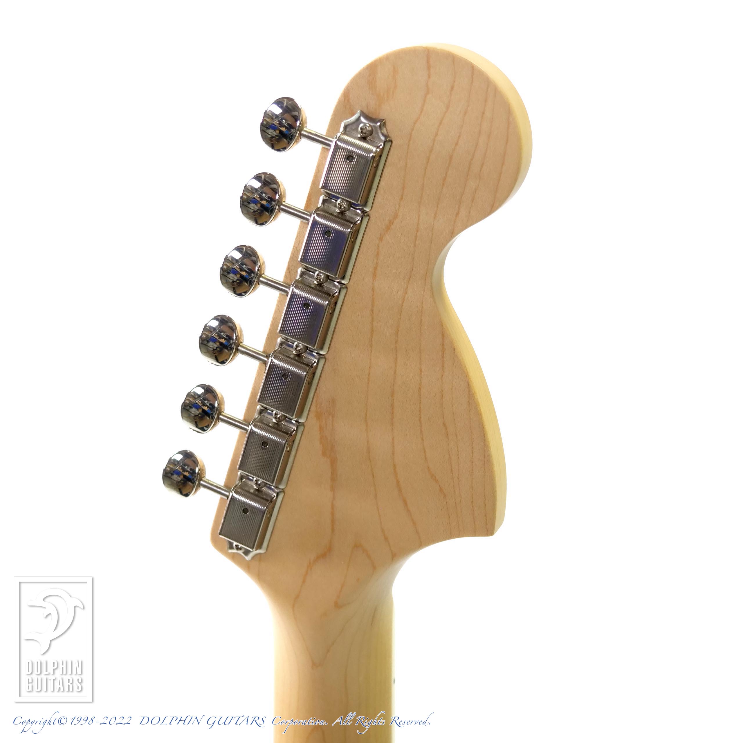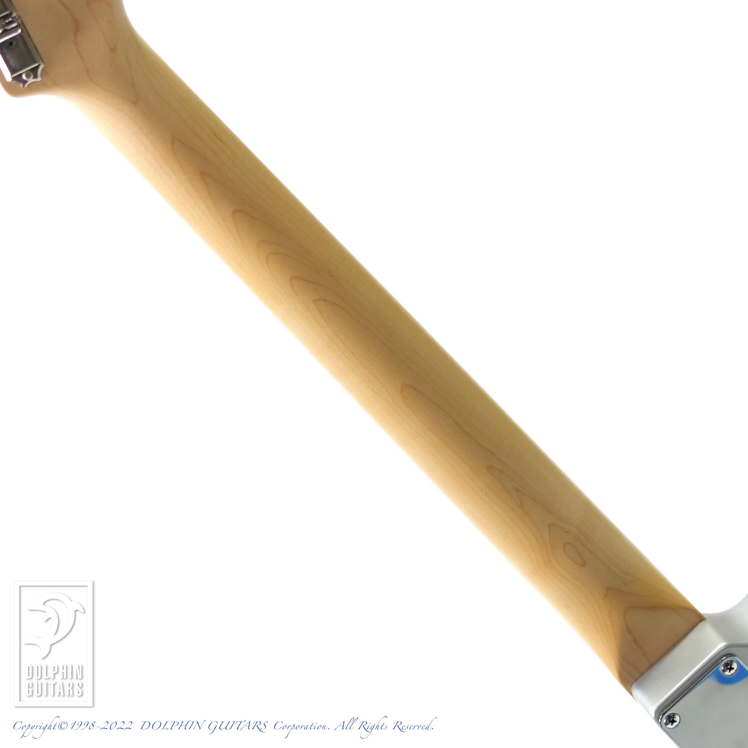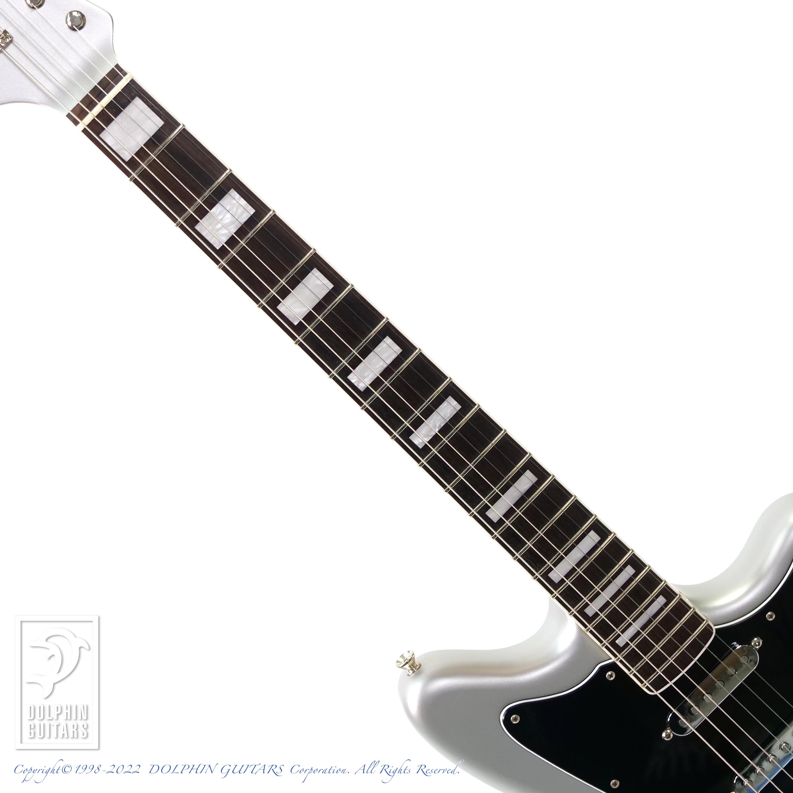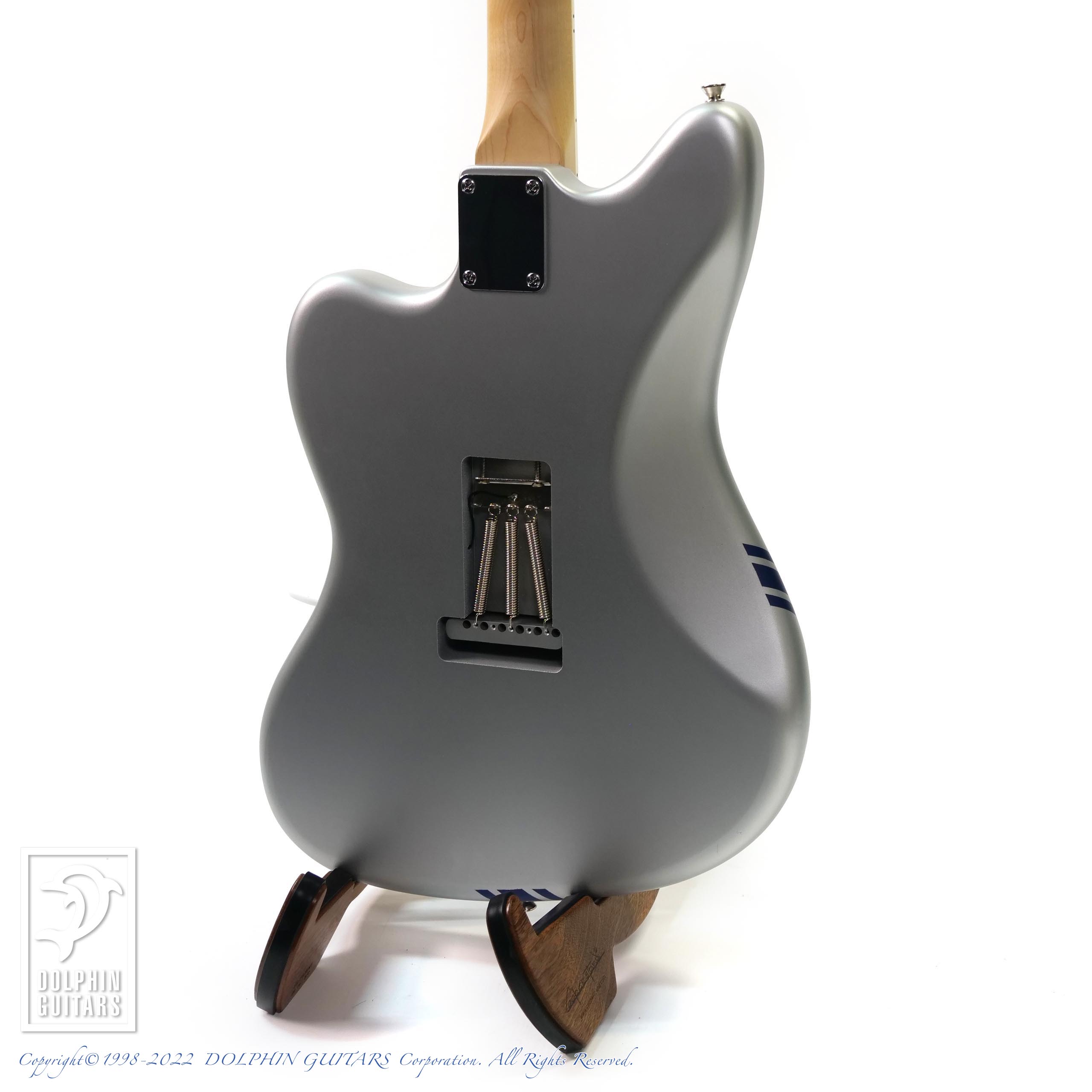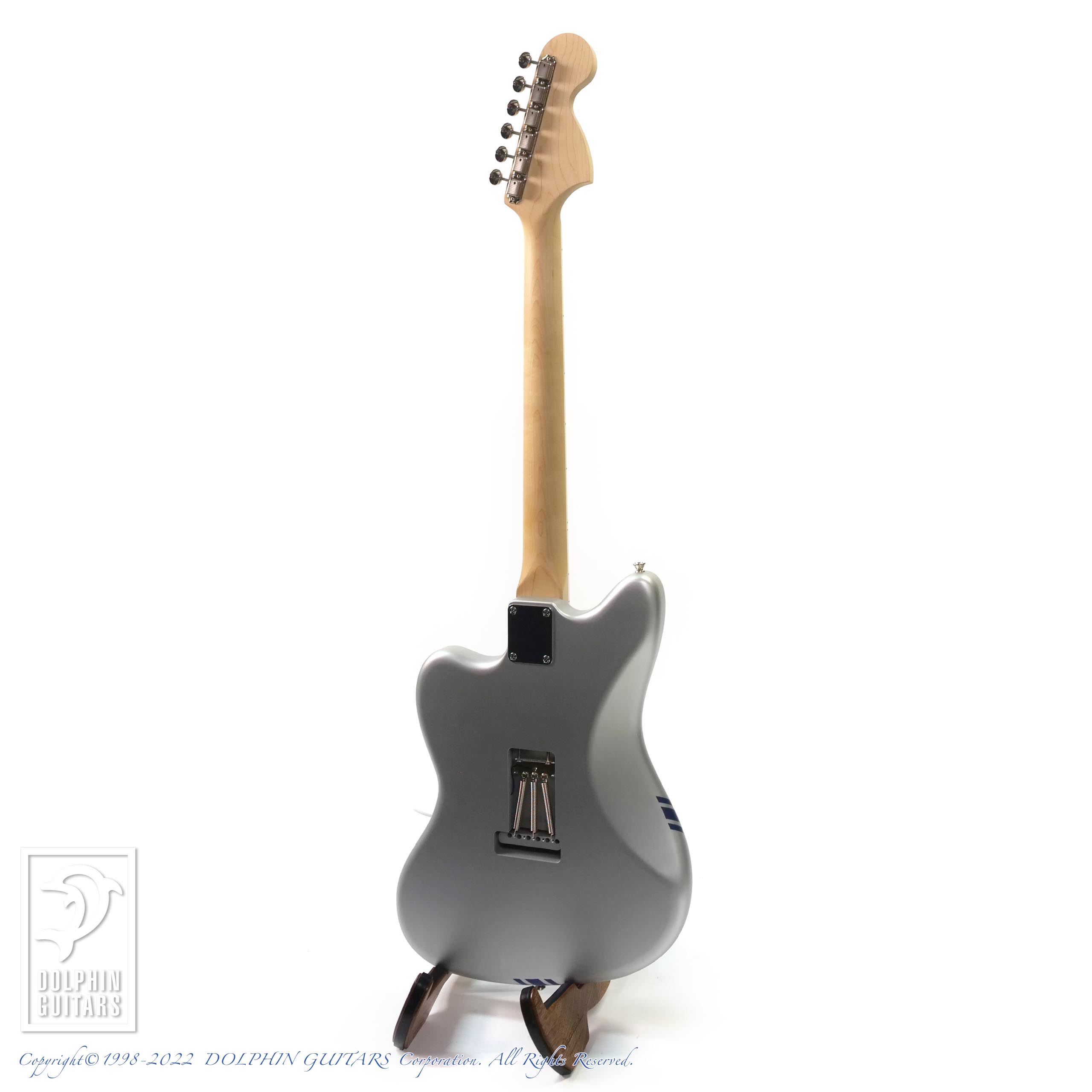 Platinum Silver Metallicと名付けられたコンペティションライン入りのマットフィニッシュが目を引くカスタムモデル。リバースシェイプのマッチングヘッドも古めかしいようで新しい、独特の渋さを放ちます。ジャズマスタータイプですので通常はピックアップもJMタイプですが、本器はリアにスタックハムを配した3シングルで多彩なサウンドバリエーションを演出しています。