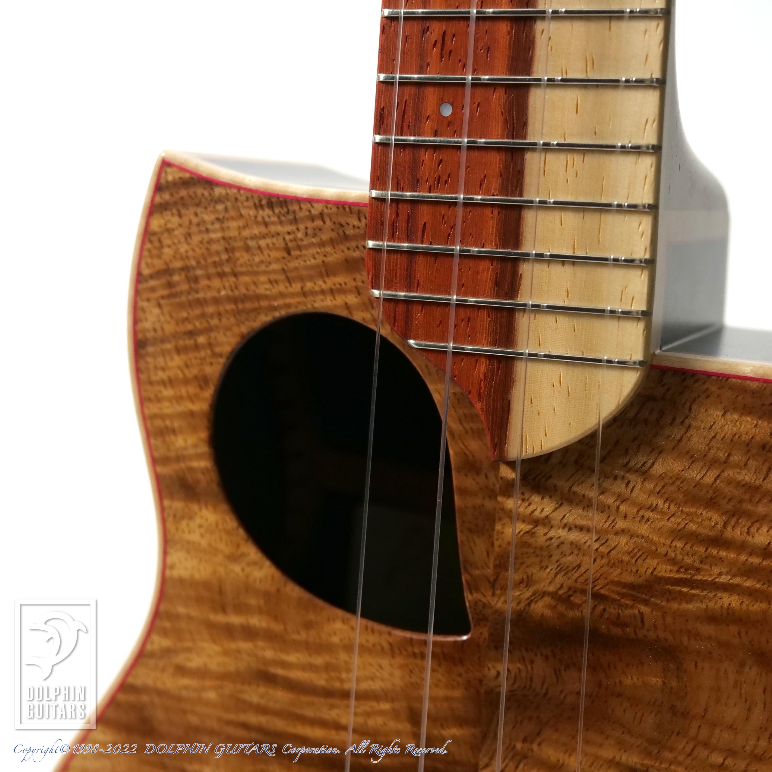 他にも俗称デビルマンブリッジや、サップ部分を尻尾に見立てたデビルテイルチャームなど、見どころ満載なウクレレです。