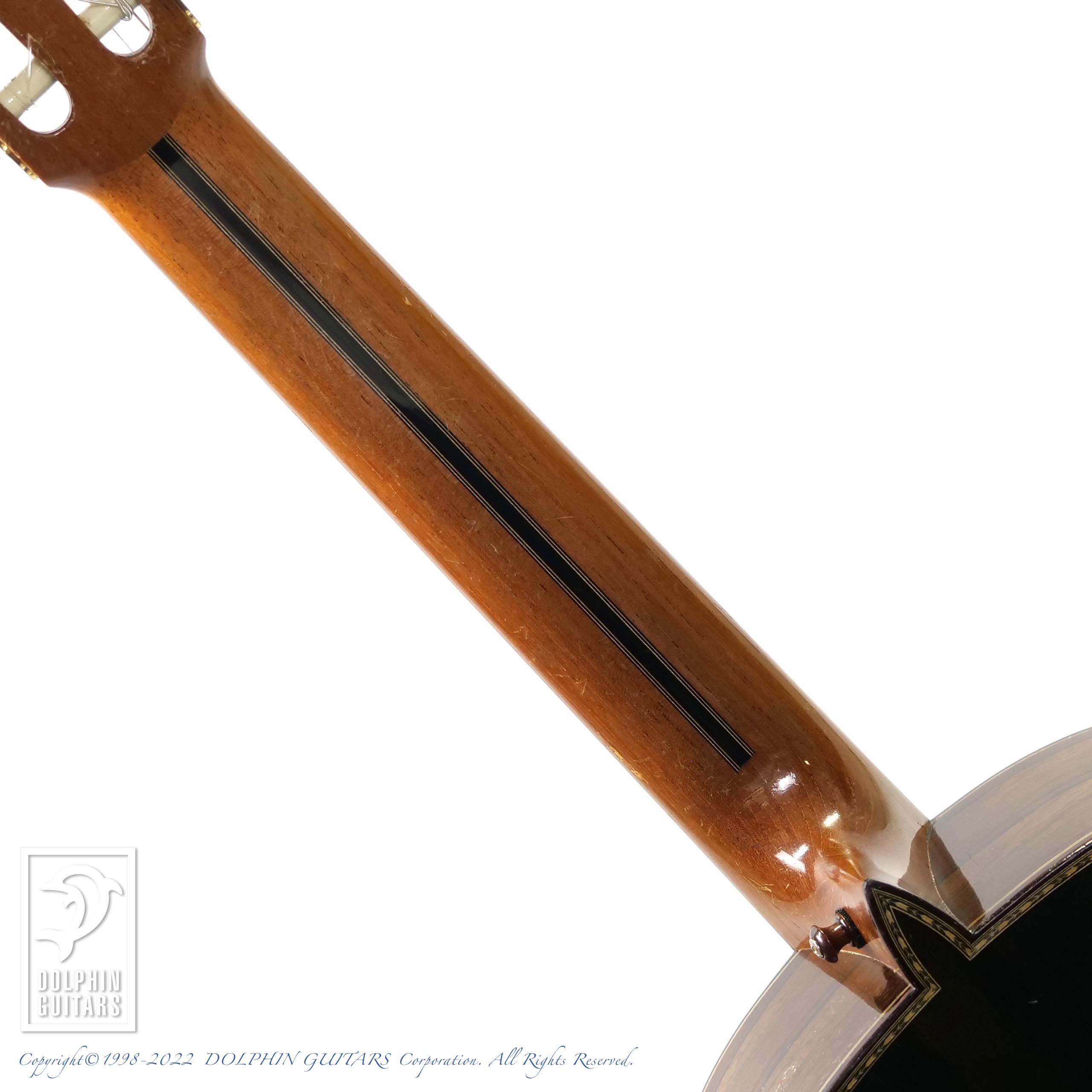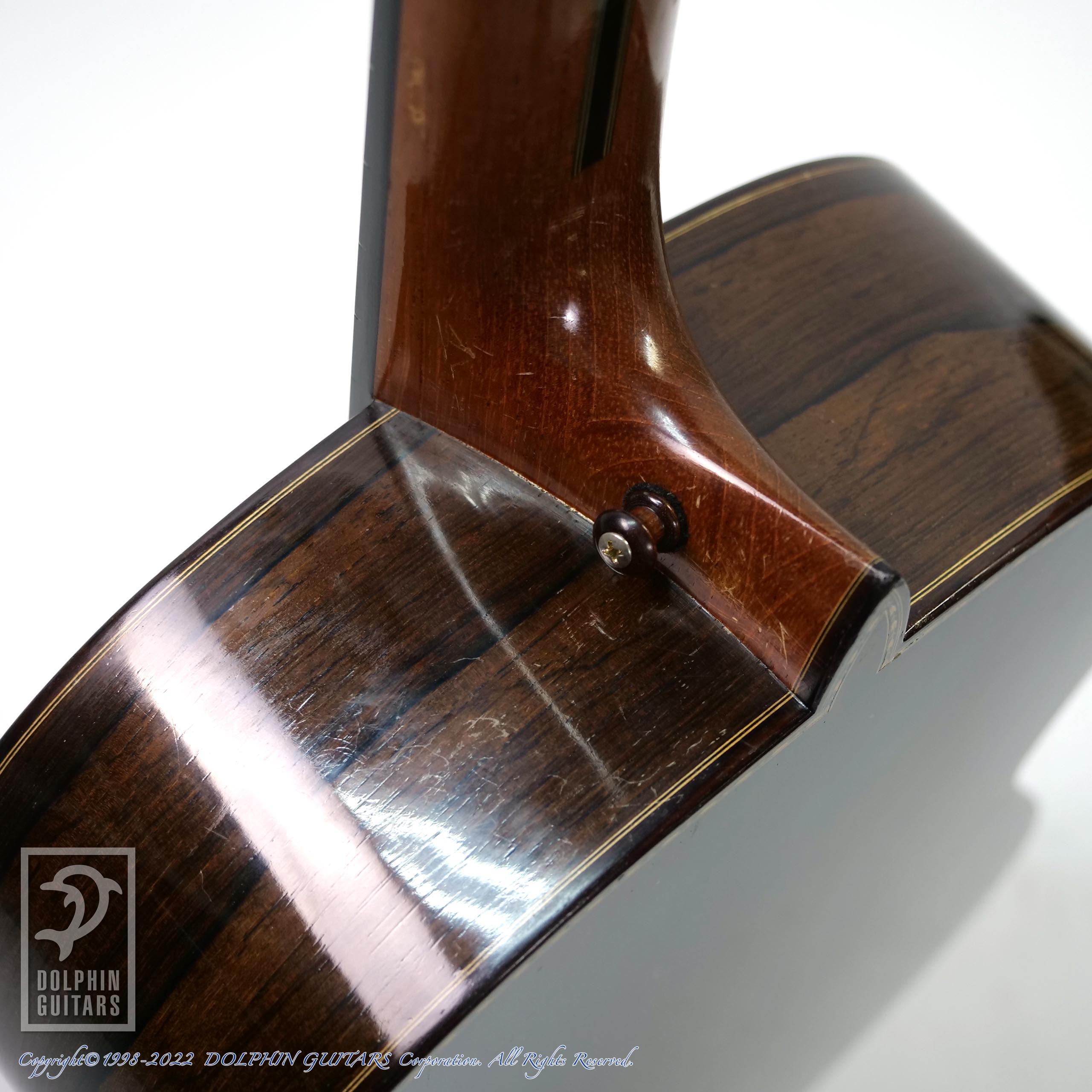 全体的に使い込まれた形跡が逆にカッコ良く映ります。ストラップピン装着跡や、2弦のオクターブ改造跡など、クラシックギタリスト古川忠義氏が、とことんまでに愛器に向き合った様子をが伺えるコンディションです。