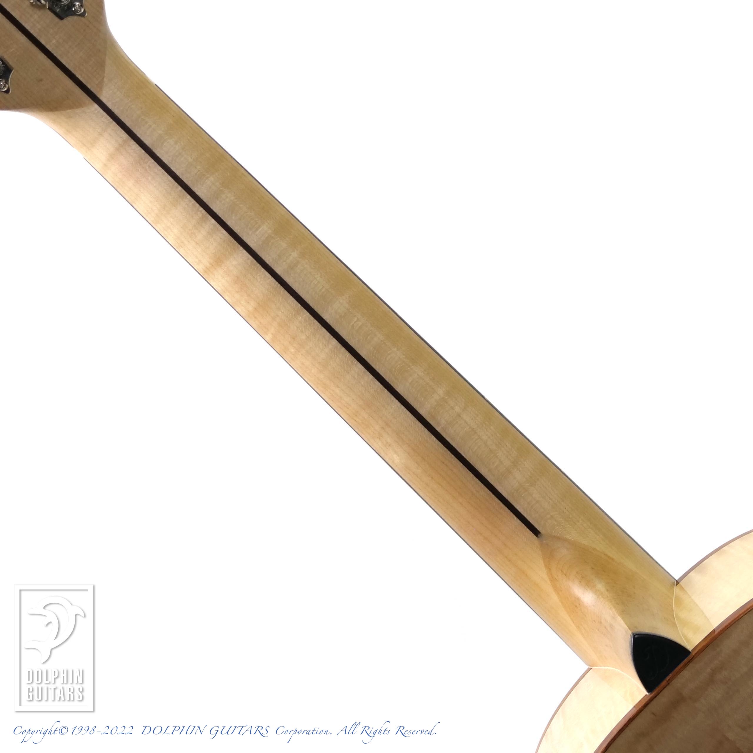 モデル名のACEROとは、イタリア語で「楓」を意味する言葉。その名が表す通りACEROは、ボディ、ヘッドストック、さらにはネックに至るまでその全てを華麗なフレイム柄をもつメイプル材で統一した、とても美しいギターです。国内入荷のACEROは直線的な美しい杢がほとんどですが、こちらはキルテッド(玉杢)が現れたエキゾチックなルックスです。