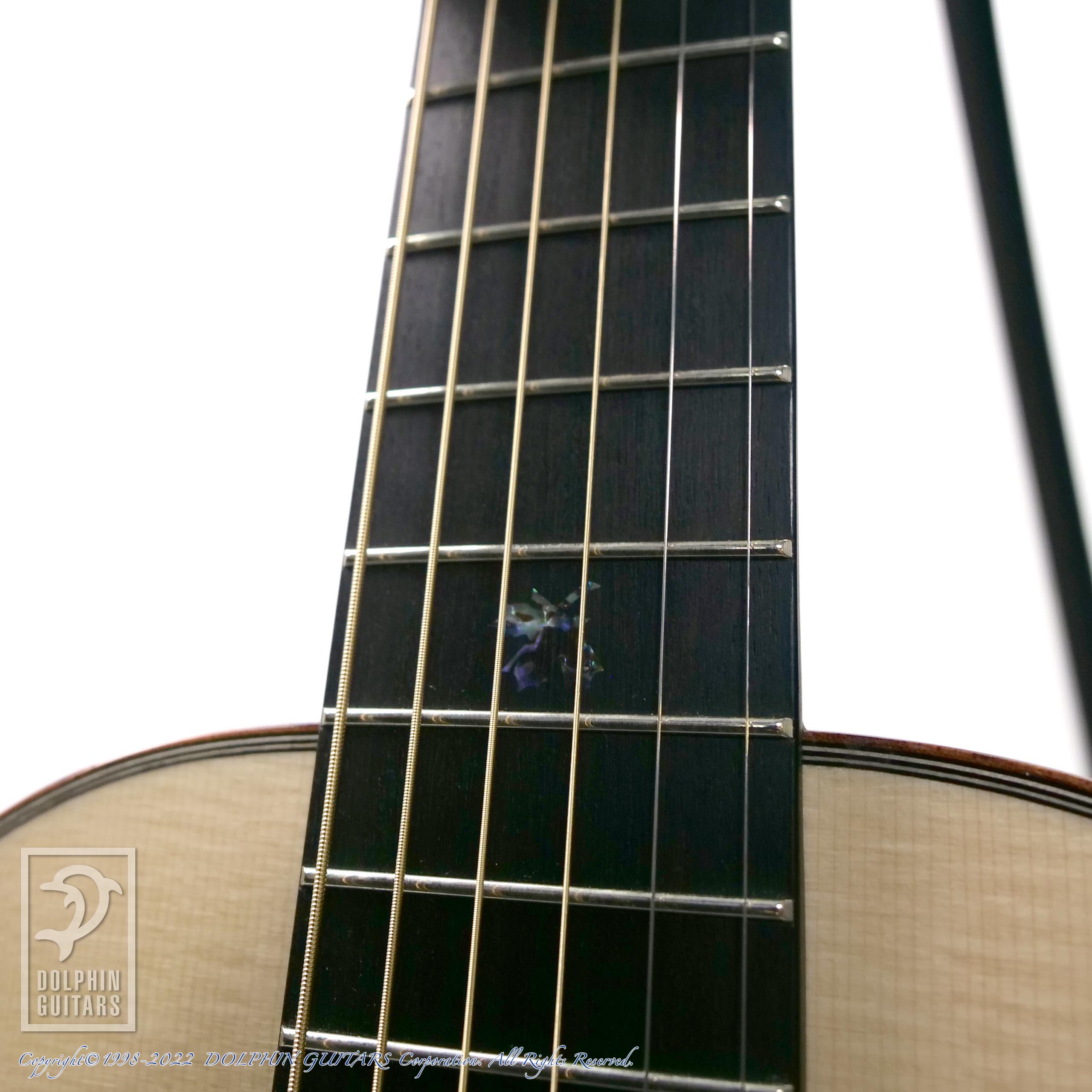 全音域にわたり淀みない透明感のあるサウンド、非常に爽やかな味わいです。テンション感も柔らかく、12Fジョイントの優しいふくよかさも味わえる魅惑のパーラー。