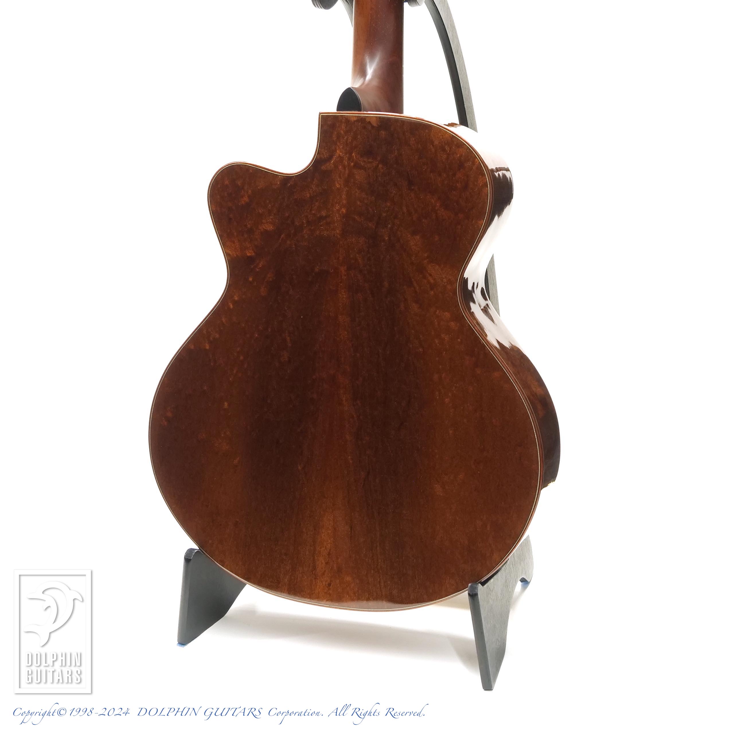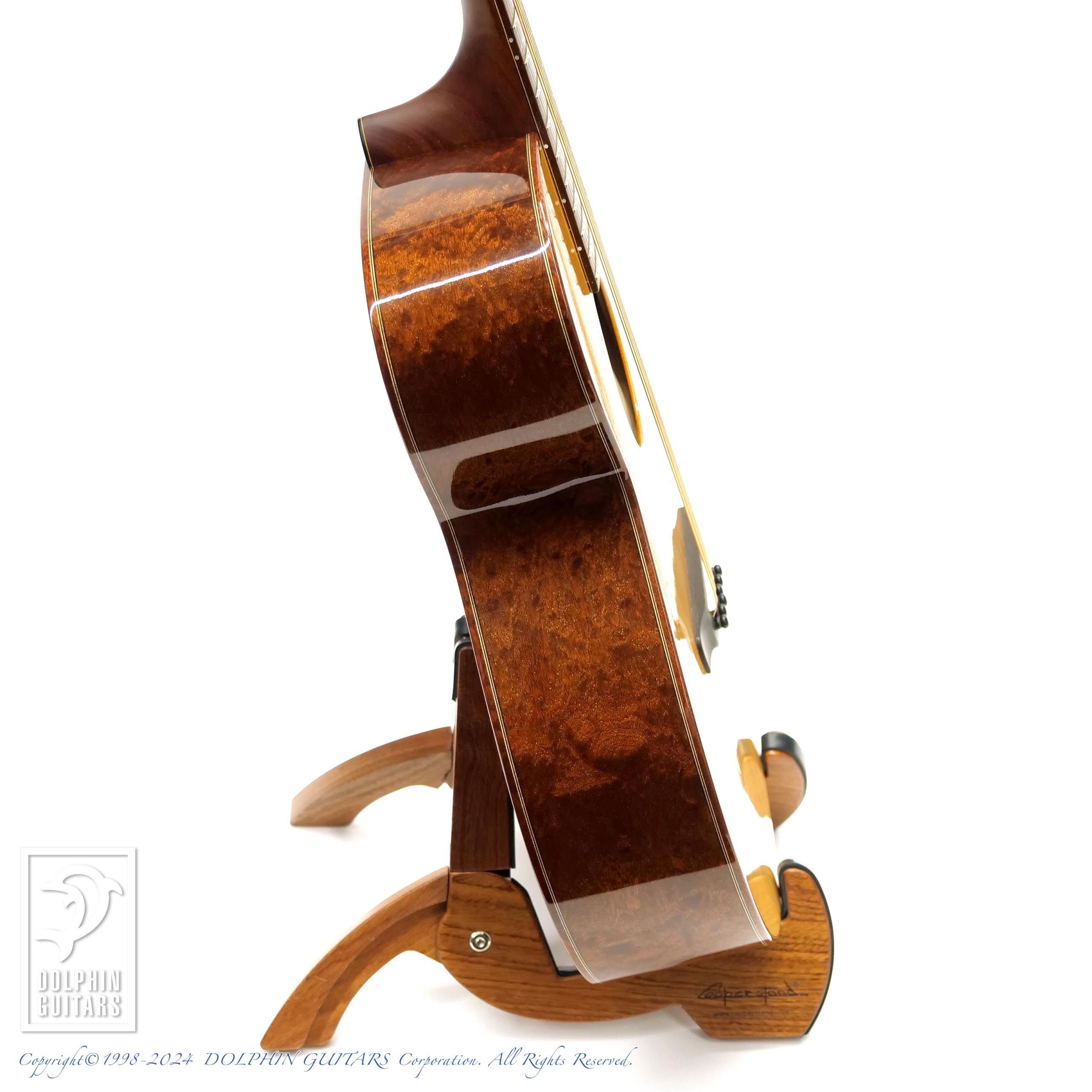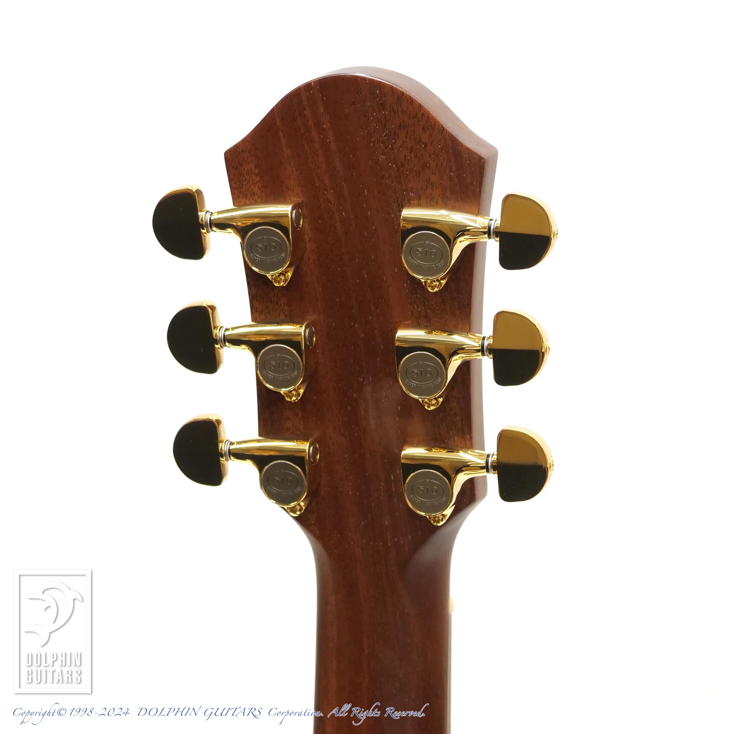 均整のとれた木目の詰まった美しいジャーマンスプルースをトップに、サイド&バックには細かな木目の入った美しく輝くキルテッド・マホガニーを使用。
