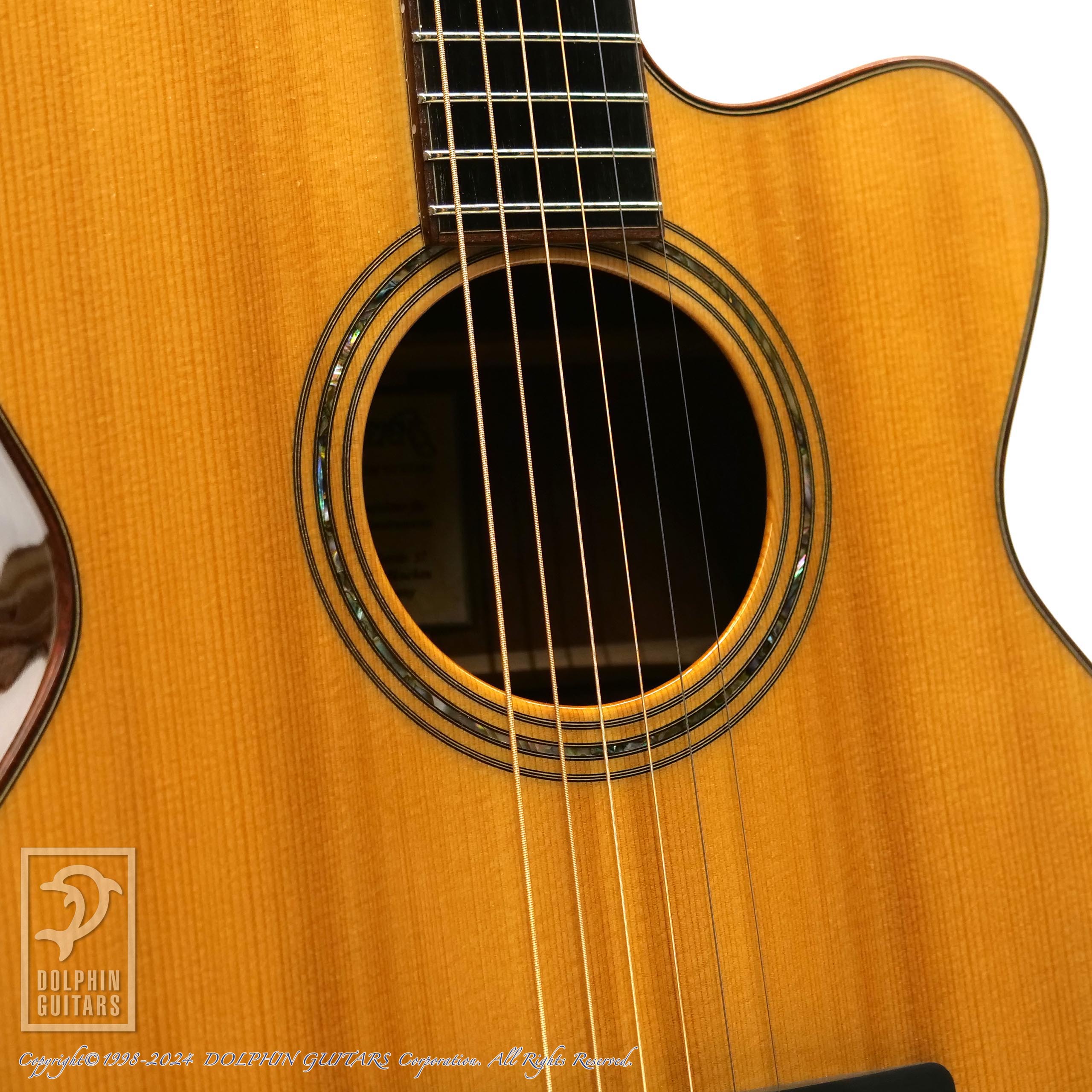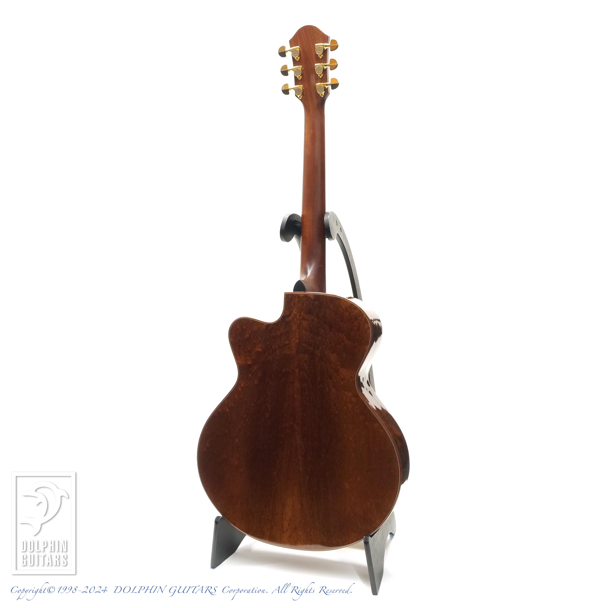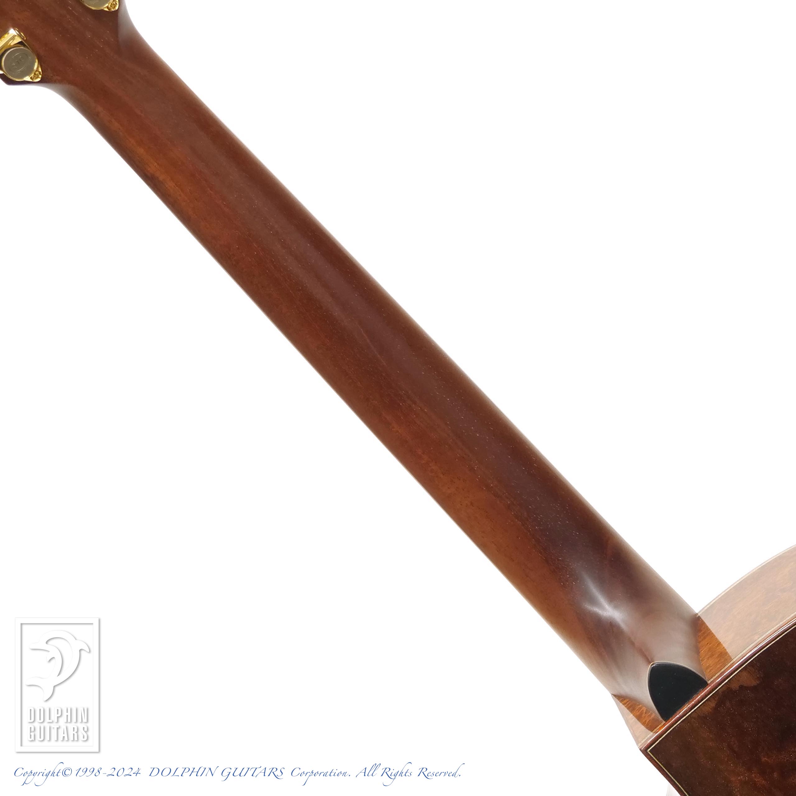 均整のとれた木目の詰まった美しいジャーマンスプルースをトップに、サイド&バックには細かな木目の入った美しく輝くキルテッド・マホガニーを使用。