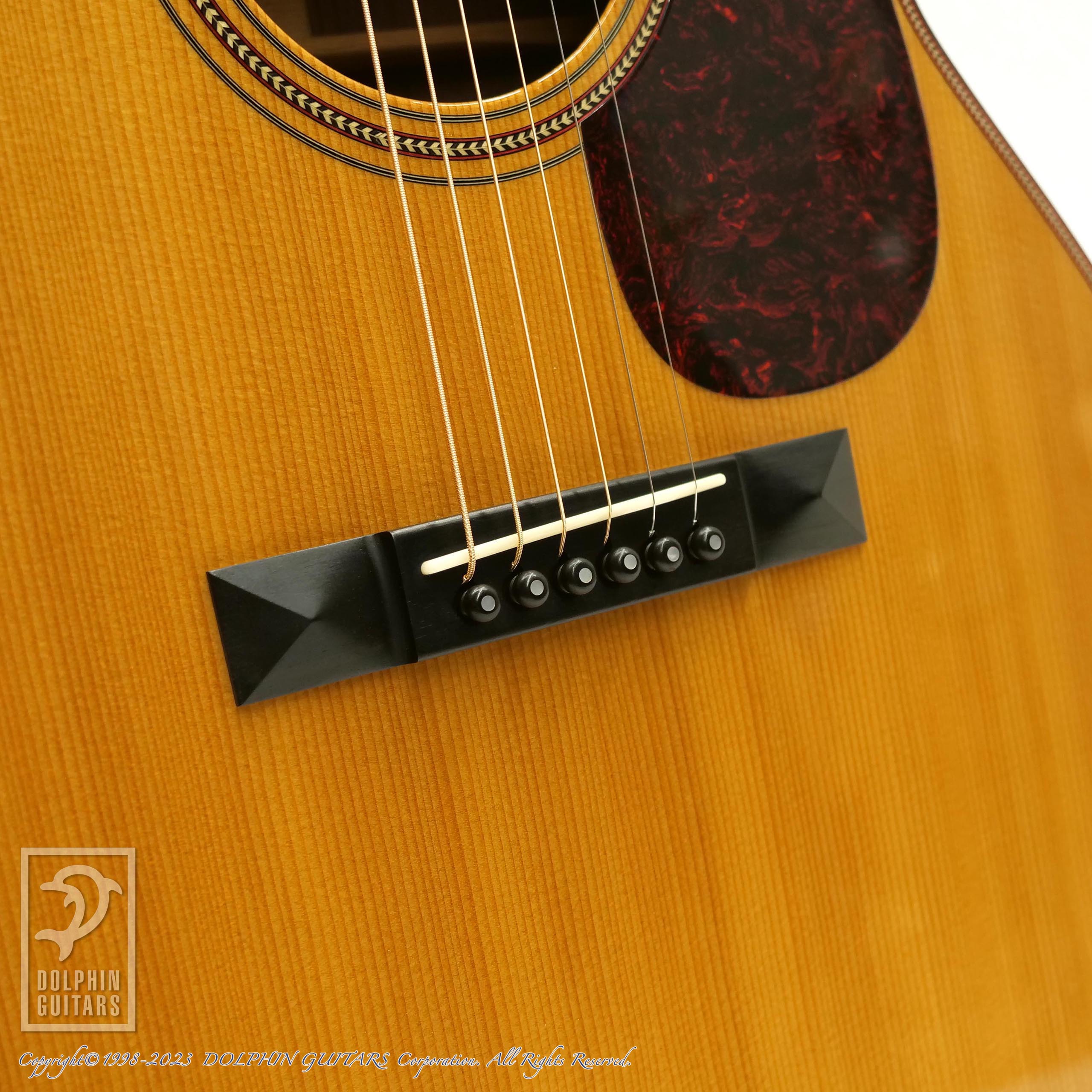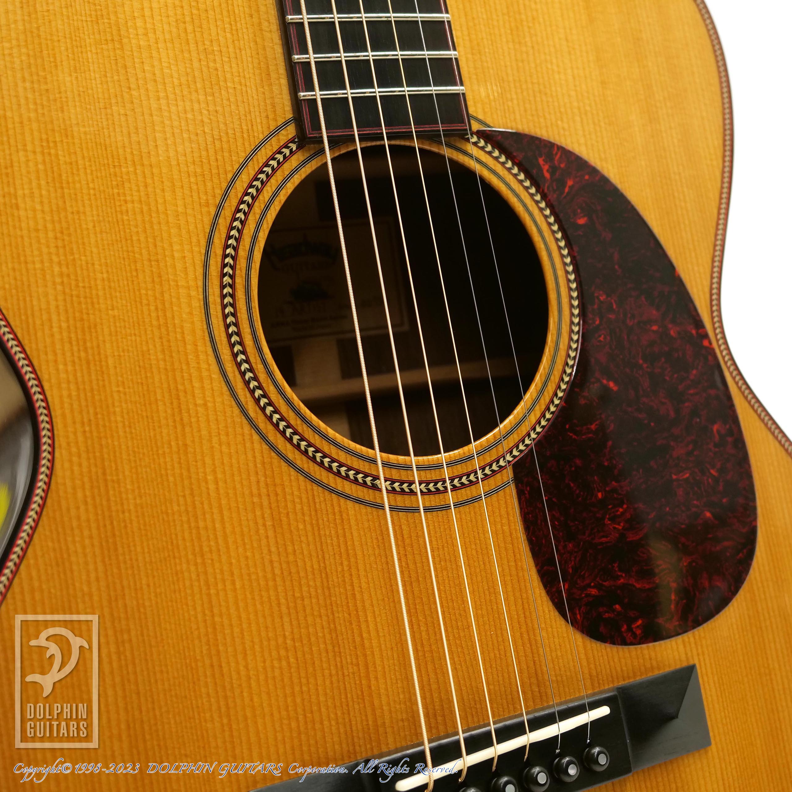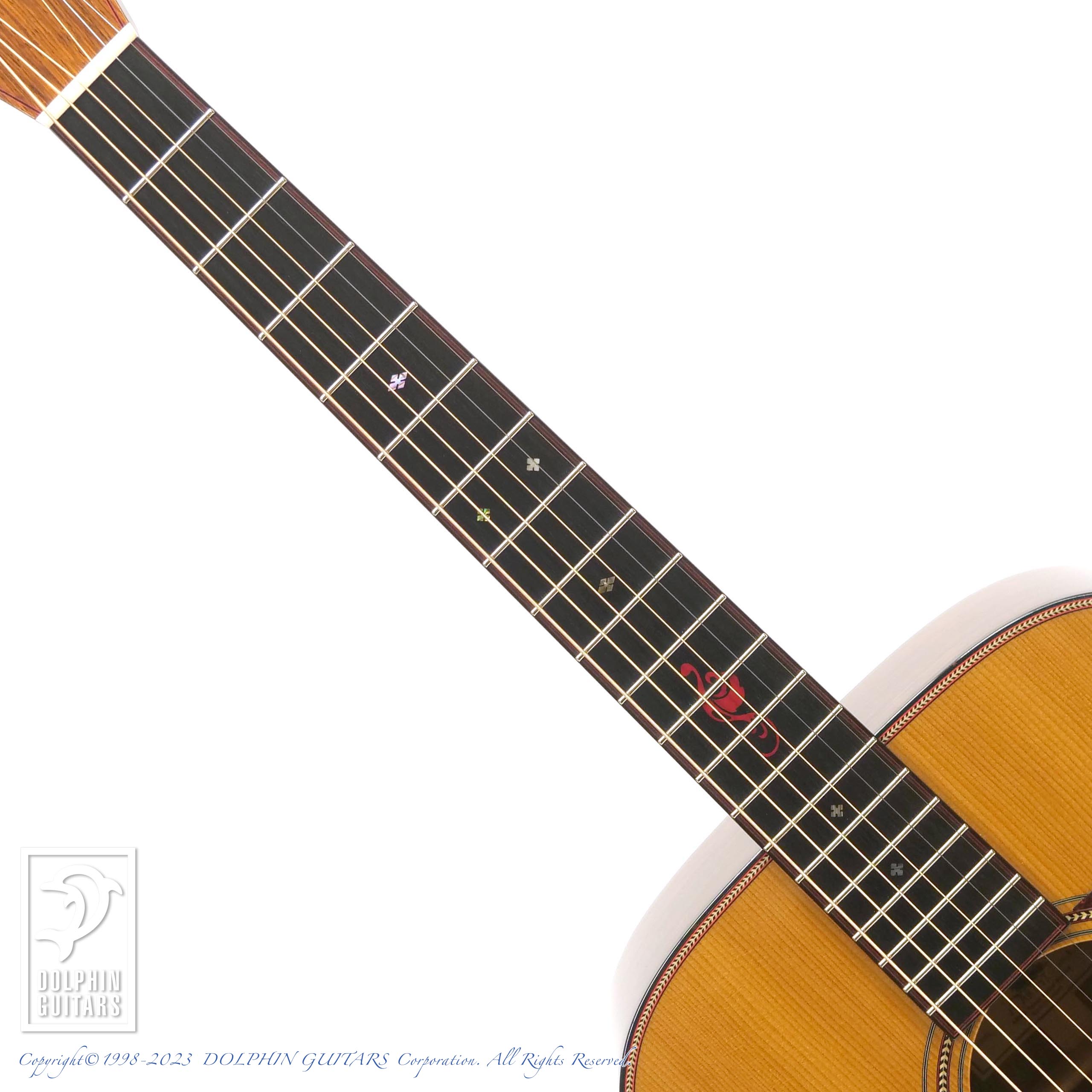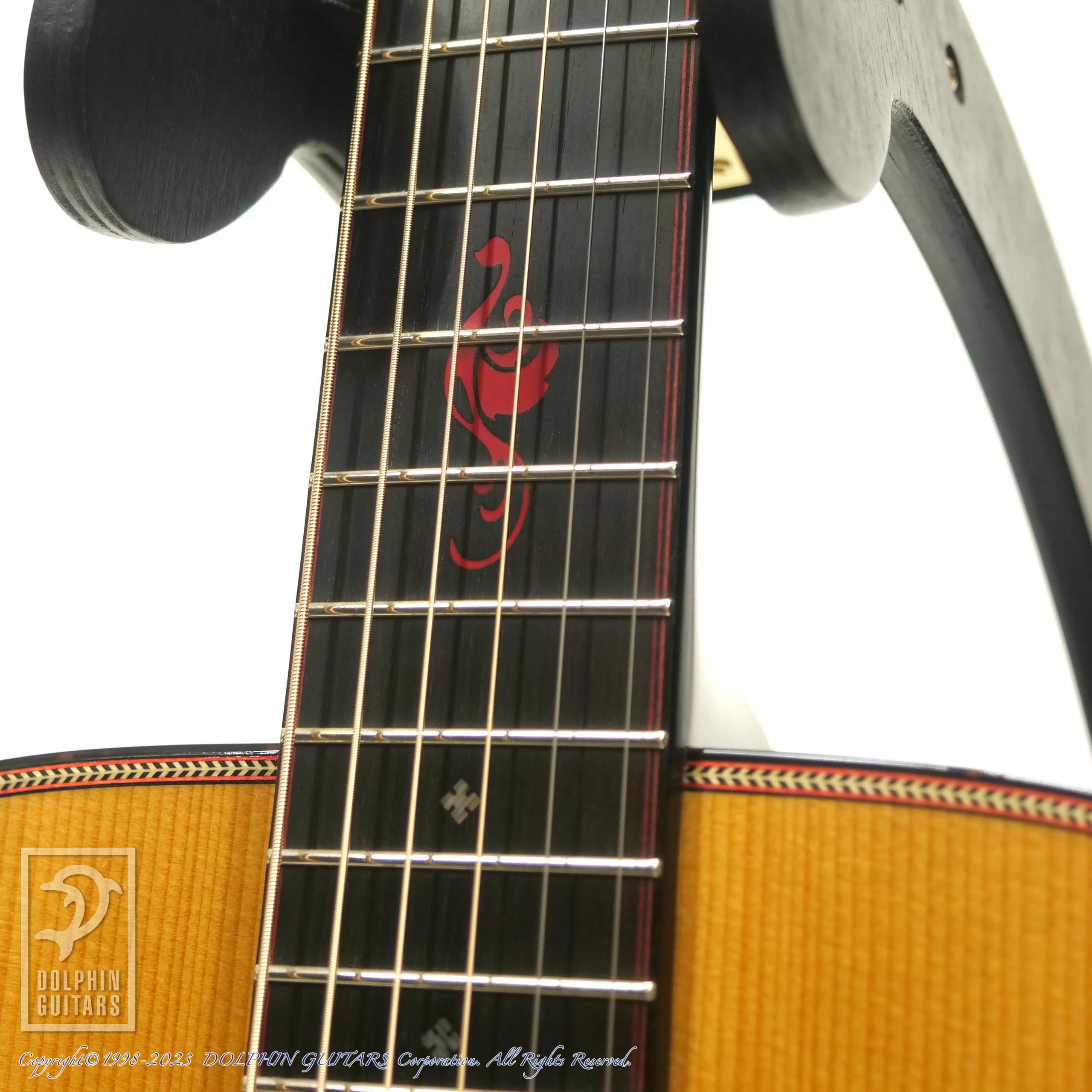 000タイプのHFボディにピラミッド・ブリッジ、随所にアクセントとして入っている赤いライン、そして12Fに赤いフェニックスのインレイはArtist Seriesならではのもの。ブレイシングも14 Artist用のスペシャル仕様になっております。