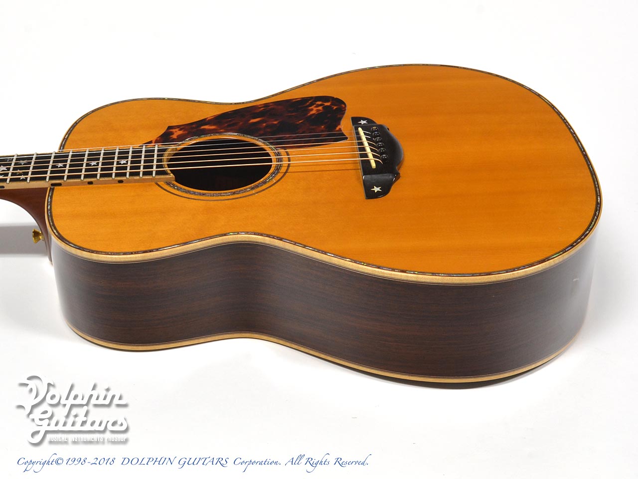 スプルース・トップ、インディアン・ローズウッド・サイド&バック、5Pネック、エボニー・フィンガーボード&ブリッジ、アバロン・トップ&バック・パーフリング・ロゼッタ&ヘッド、STAR指板インレイ、ゴトー糸巻。