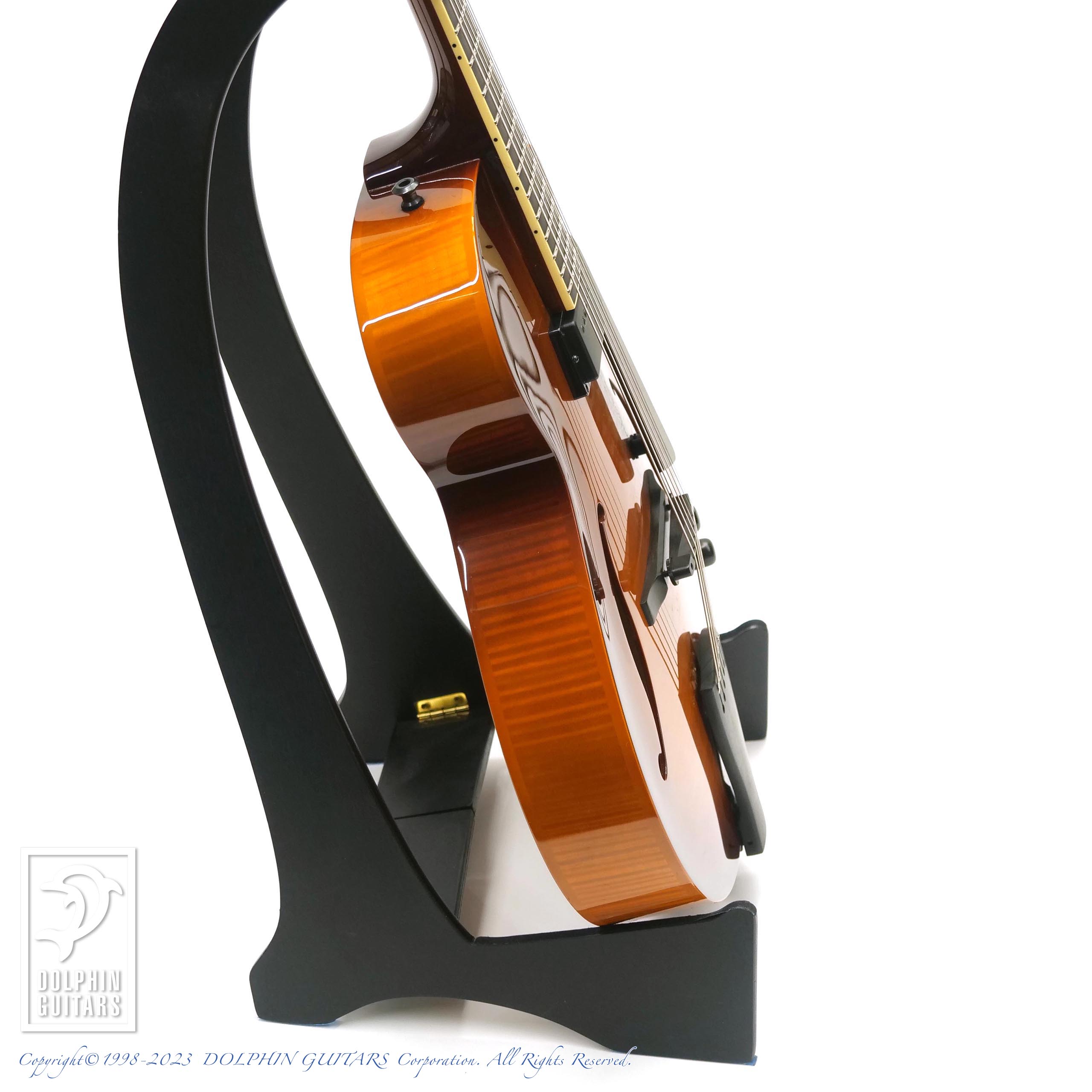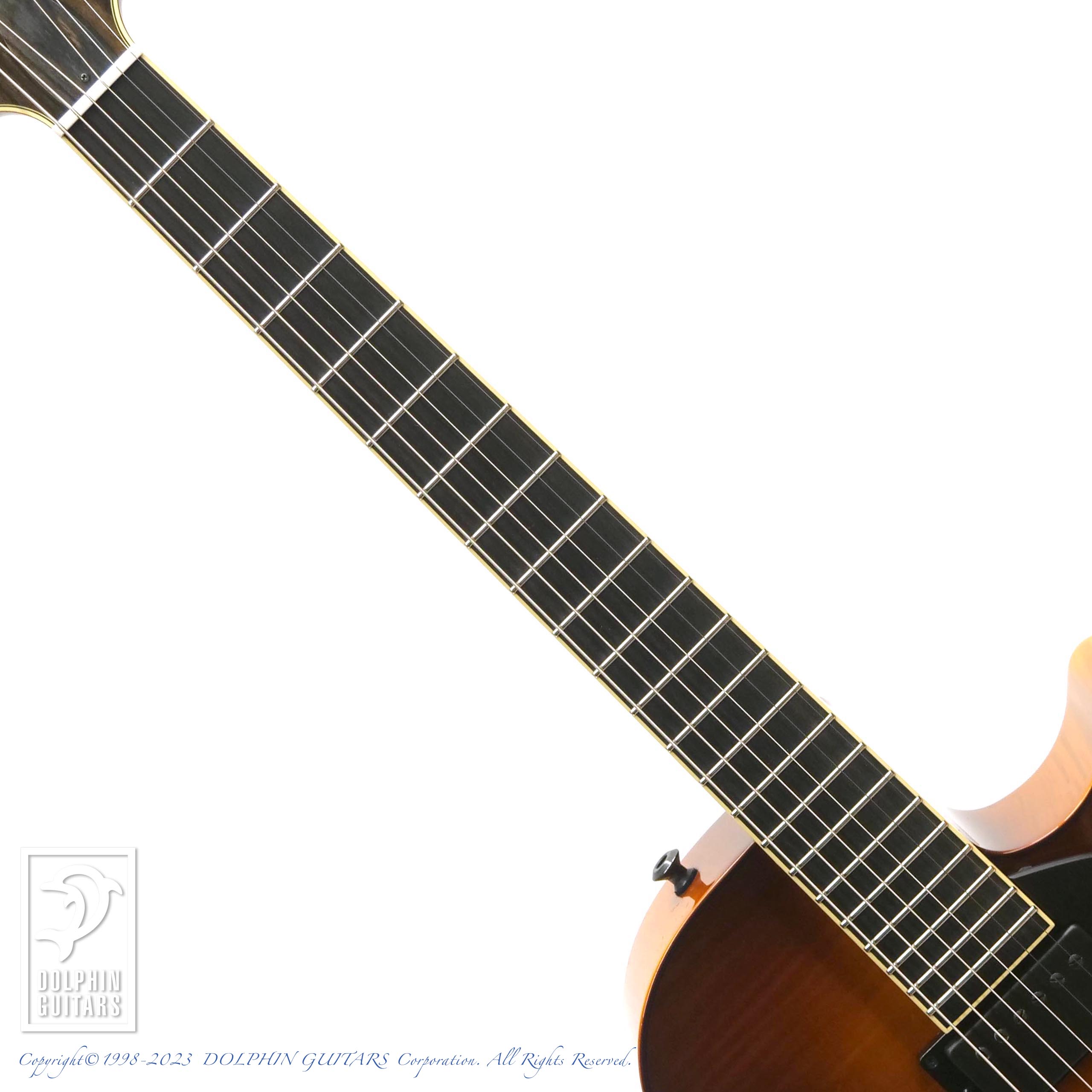アーチトップとしては小ぶりな14.75インチ幅のボディを採用、ボディ厚は約70mmで、サドウスキーラインナップの中では、ギブソンで言うところのいわゆるES-175的ポジションを担っていたモデルです。その小さなボディからは想像できないほどのリッチで温かみに溢れたサウンドを特徴としています。取り回しや箱鳴り感が丁度良く、幅広く受け入れられるのも納得です。