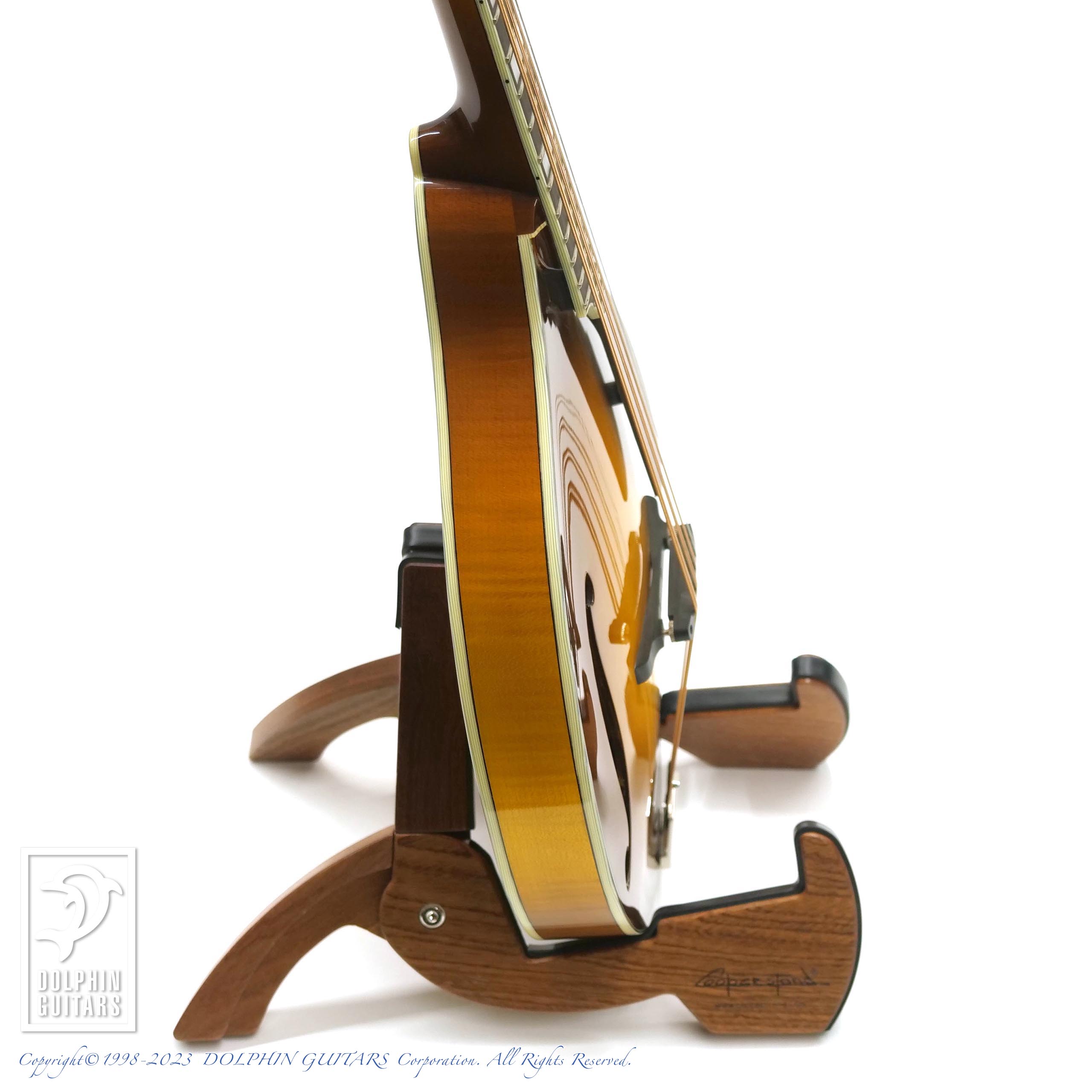 ブロックインレイや特製ウッドピックガード、ヘッド&ネックバインディングに、美しいグロス塗装に施されたゴールドバースト、まるで音の出る工芸品の域に達した仕上がりは所有欲を満たしてくれます。