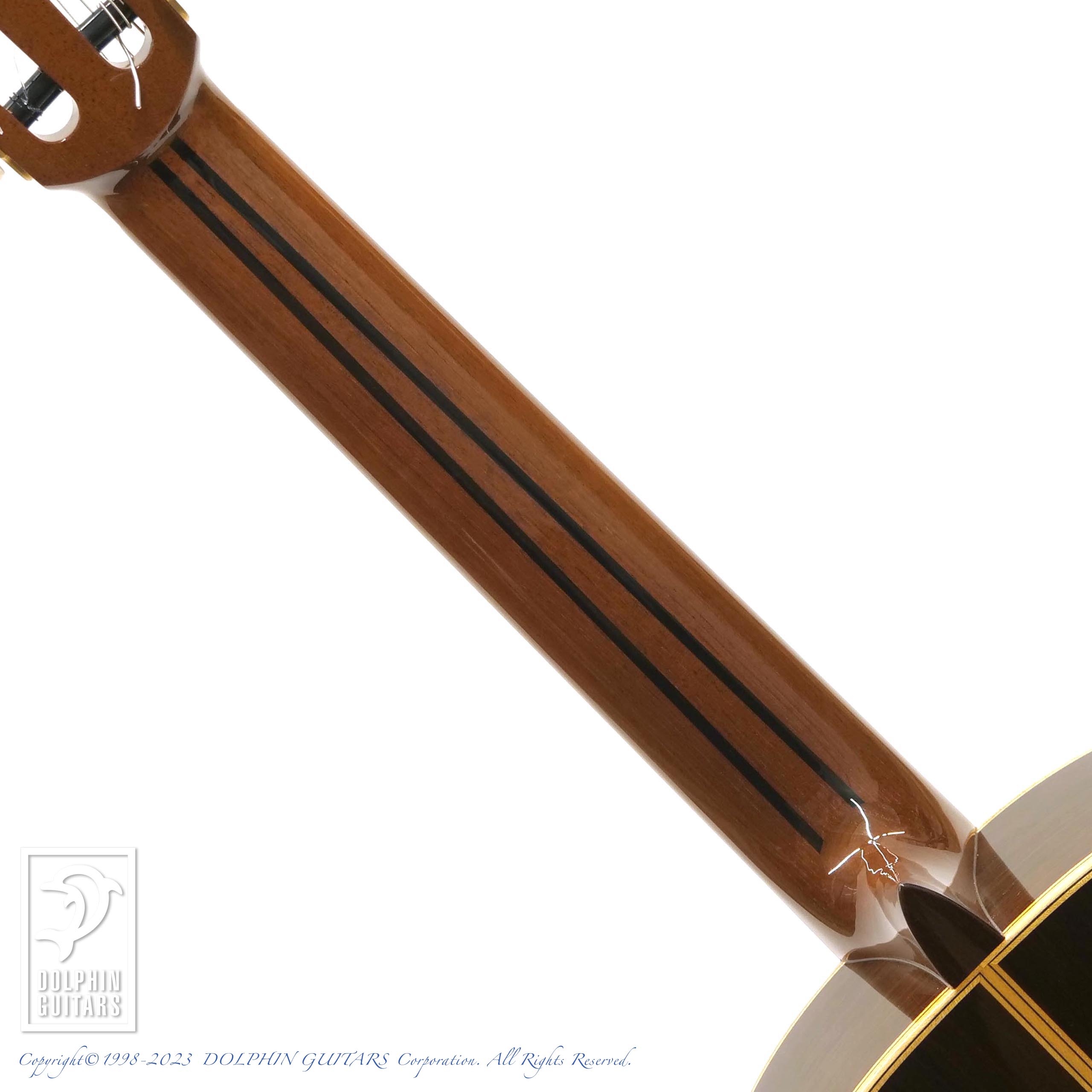 透明感・伸びやかさも素晴らしいスイス産レゾナンス・スプルースを使用、もとよりしなやかで瑞々しいサウンドのP.C.モデルの特徴がより引き立てられている印象です。サイド&バックは綺麗な中南米ローズウッドを使用、象牙ナット&サドルなどその他各部仕上げにも拘りが感じられます。