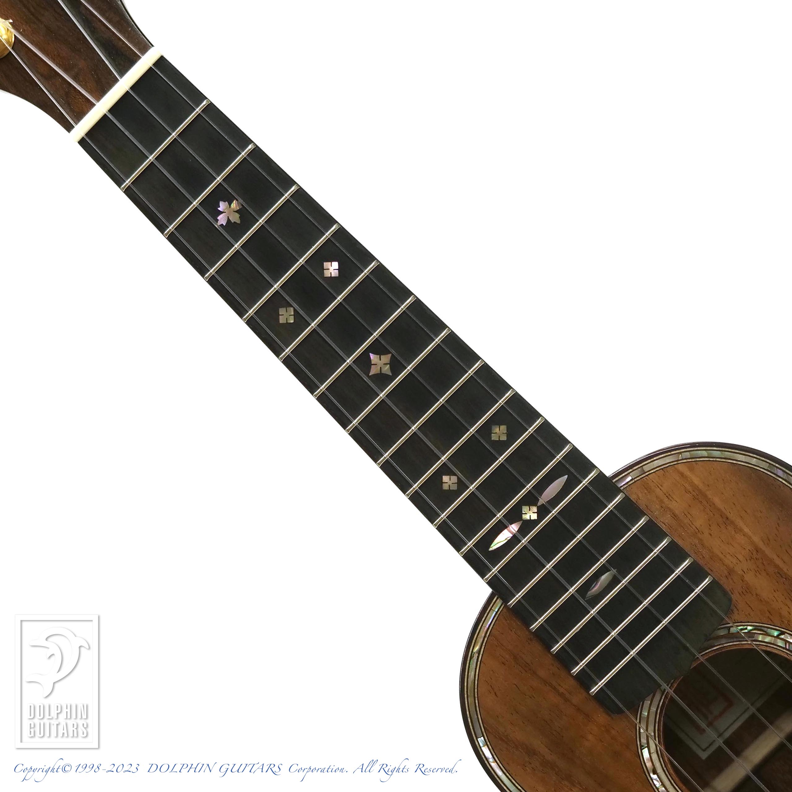 ハワイアンコアウッドの杢目、ポジションマークやバインディングに至るまで、非常に美しく、その質感も見るものを魅了します。