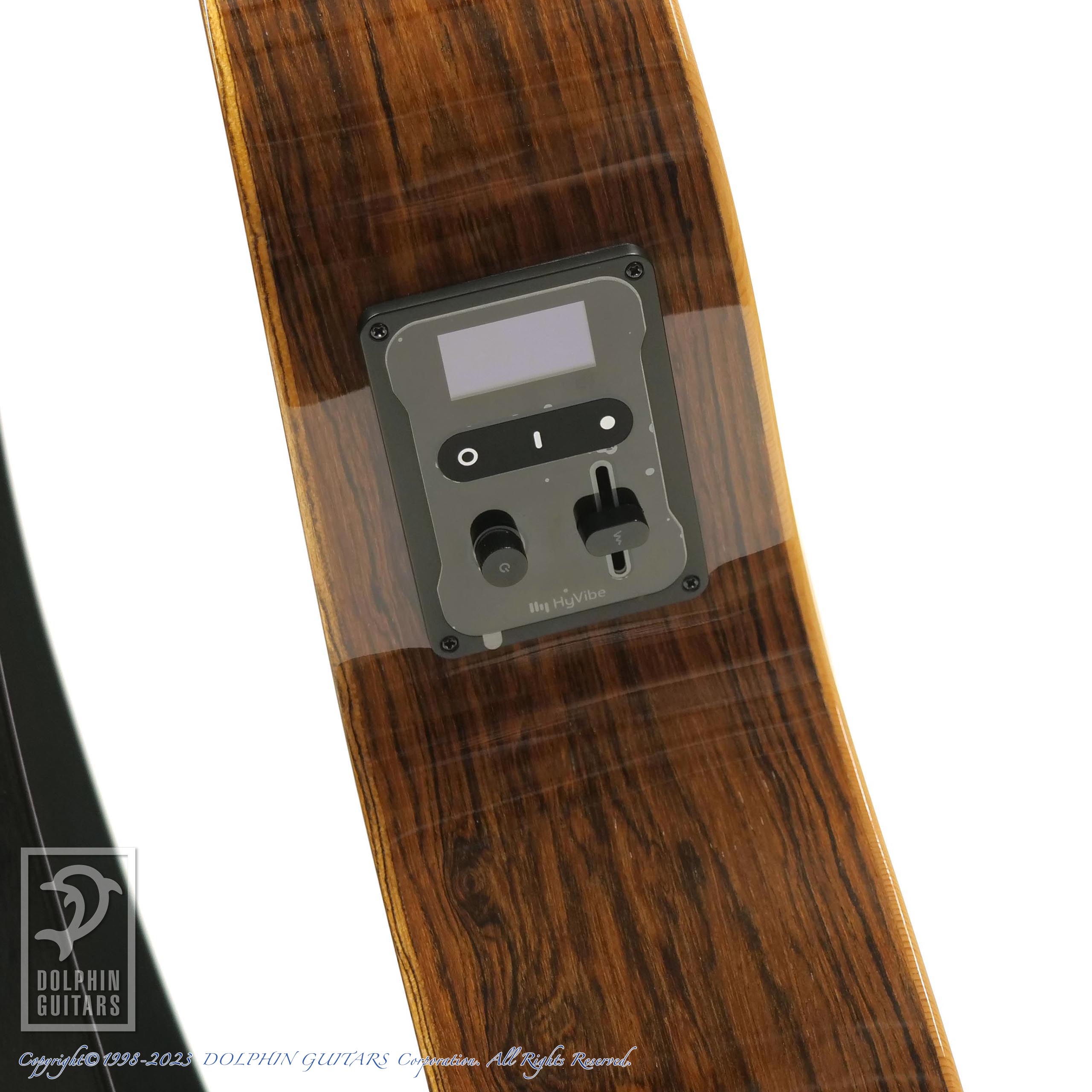 アンダーサドルピエゾ・ピックアップで拾い上げた音をボディサイドに搭載された「プロセッサー」でエフェクト音を追加し、ブリッジプレート裏に搭載された「エキサイター」を通しボディを振動させることで、アンプを通さずに様々なエフェクト音(リバーブ、ディレイ、コーラス、オクターバー、ディストーション)を出すことができる、まさにオールインワンの「スマートギター」です。