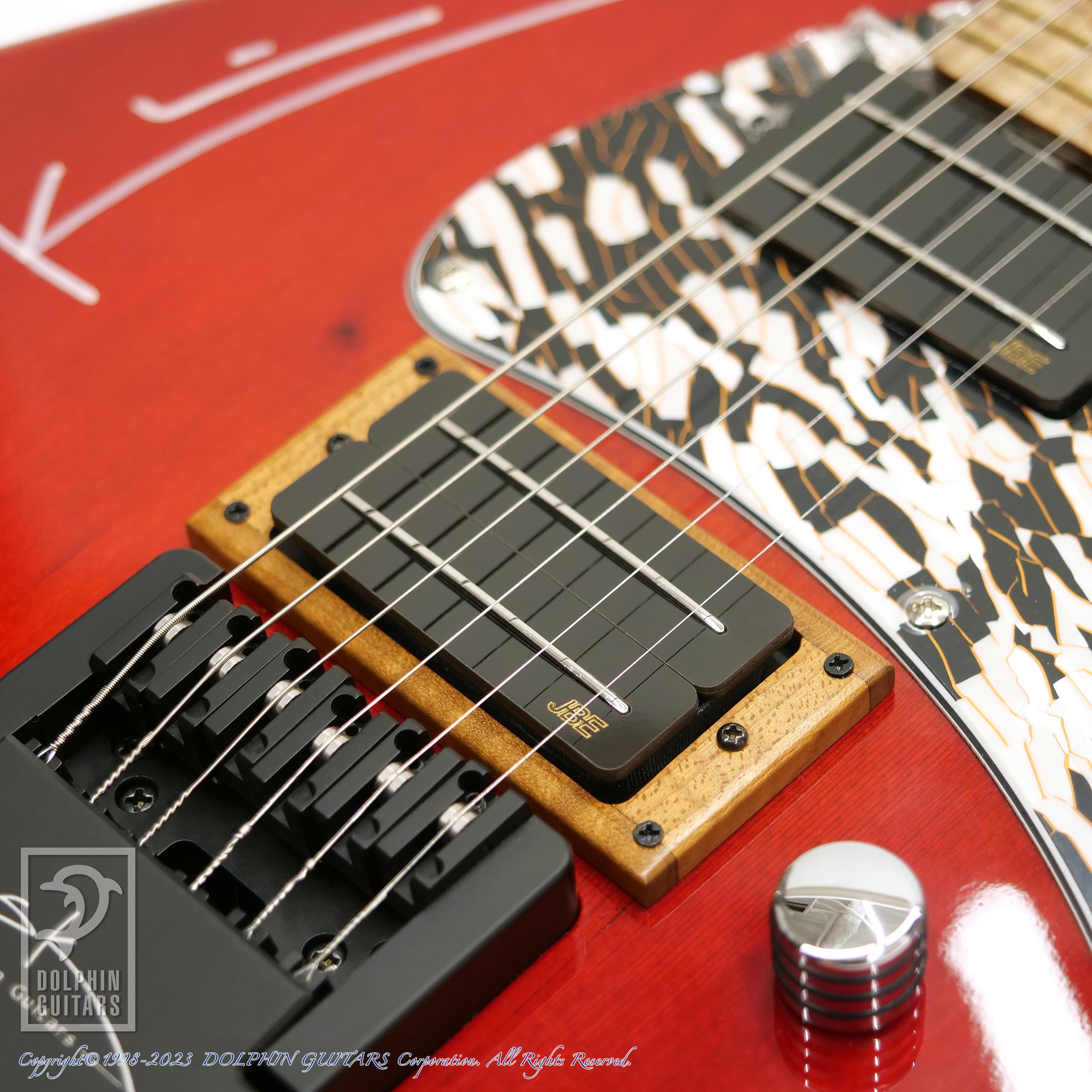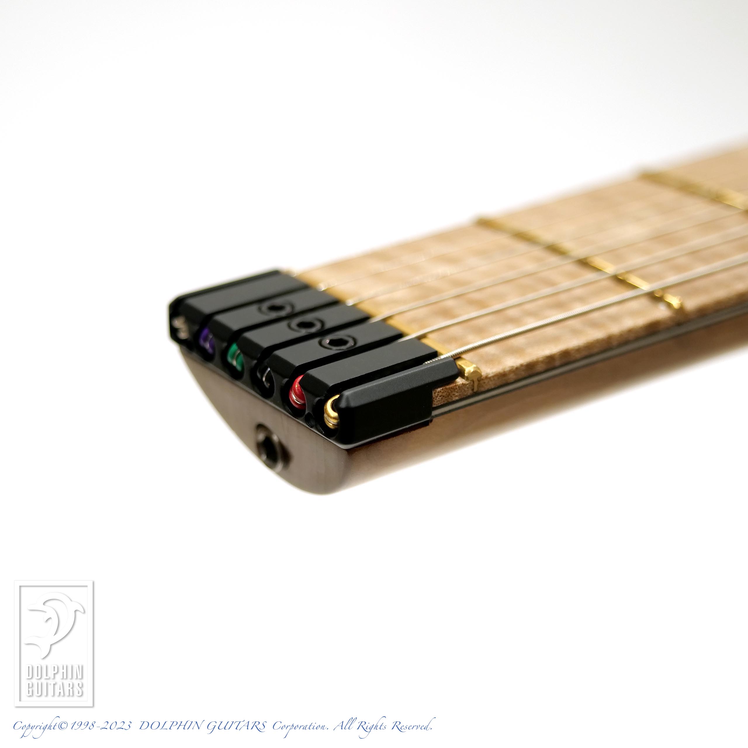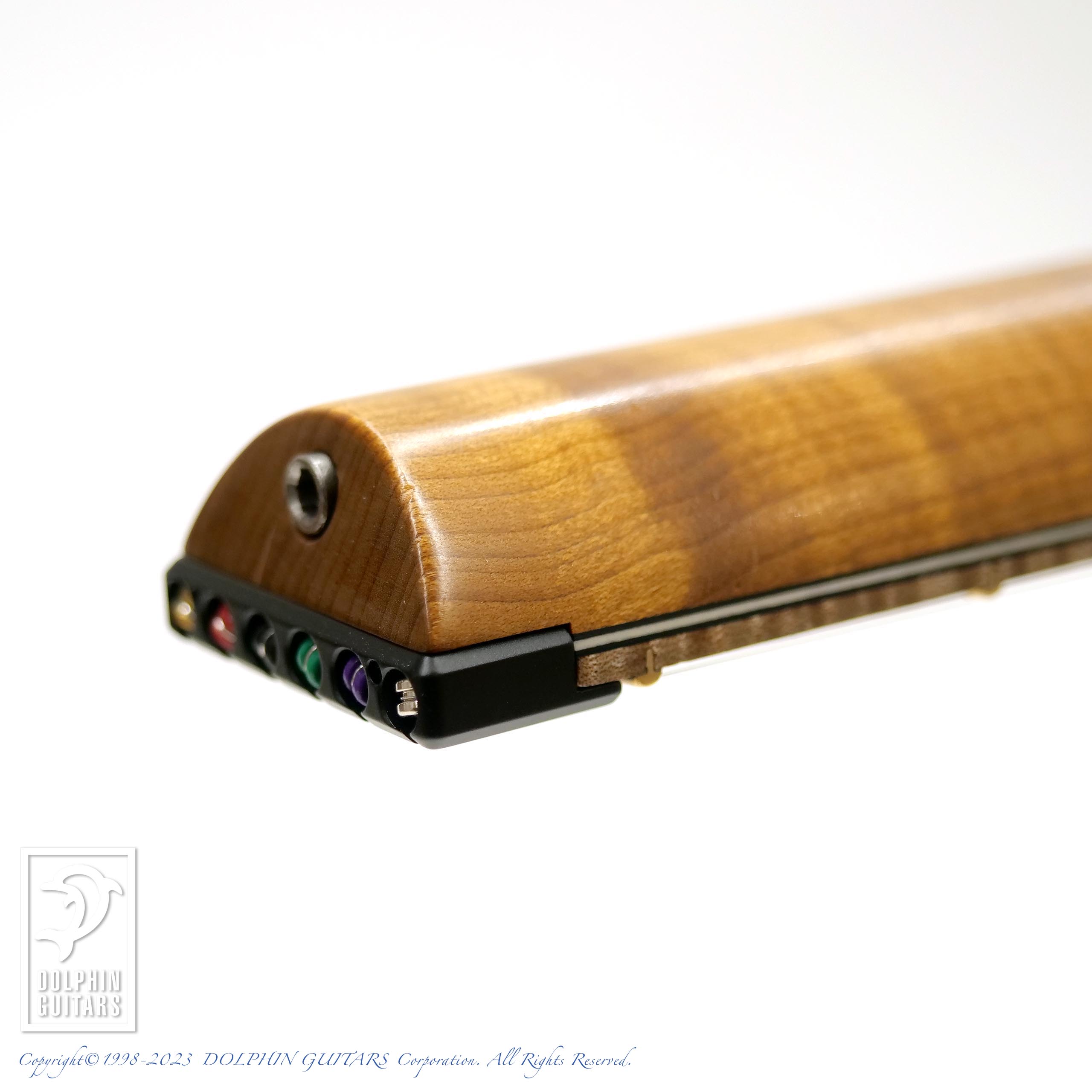 メイプルネックは人工的に長時間、高音加熱処理することで、長い年月を経た木材のような乾燥状態を創り出すトリファイド加工を施したマテリアルを使用。大変軽量で良好なボディバランスを生みます。一見異端に見えるボディですが、デザインと共存する精密な設計による抱えやすさは流石です。