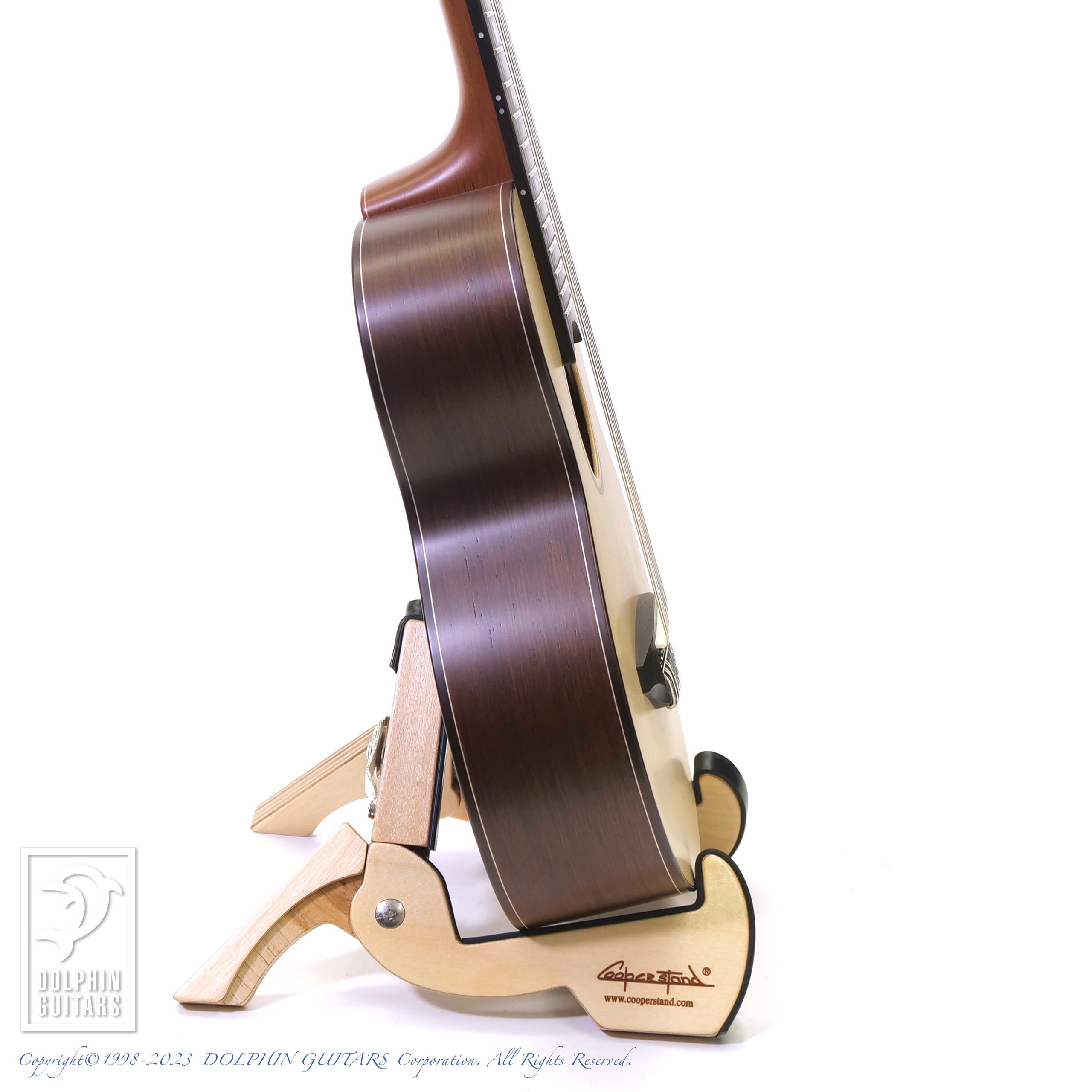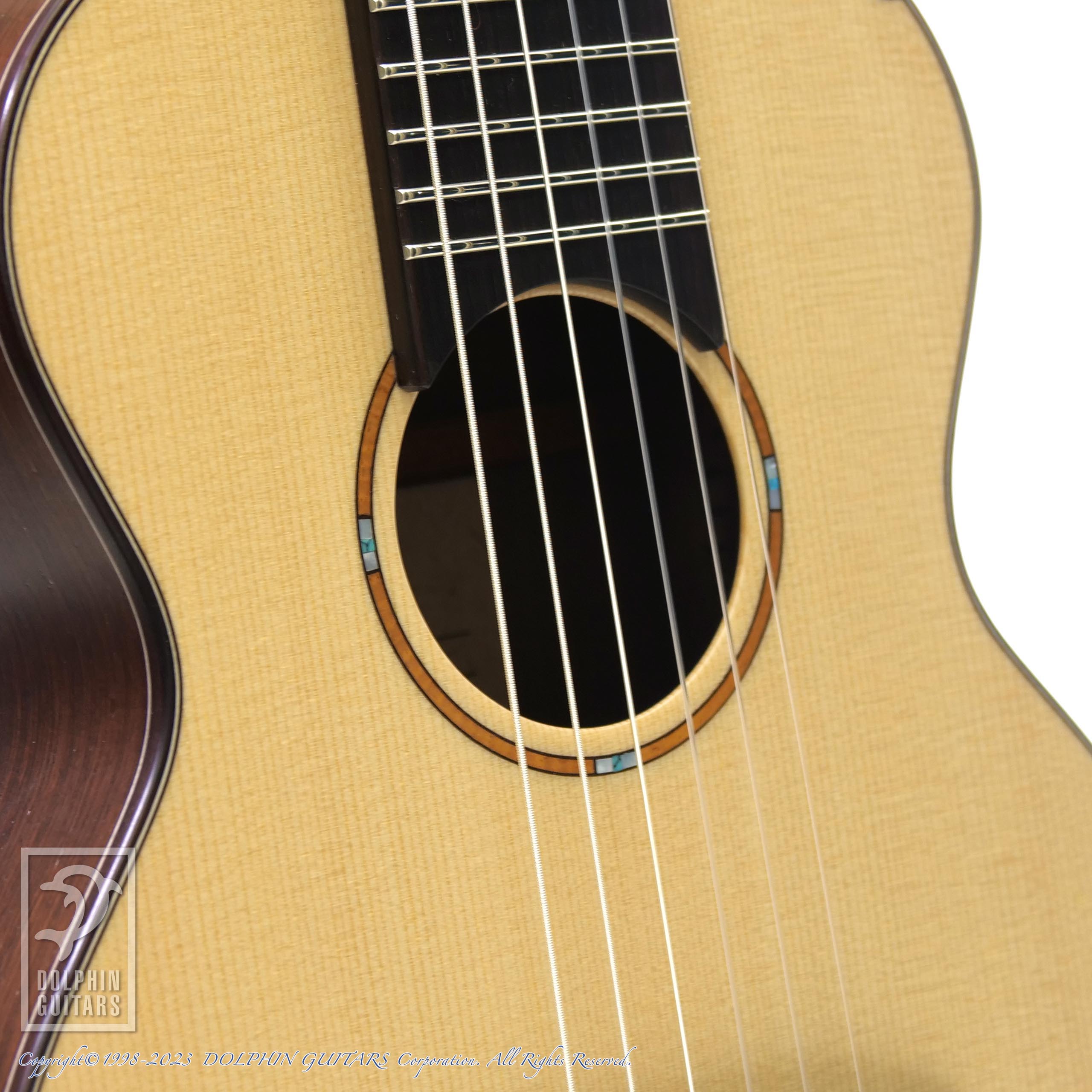 しっかりと太い芯を感じる上質なナイロン弦の響きをこのサイズのギターで叶える設計は流石の一言。本人は感覚的に作っているとのことですが、その完璧までな設計を自然に創り出してしまうところが天才的たる所以です。