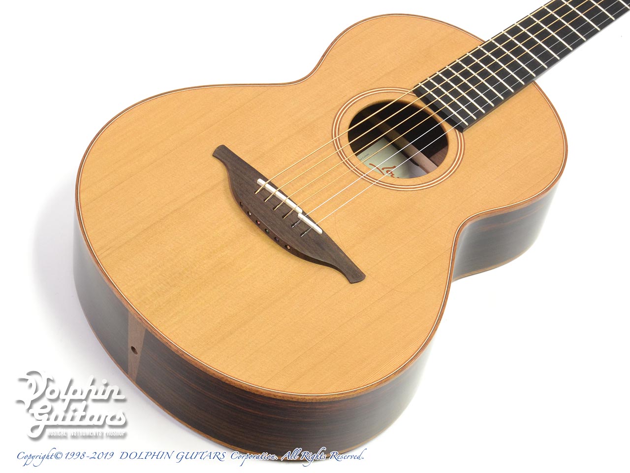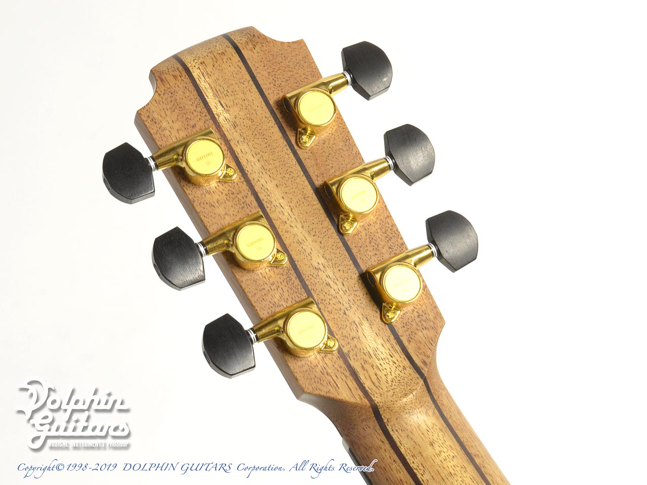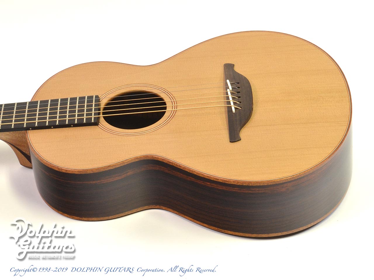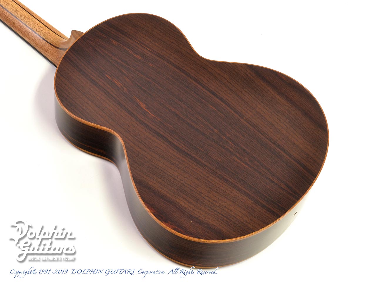 シダー・トップ、インディアン・ローズウッド・サイド&バック、マホガニー&ローズウッドネック、エボニー指板&ローズ・ブリッジ、マホガニー・バインディング、ウッド・ロゼッタ、Gotoh製ローデンオリジナルペグ。