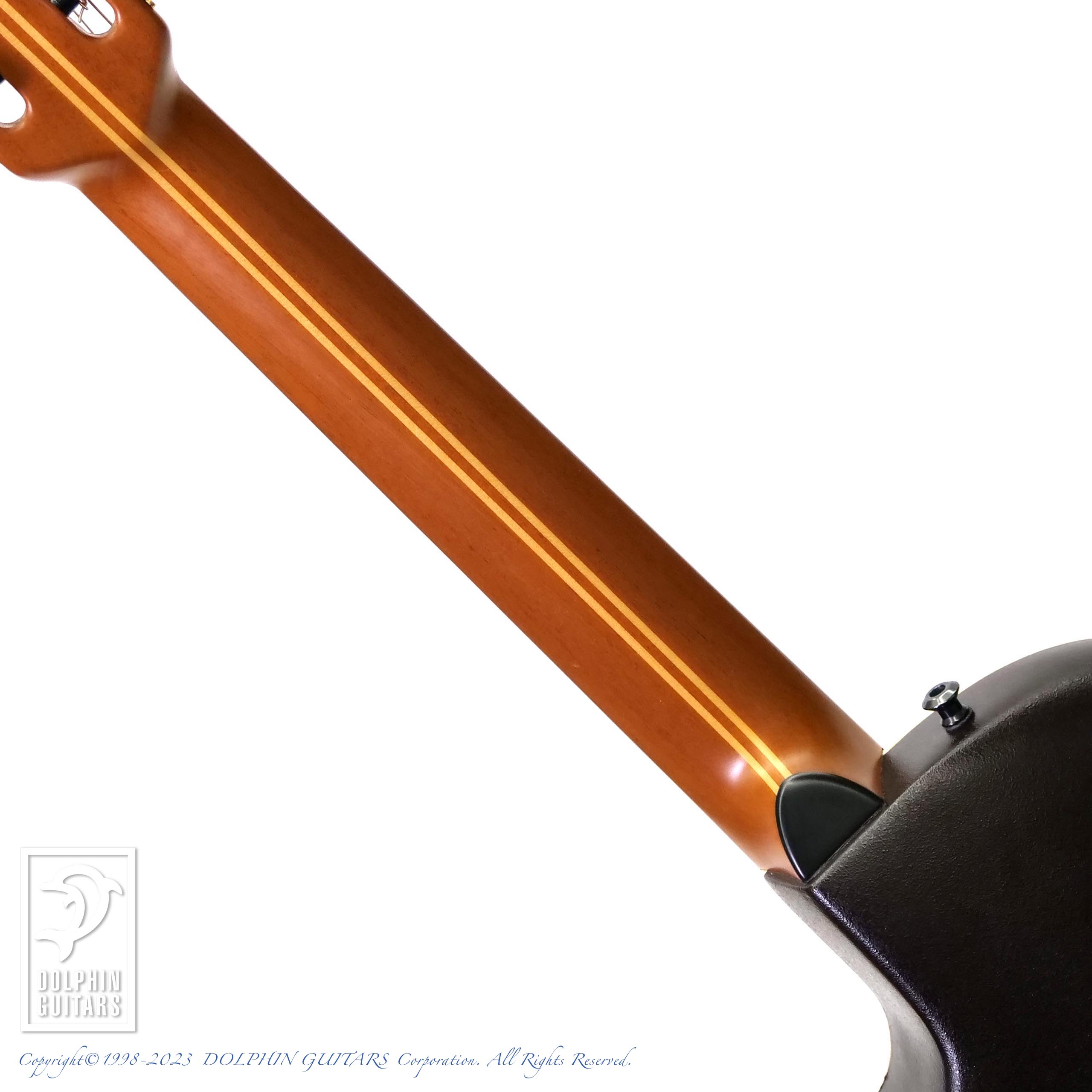 ナット幅こそ50mmございますが、非常に薄いVシェイプネックはエレキやスティール弦からの持ち替えでも違和感なく馴染むでしょう。