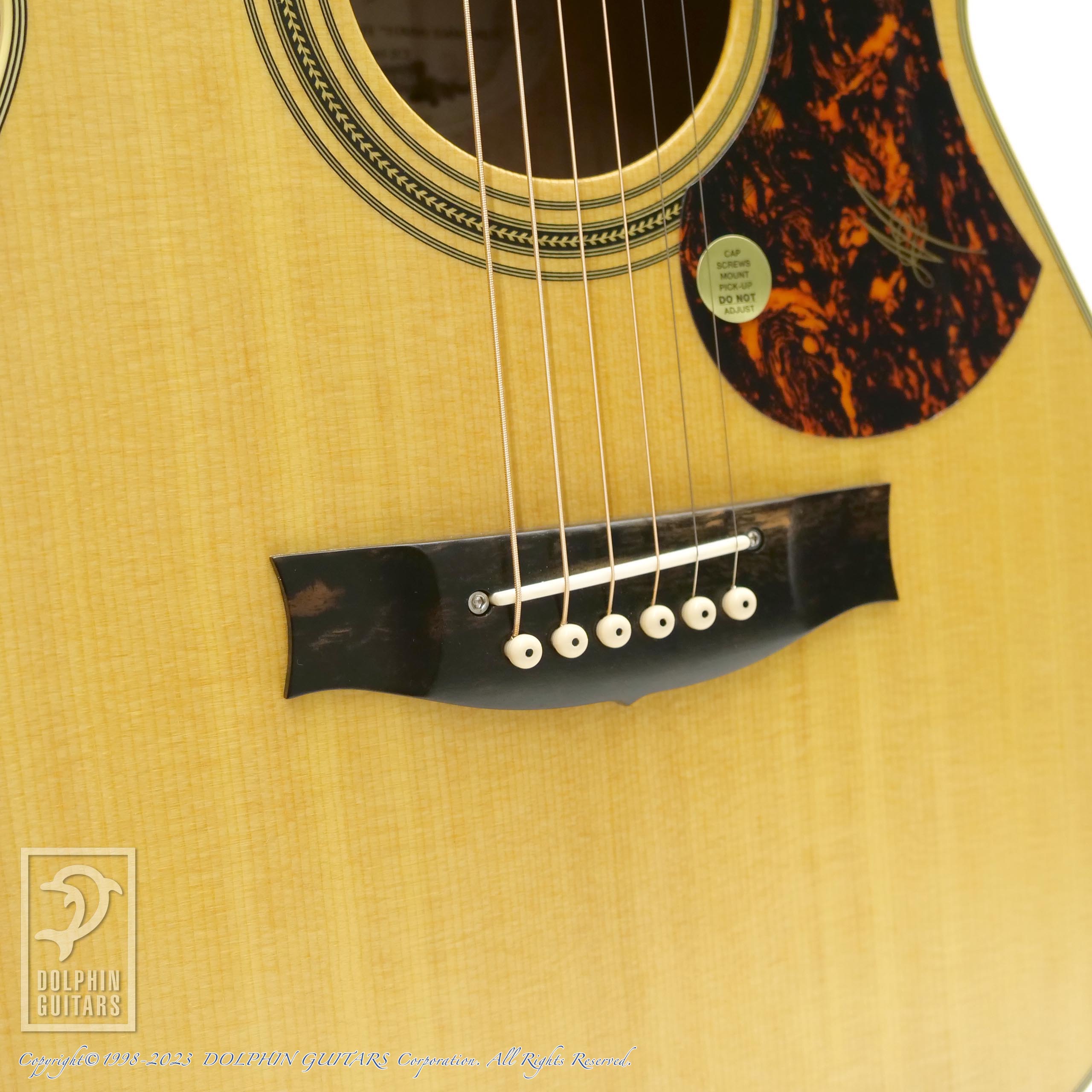 ブリッジサドル両サイドにある六角ネジは弦高調整用ではありません。アンダーサドルPUを固定しPUバランスを整えるための物です。大きく緩めたりすると出力バランスが崩れたり、ノイズ発生の原因となりますので必要な場合以外は触れないことをお勧めします。*硬すぎず緩くもなくといった適度に締まっている程が良いとお考えください。調整に関しましてもドルフィンギターズにお任せください。