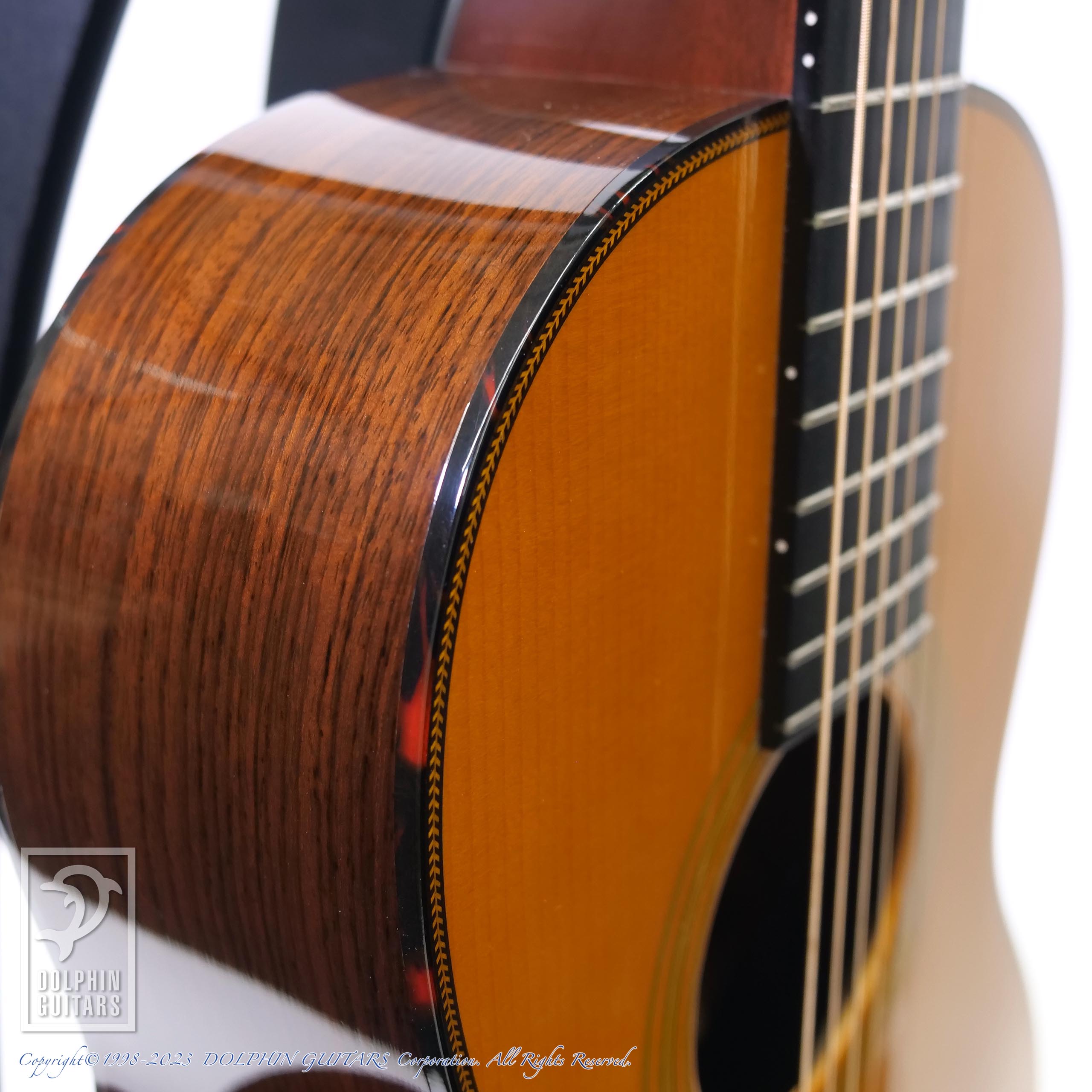 Style-21は18と28の中間的な仕様を持つモデル。素材はローズウッドですが、ベッコウ柄バインディングなどで渋い仕上がりとなっております。