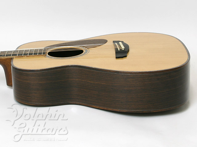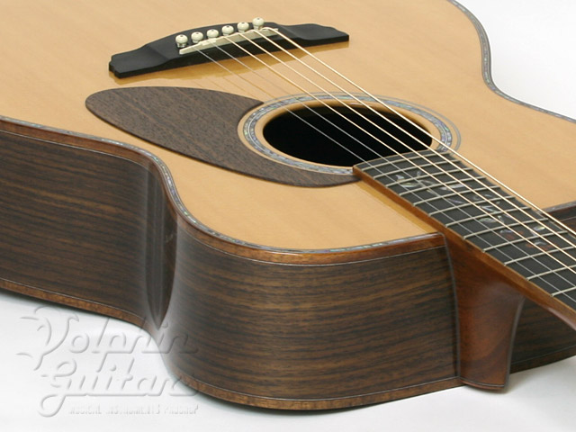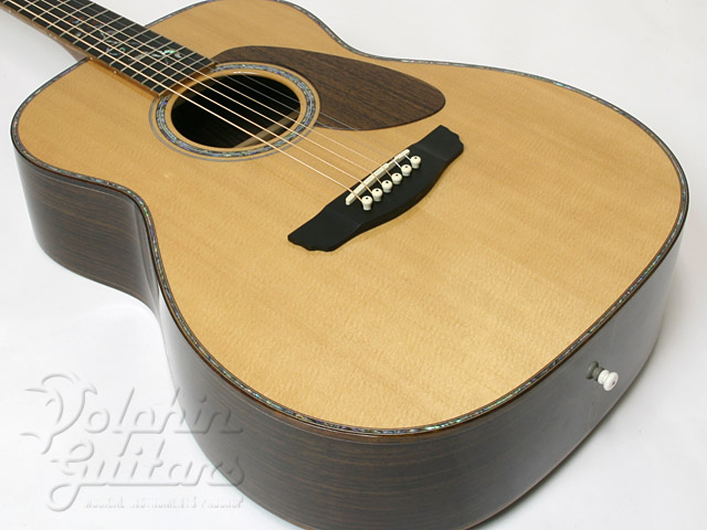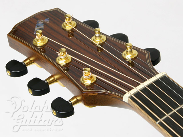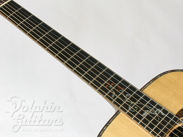 スプルース単板トップ、インディアンローズウッド単板サイド&バック、アバロン・ボディー・パーフリング&ダブル・アバロン・ロゼッタ、エボニー指板&駒。