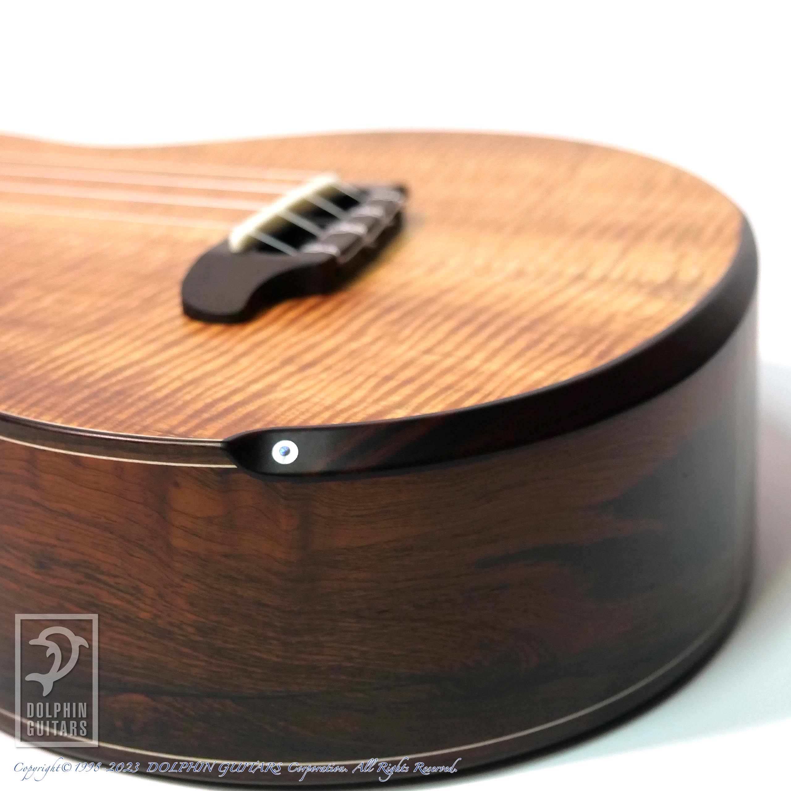 各部複雑な構造であり、製作には多くの時間を費やすなど、製作するウクレレの中でも希少なモデルであります。ピッチの精度も高く、4弦すべてが美しいハーモニーを奏でるハイエンドのウクレレです。