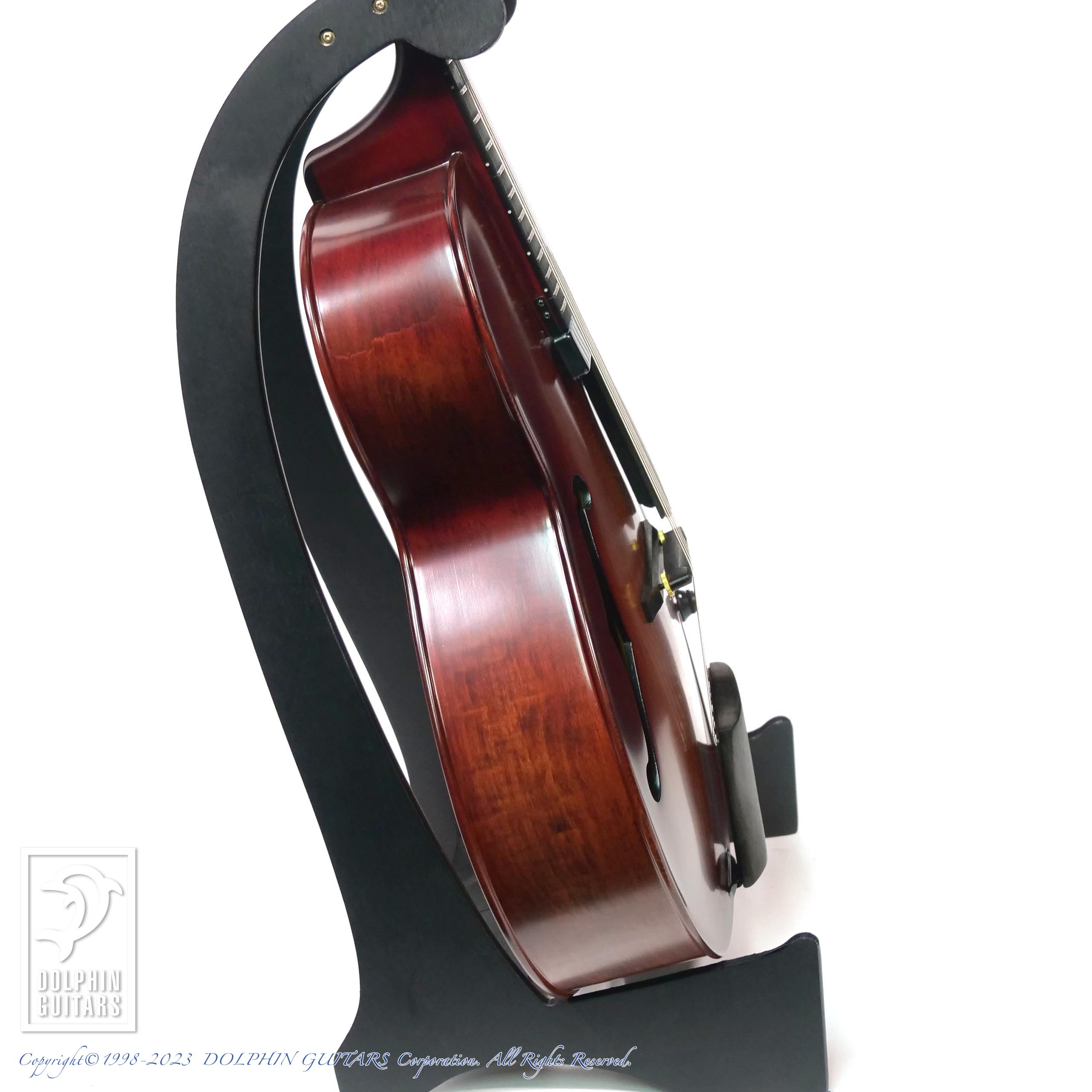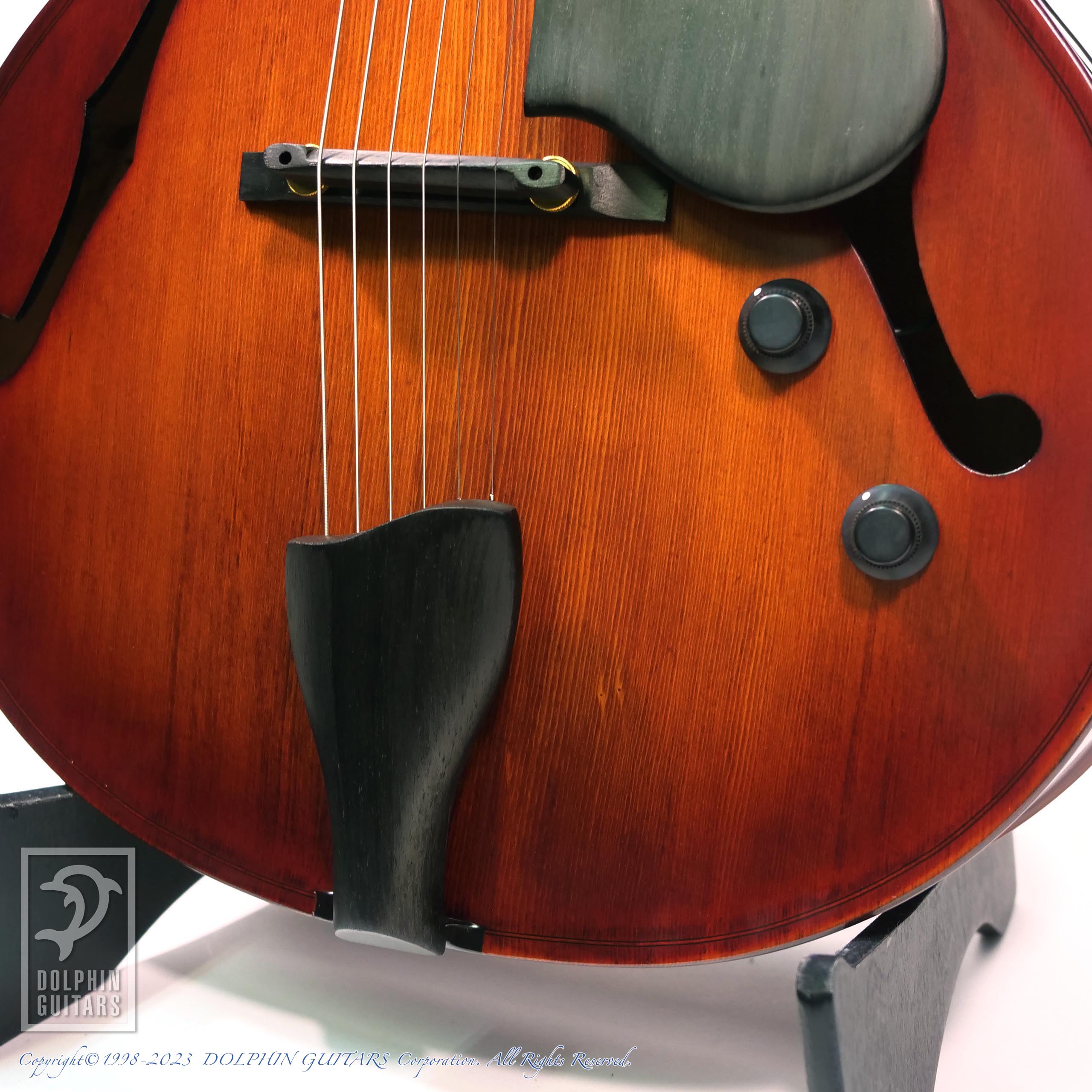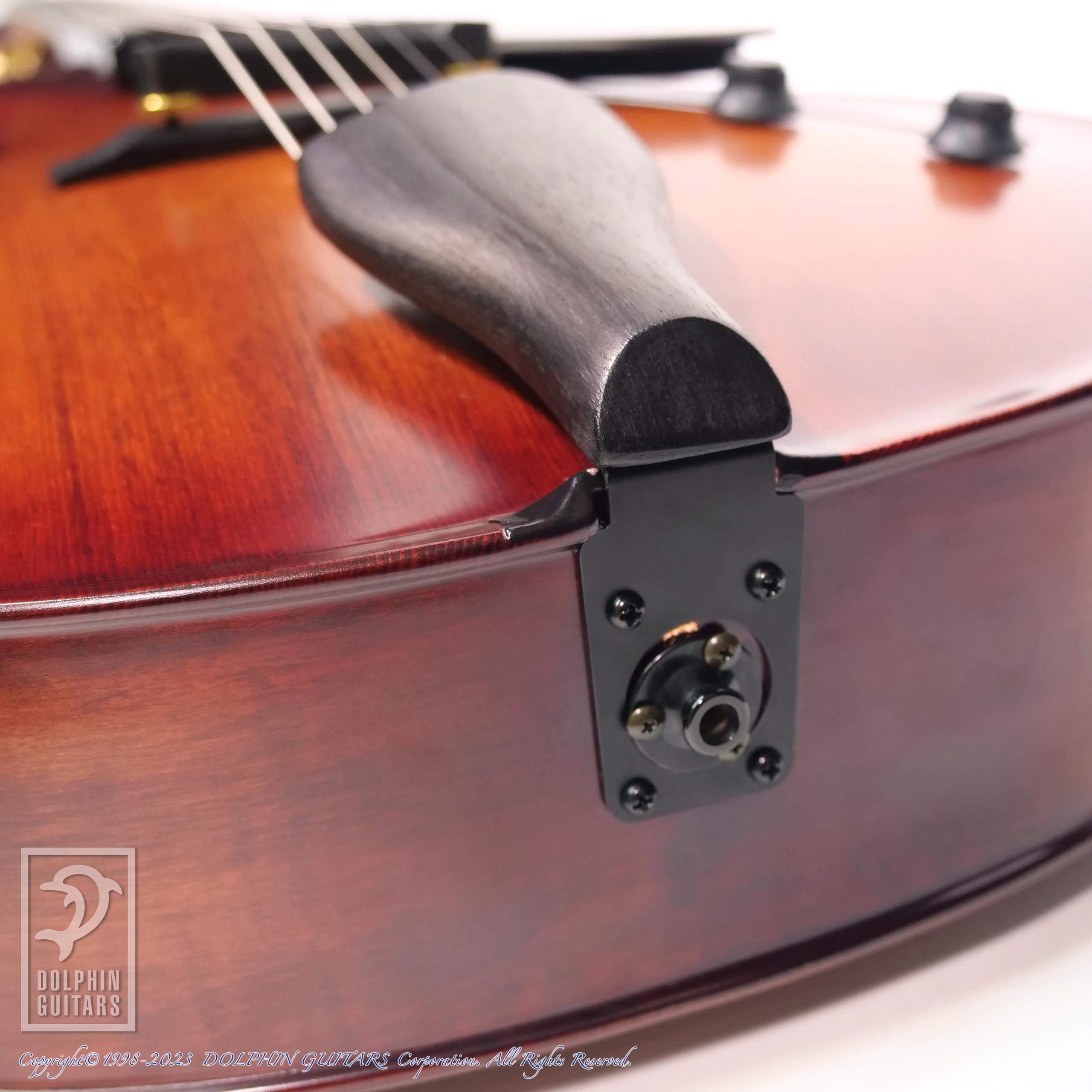 伝統的なバイオリン工法から生まれた美麗な職人の削り出しによるフルアコースティックギター。17インチサイズのボディはバイオリンを作る工程と同様に、トップ、バックは職人の手によって削り出されています。強度を高めた5plyネックにエボニーフィンガーボード、ふくよかなボディの鳴りを活かすためにオリジナルのフローティングピックアップLS-JFを開発して搭載。バイオリンと同様ホディの鳴りを優先するニス仕上げを採用し、アンティークバイオリンのような高級感と、プレス材では得られない艶やかで豊かなトーンを獲得しています。