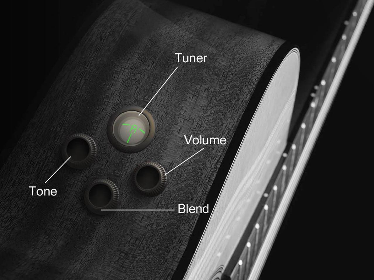 ボリューム・ブレンド・トーンというシンプルな3ツマミにチューナーがビルトインされています。